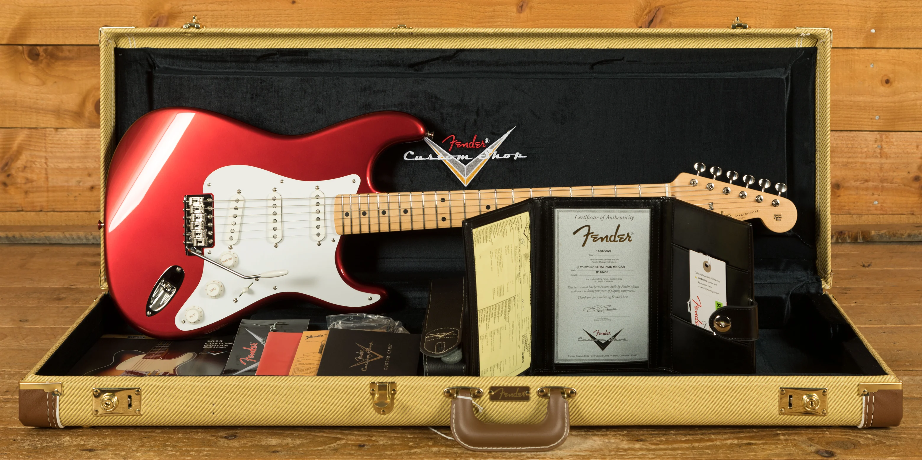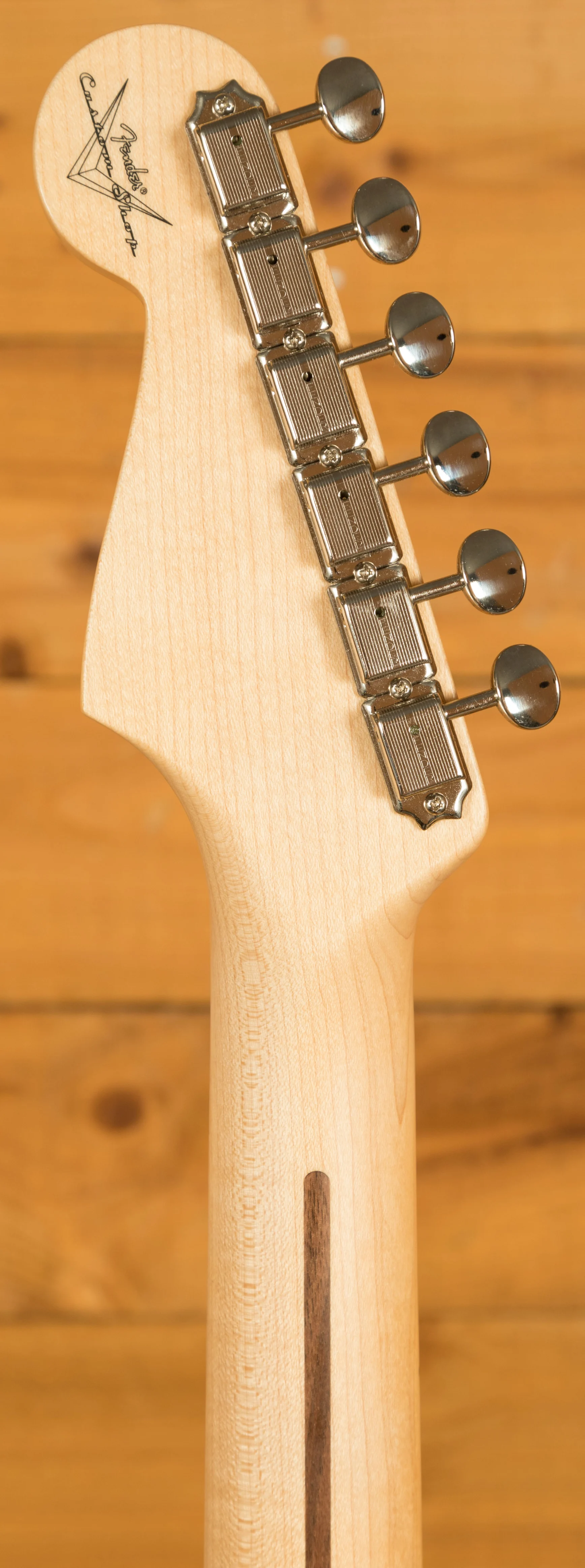 The rift sawn Maple neck has a smooth feel thanks to its satin finish. With a 9.5" radius and 21 narrow tall 6105 frets, the '57 Custom Shop Stratocaster also features a '57 Style Soft "V" neck shape - measuring .850" at the 1st fret and .990" at the 12th - and a 1.650" nut width. It's supremely comfortable and well balanced.