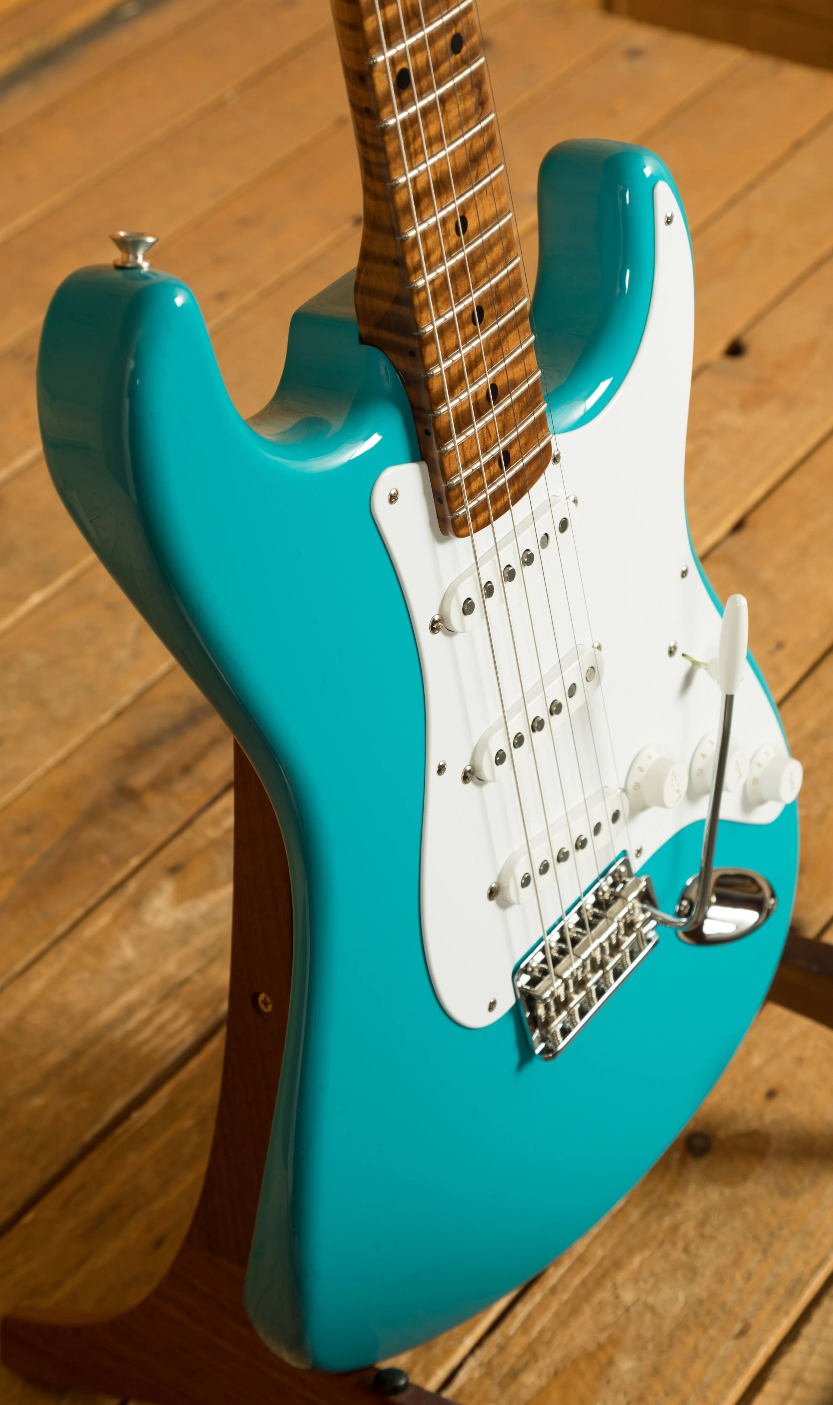A sort for lightweight Alder body is finished in a lovely Taos Turquoise Lacquer, as an NOS guitar this has a very thin nitro lacquer, period correct, this finish will wear beautifully with time and develop its own character even further. It also allows the natural resonance of the body to sing and sustain much more effectively compared with other finishes. The NOS finish gives the appearance of a New Old Stock guitar, one that has been perfectly preserved since 1957 and doesn't feature any kind of ageing or relic work. An NOS finished guitar from Dale Wilson is a super rare find, this sure isn't going to hang around long.