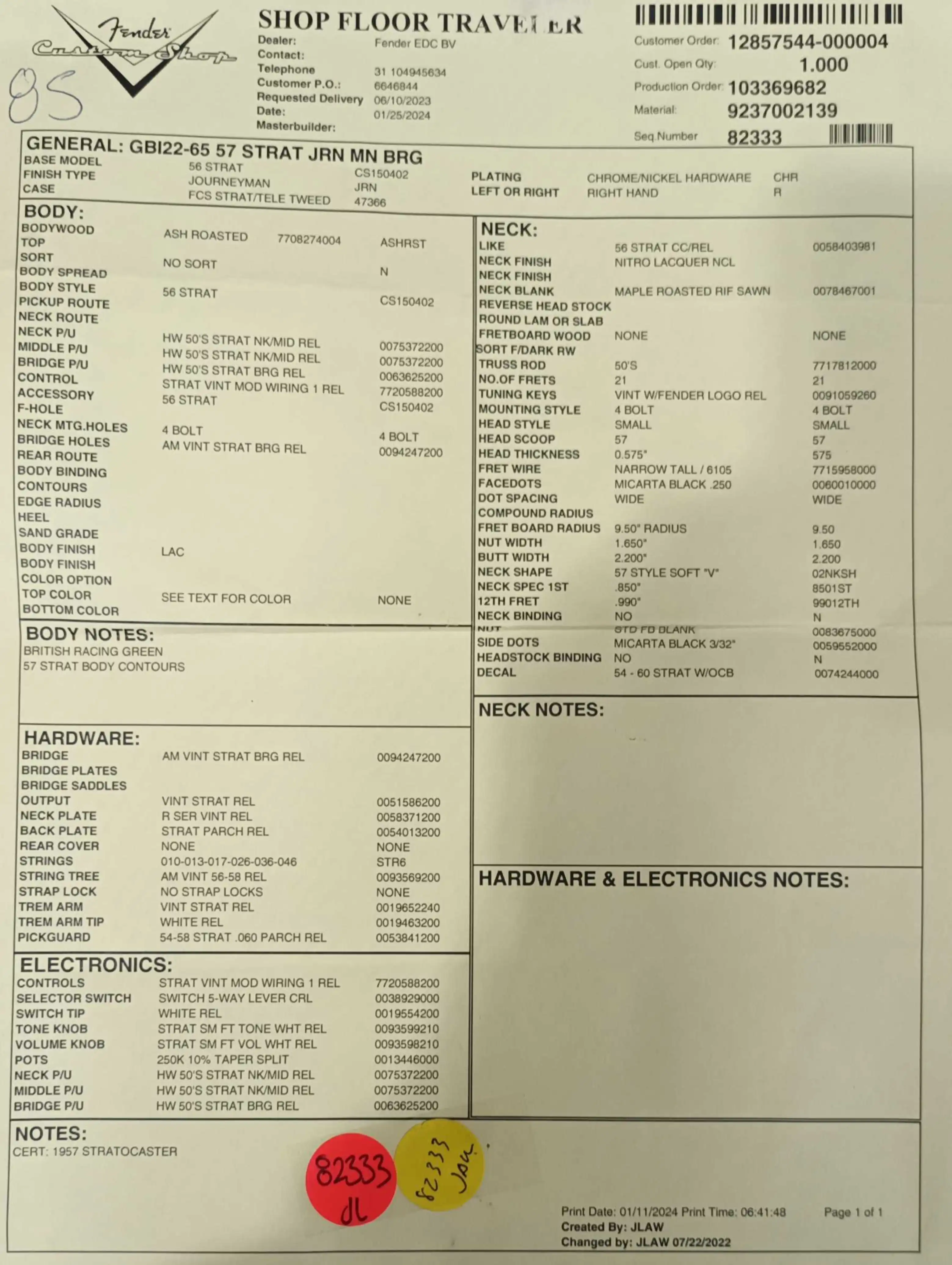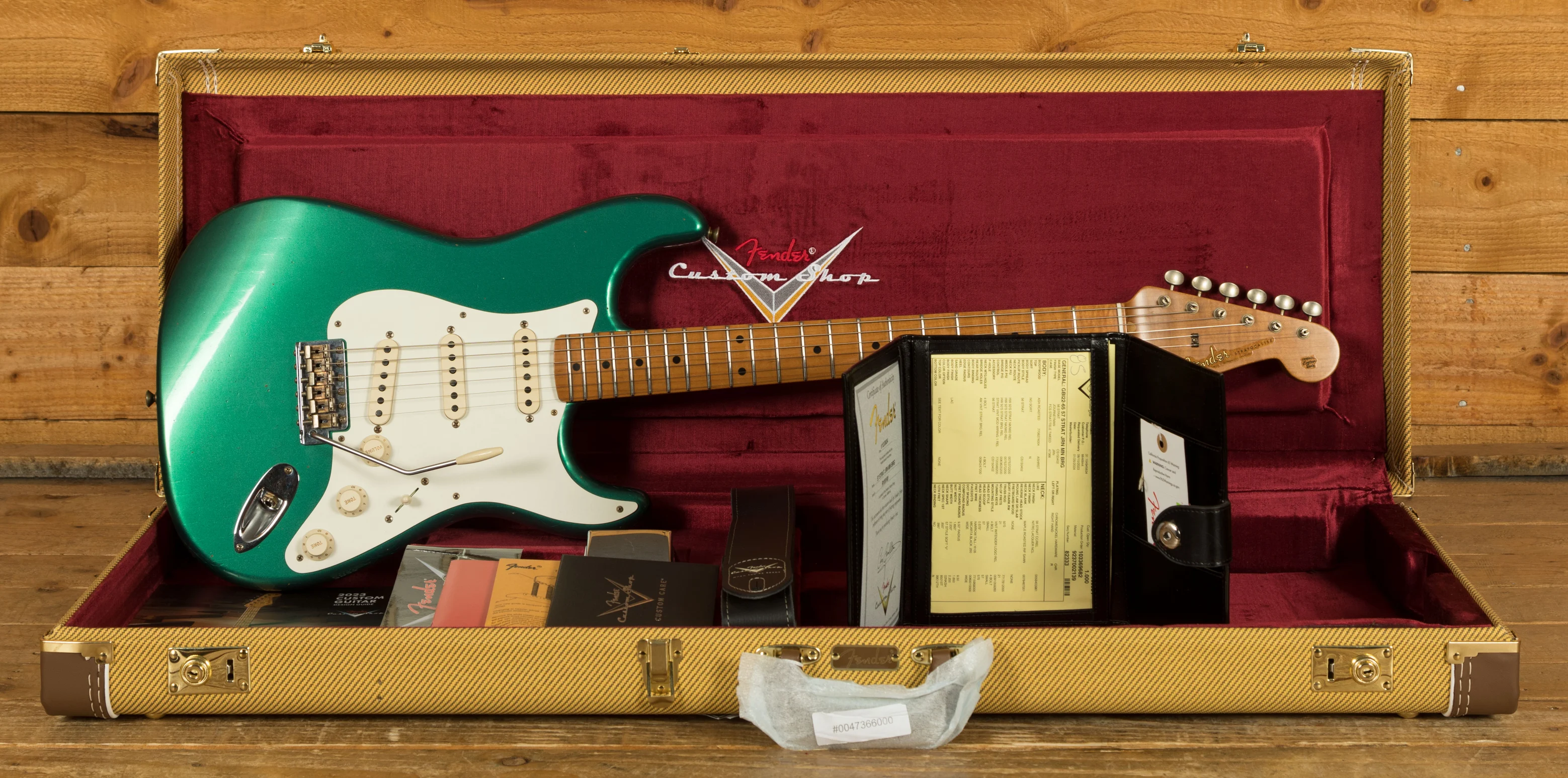 The Rift Sawn Roasted Maple neck has a smooth finish. With a 9.5" radius and 21 6105 frets, the '57 Custom Shop Stratocaster also features a '57 Style Soft "V" neck shape and a 1.650" Nut Width. It's supremely comfortable and well balanced.