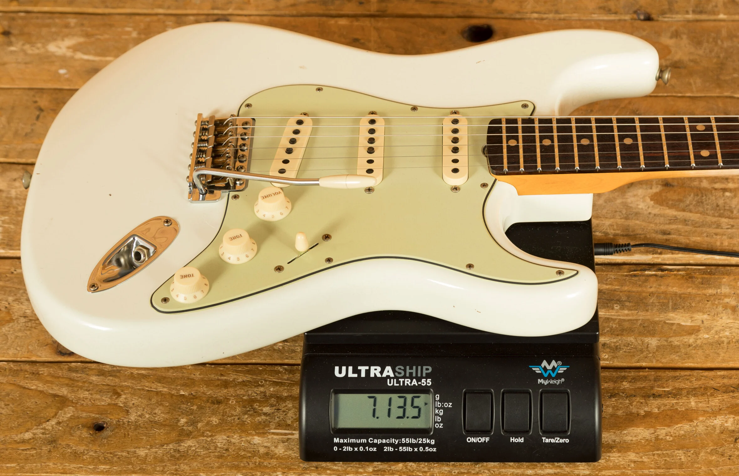 An Alder body is finished in an India Ivory finish, it's a real beauty! Authentically aged, this finish will wear beautifully with time and develop its own character even further. The thin nitro finish also allows the natural resonance of the body to sing and sustain much more effectively.