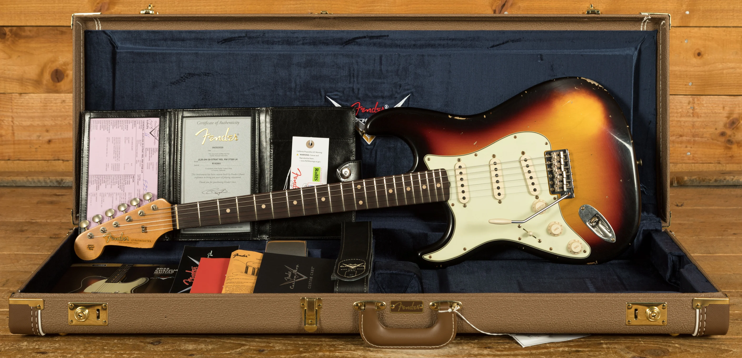 Skip to content Fender Custom Shop 59 Strat Left-Handed - Relic 3-Tone Sunburst