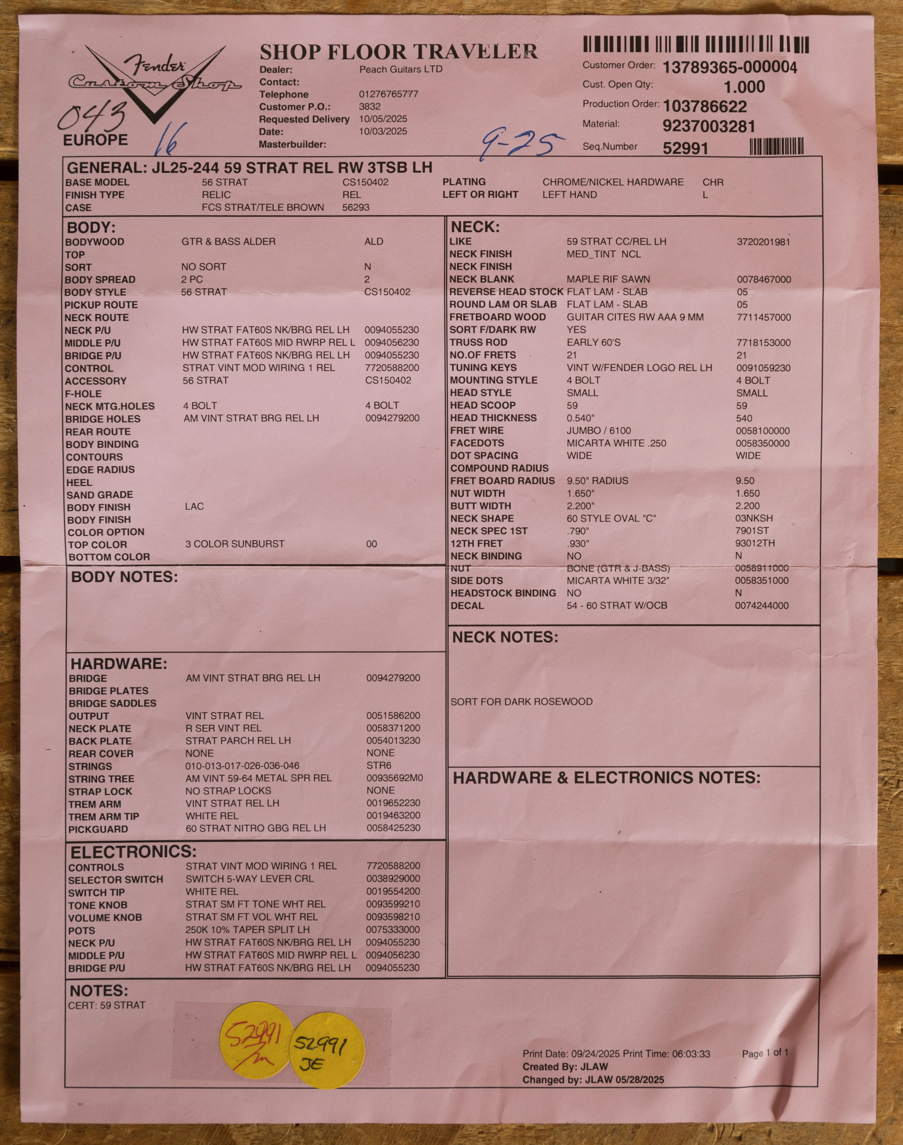 Choosing to have your purchased guitar Plek’d will delay the shipping. One of the team will be in contact with a rough ETA but we will endeavour to have your new guitar with you as quickly as possible. Current lead time is 2-3 weeks from the date of purchase.