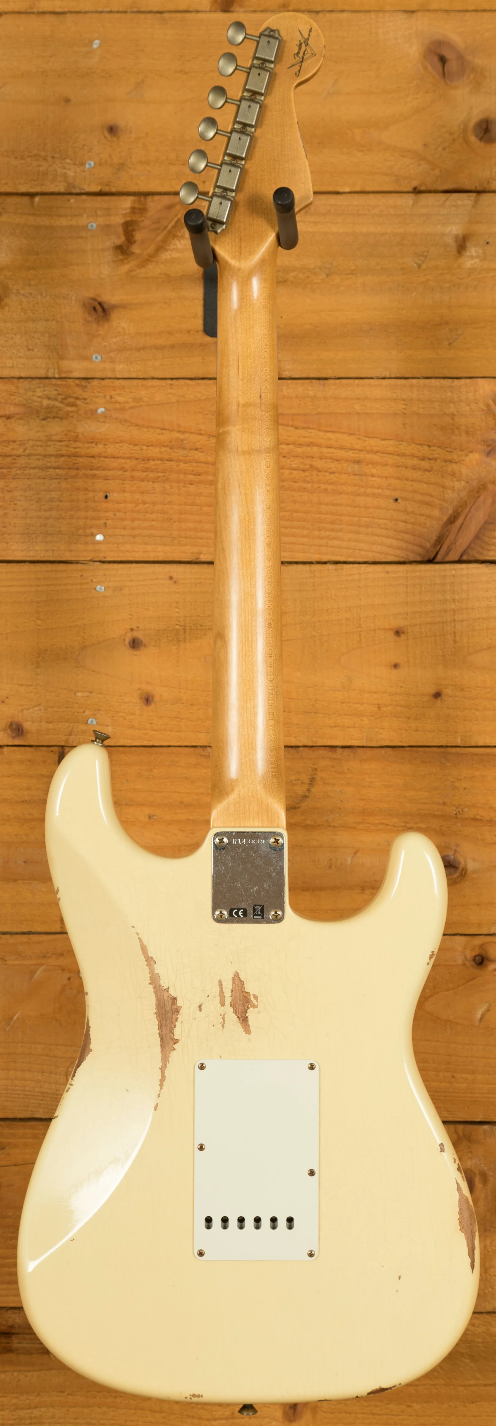 The medium tint riftsawn Maple neck has a smooth nitro finished back and an AAA grade sort-for-dark Rosewood fingerboard. With a 9.5" fingerboard radius and 21 6100 jumbo frets, the '59 Custom Shop Stratocaster can handle anything you throw at it without even breaking a sweat; it's supremely comfortable and well balanced. The 60 Style Oval "C" neck profile is a joy to play and offers a great platform for both rhythm and lead playing - measuring .790" at the 1st fret and .930" at the 12th. With the inclusion of a custom shop vintage Strat bridge and vintage tuners you have brilliant tuning stability and intonation.