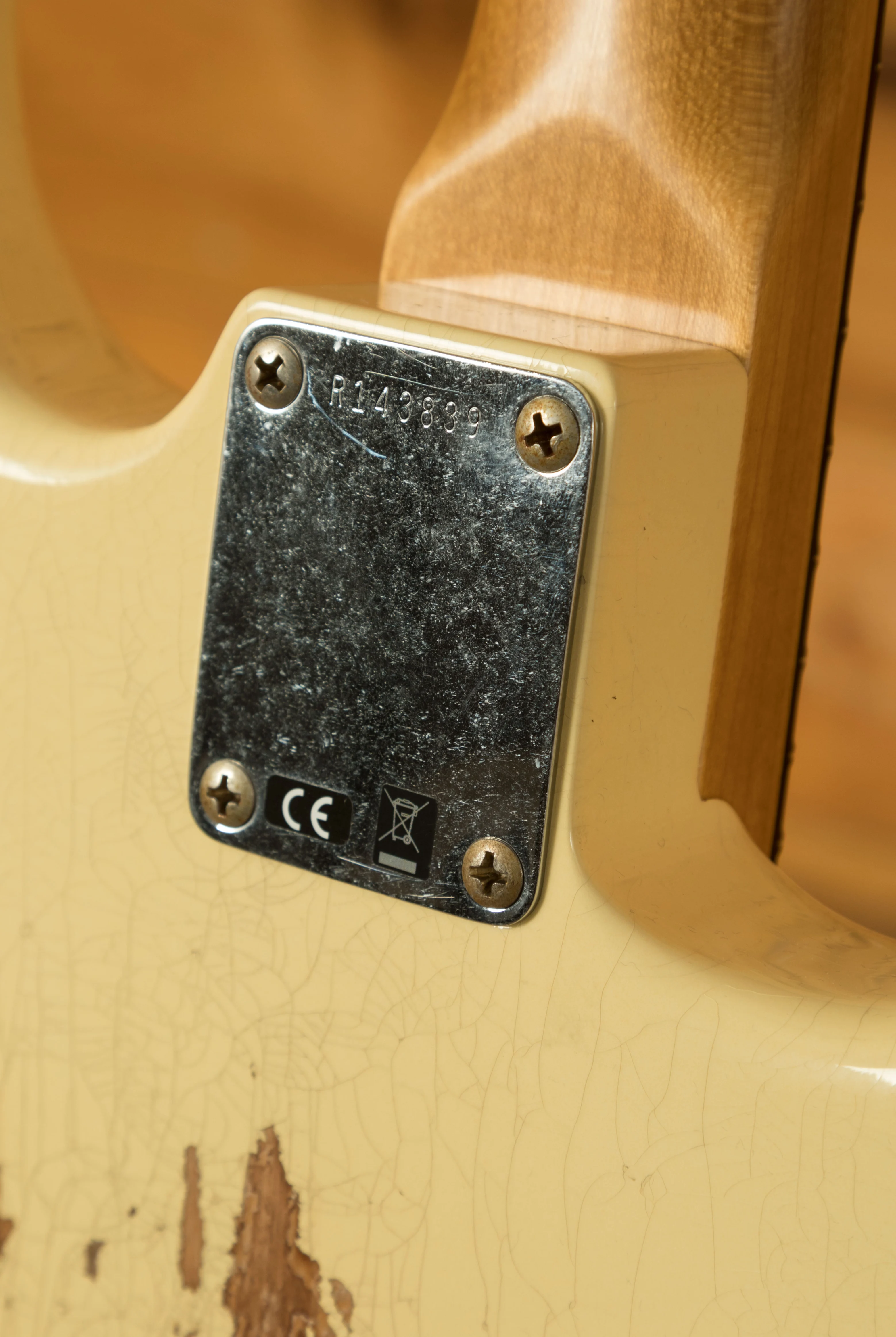 An Alder body is finished in a super cool Aged Vintage White, one of Fender's most iconic finishes, it's a real beauty! Authentically aged, this finish will wear beautifully with time and develop its own character even further. The thin nitro finish also allows the natural resonance of the body to sing and sustain much more effectively and with the relicing you also get that road-worn, look without any actual damage to the guitar.