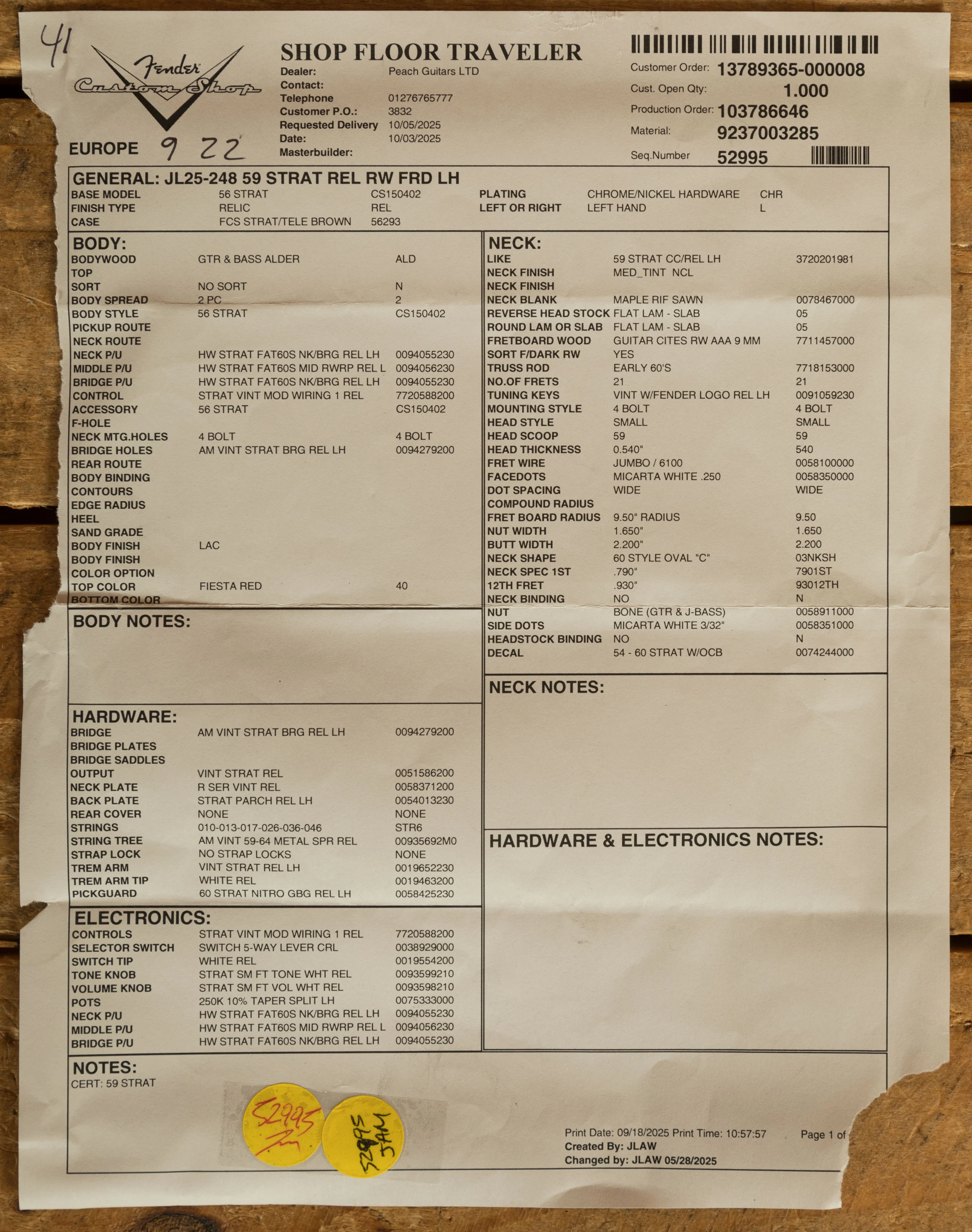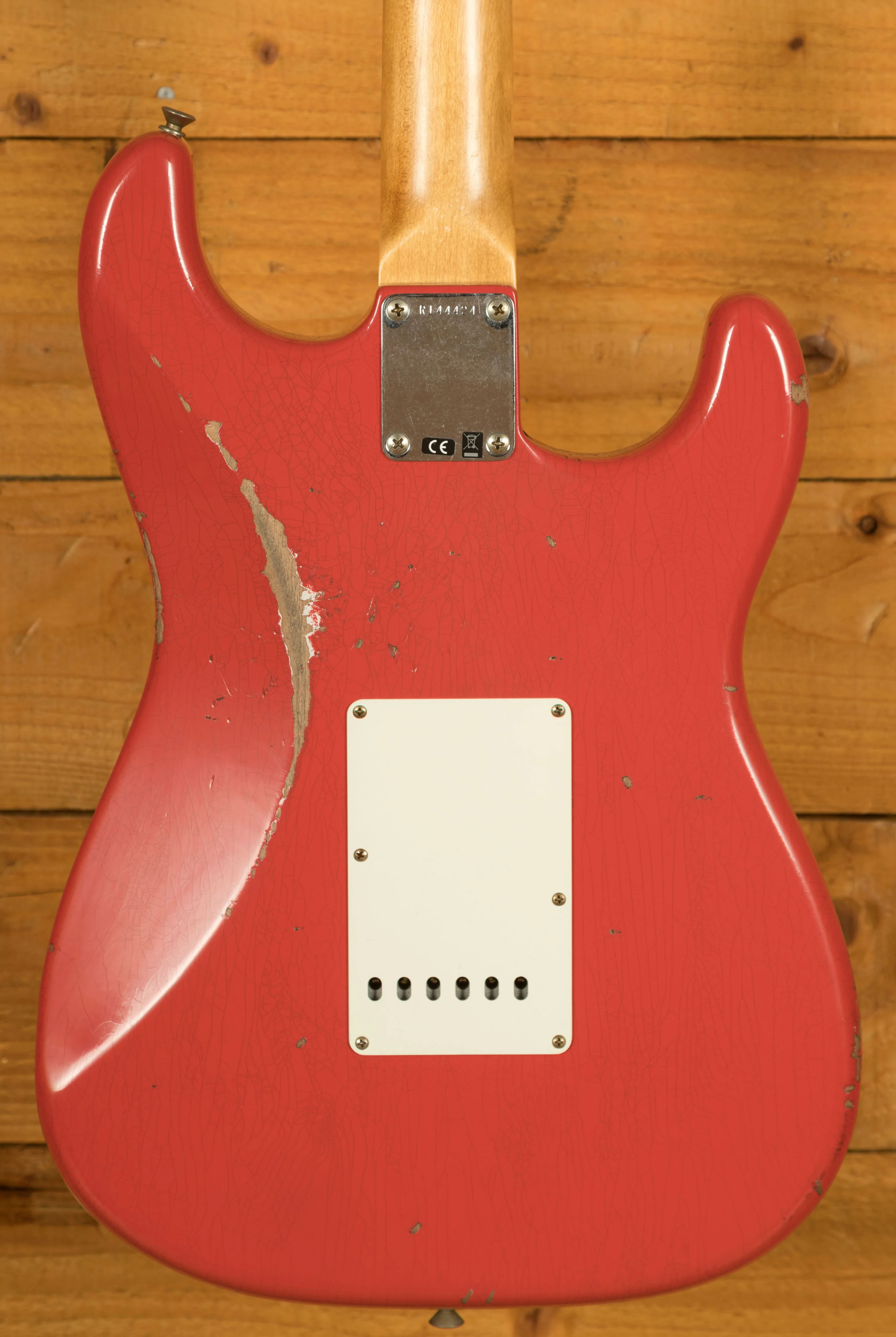 An Alder body is finished in a super cool Fiesta Red, one of Fender's most iconic finishes, it's a real beauty! Authentically aged, this finish will wear beautifully with time and develop its own character even further. The thin nitro finish also allows the natural resonance of the body to sing and sustain much more effectively and with the relicing you also get that road-worn, look without any actual damage to the guitar.