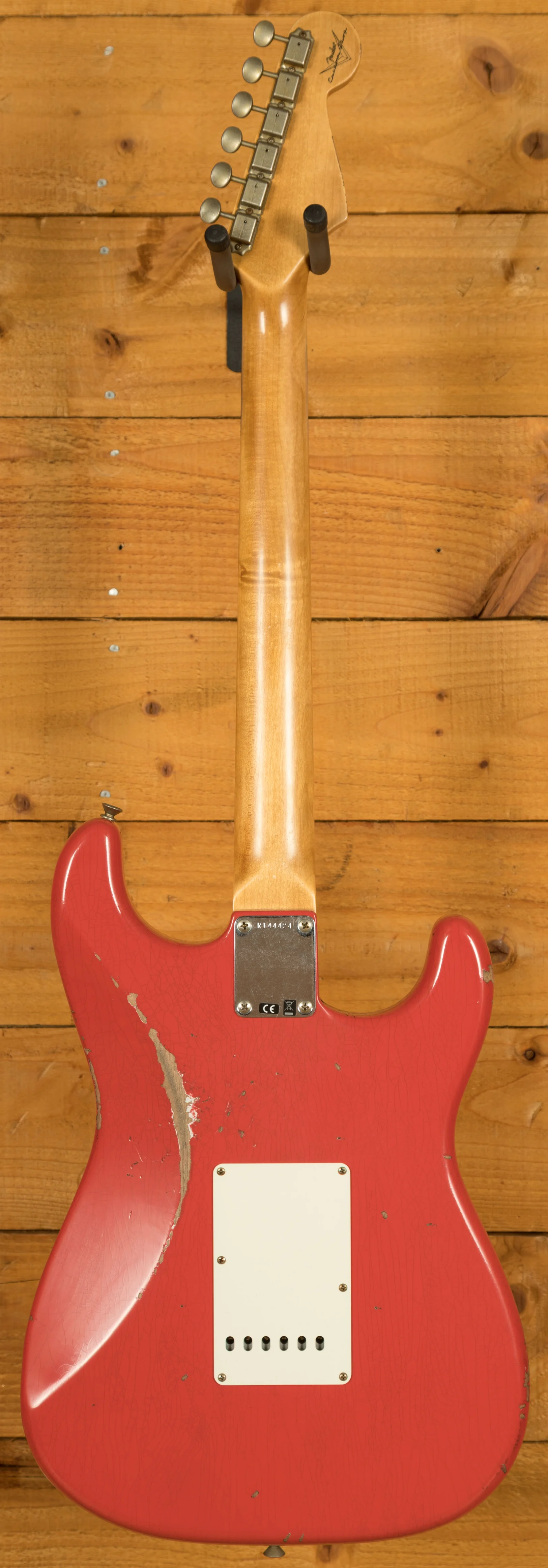 The medium tint riftsawn Maple neck has a smooth nitro finished back and an AAA grade sort-for-dark Rosewood fingerboard. With a 9.5" fingerboard radius and 21 6100 jumbo frets, the '59 Custom Shop Stratocaster can handle anything you throw at it without even breaking a sweat; it's supremely comfortable and well balanced. The 60 Style Oval "C" neck profile is a joy to play and offers a great platform for both rhythm and lead playing - measuring .790" at the 1st fret and .930" at the 12th. With the inclusion of a custom shop vintage Strat bridge and vintage tuners you have brilliant tuning stability and intonation.