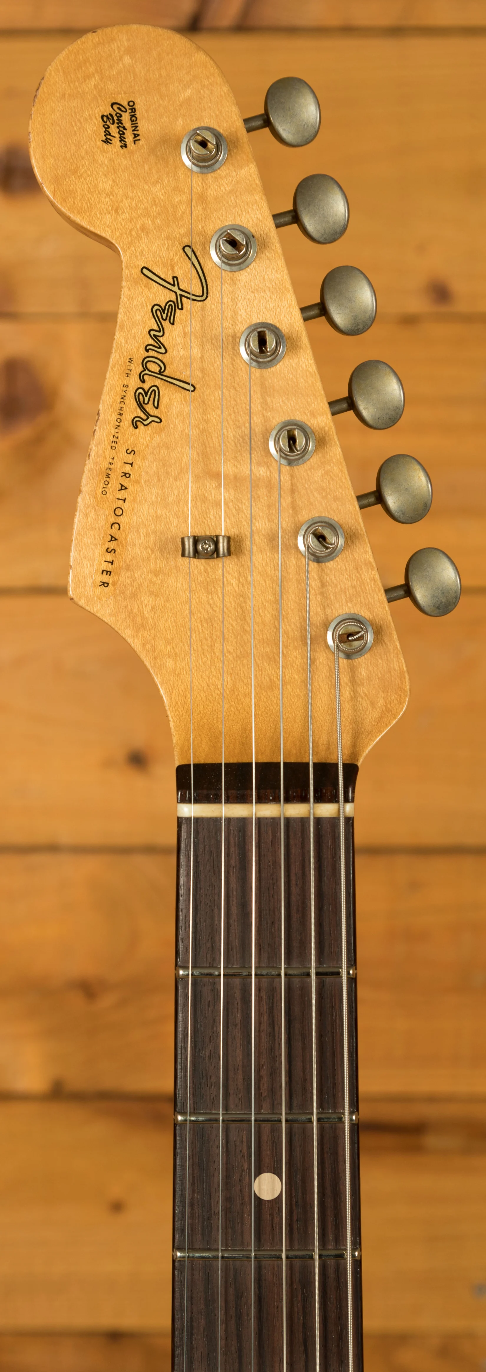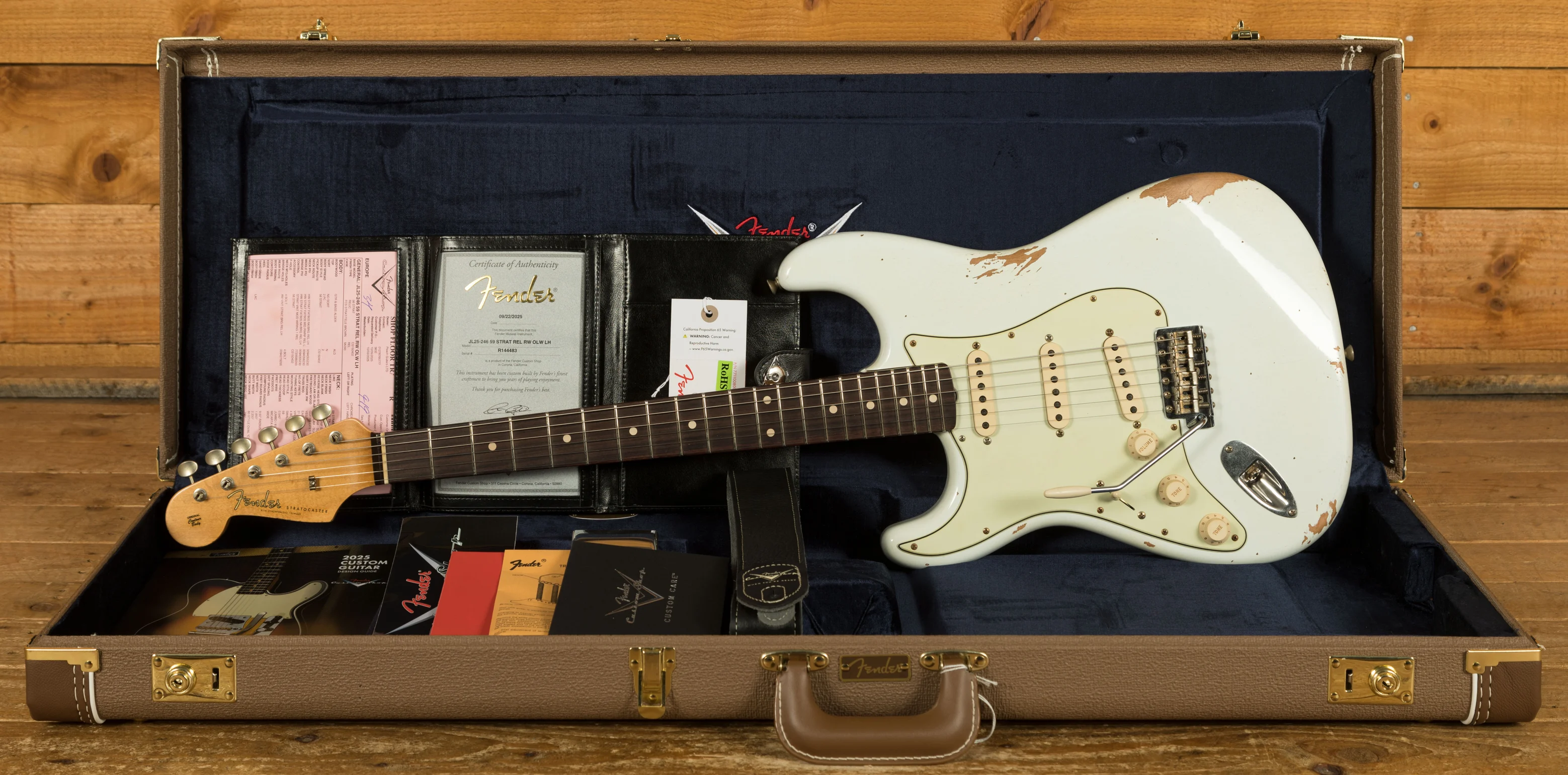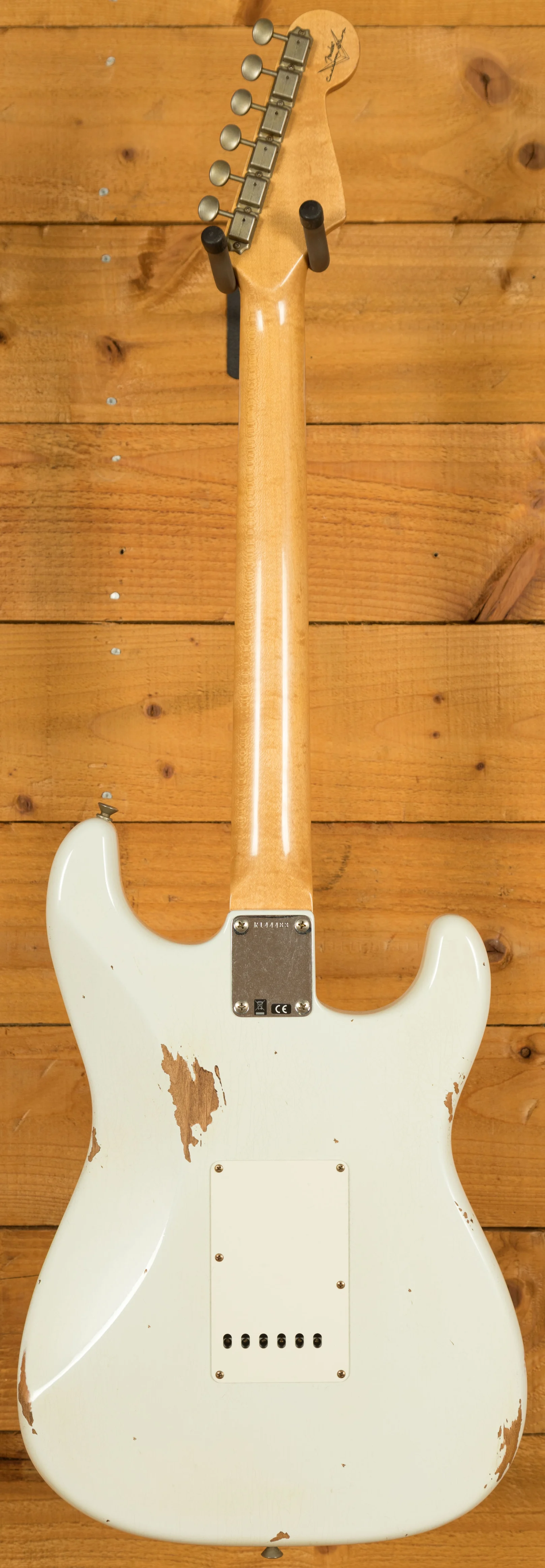 The medium tint riftsawn Maple neck has a smooth nitro finished back and an AAA grade sort-for-dark Rosewood fingerboard. With a 9.5" fingerboard radius and 21 6100 jumbo frets, the '59 Custom Shop Stratocaster can handle anything you throw at it without even breaking a sweat; it's supremely comfortable and well balanced. The 60 Style Oval "C" neck profile is a joy to play and offers a great platform for both rhythm and lead playing - measuring .790" at the 1st fret and .930" at the 12th. With the inclusion of a custom shop vintage Strat bridge and vintage tuners you have brilliant tuning stability and intonation.