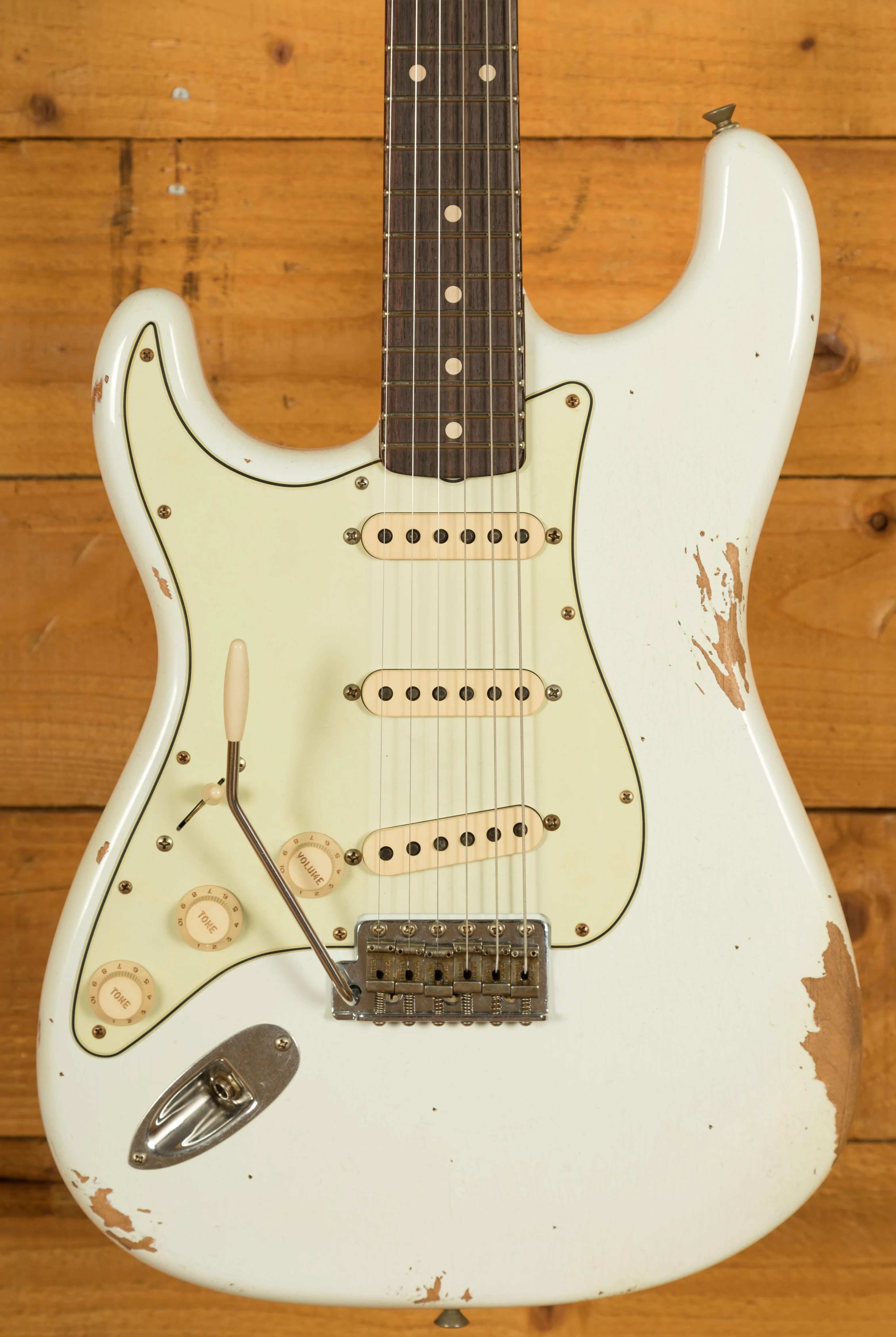 An Alder body is finished in a super cool Olympic White, one of Fender's most iconic finishes, it's a real beauty! Authentically aged, this finish will wear beautifully with time and develop its own character even further. The thin nitro finish also allows the natural resonance of the body to sing and sustain much more effectively and with the relicing you also get that road-worn, look without any actual damage to the guitar.