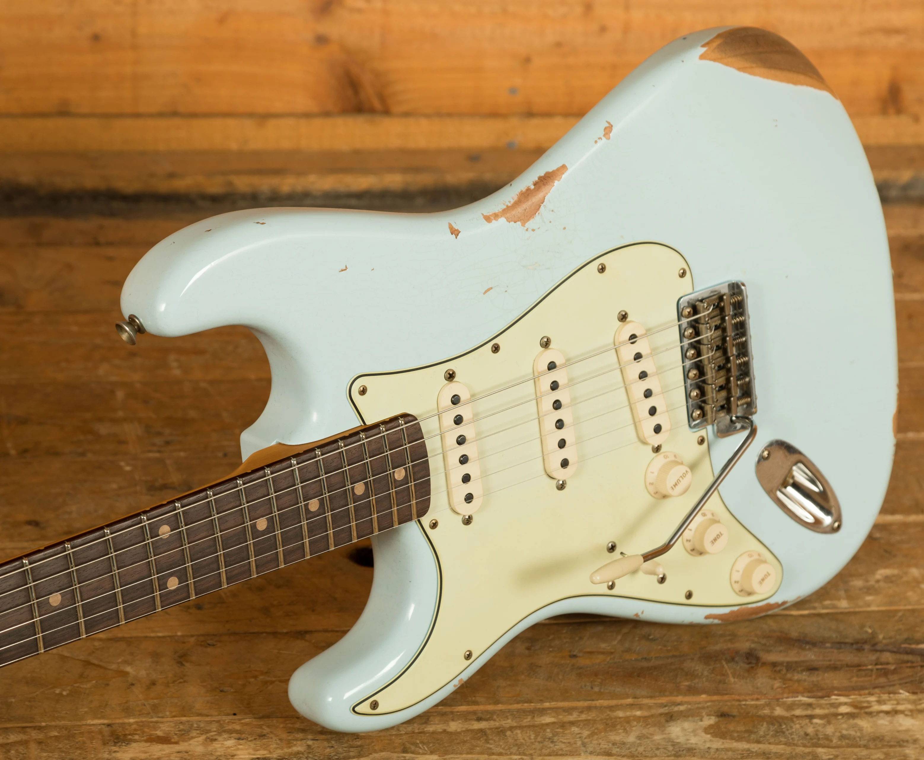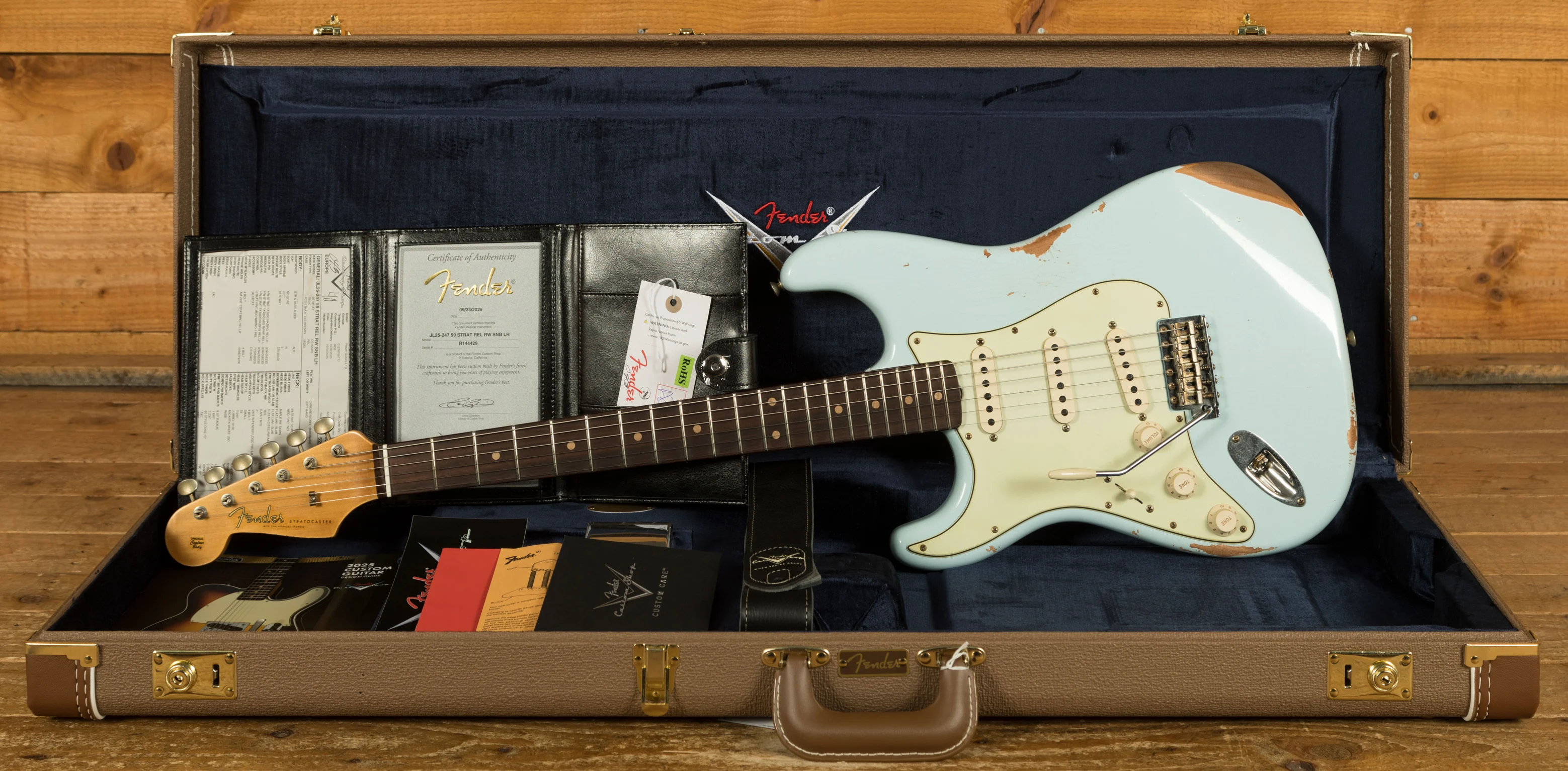The medium tint riftsawn Maple neck has a smooth nitro finished back and an AAA grade sort-for-dark Rosewood fingerboard. With a 9.5" fingerboard radius and 21 6100 jumbo frets, the '59 Custom Shop Stratocaster can handle anything you throw at it without even breaking a sweat; it's supremely comfortable and well balanced. The 60 Style Oval "C" neck profile is a joy to play and offers a great platform for both rhythm and lead playing - measuring .790" at the 1st fret and .930" at the 12th. With the inclusion of a custom shop vintage Strat bridge and vintage tuners you have brilliant tuning stability and intonation.
