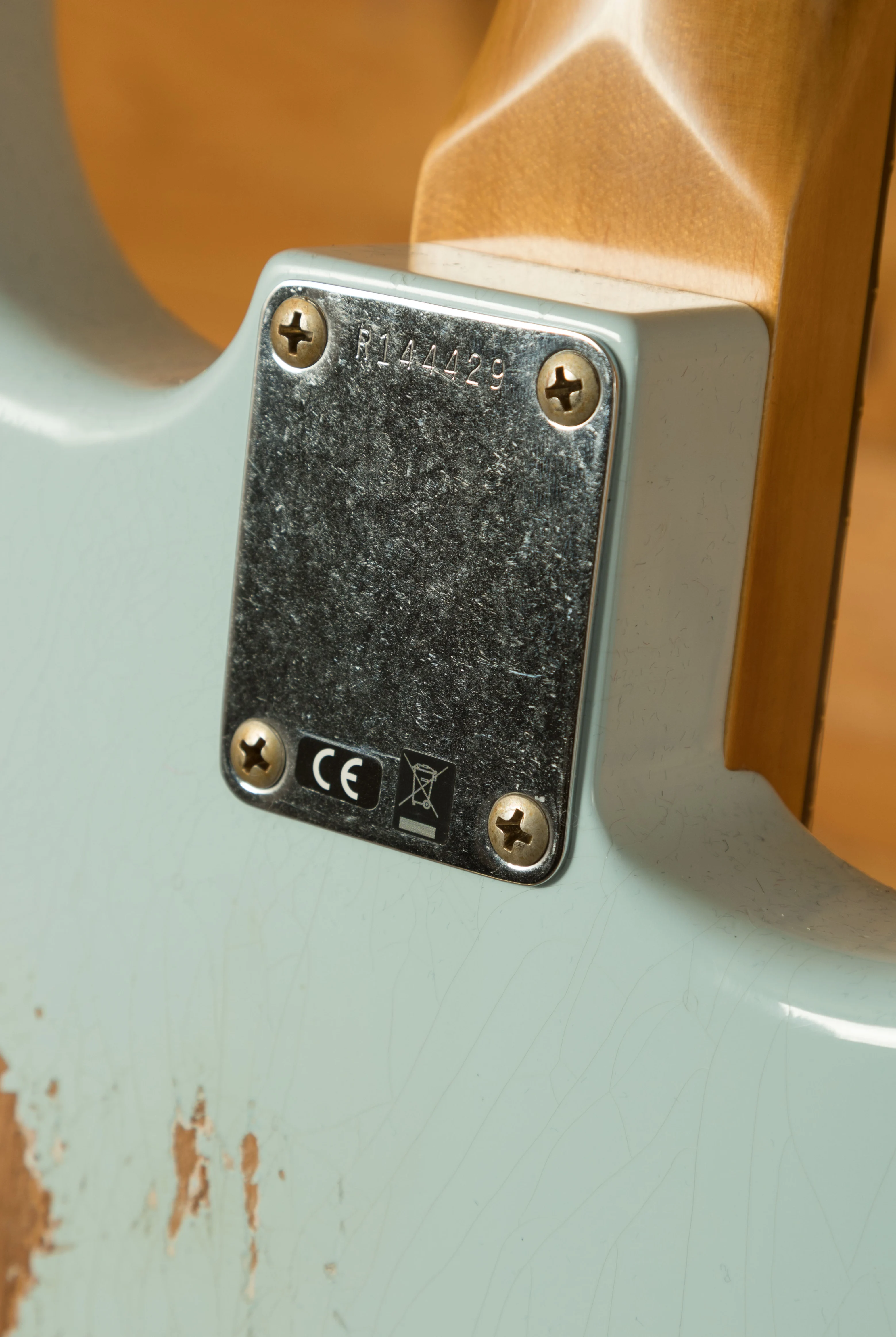 An Alder body is finished in a super cool Sonic Blue, one of Fender's most iconic finishes, it's a real beauty! Authentically aged, this finish will wear beautifully with time and develop its own character even further. The thin nitro finish also allows the natural resonance of the body to sing and sustain much more effectively and with the relicing you also get that road-worn, look without any actual damage to the guitar.