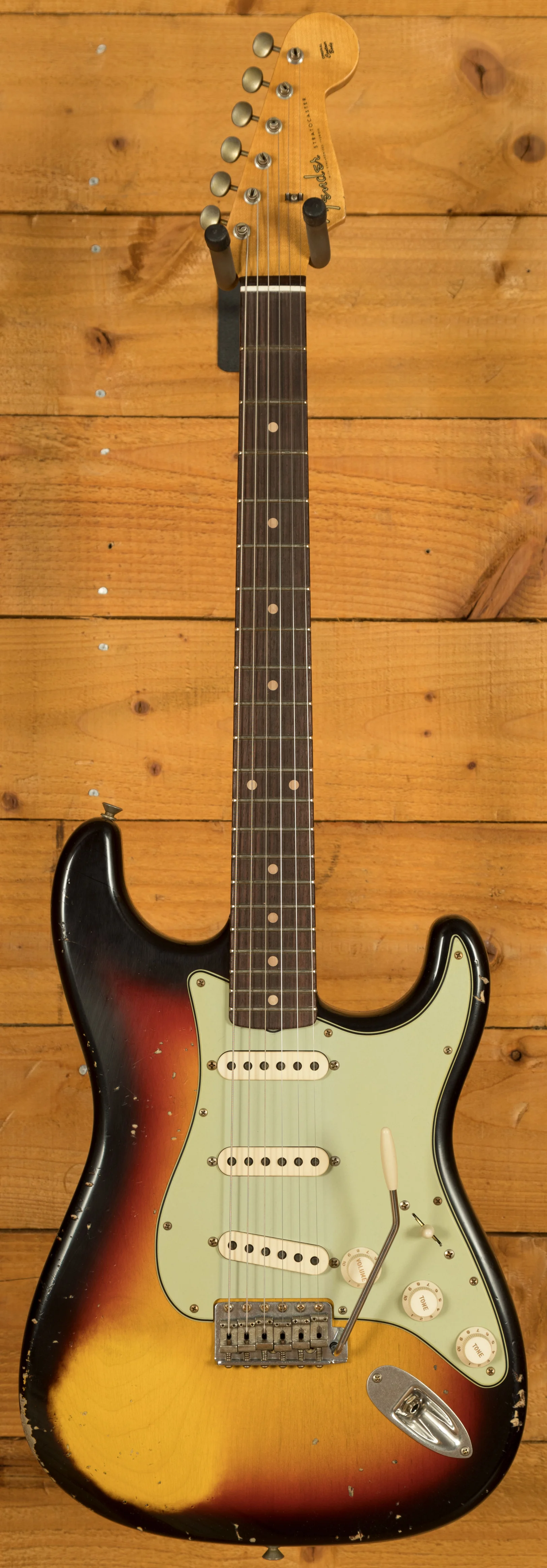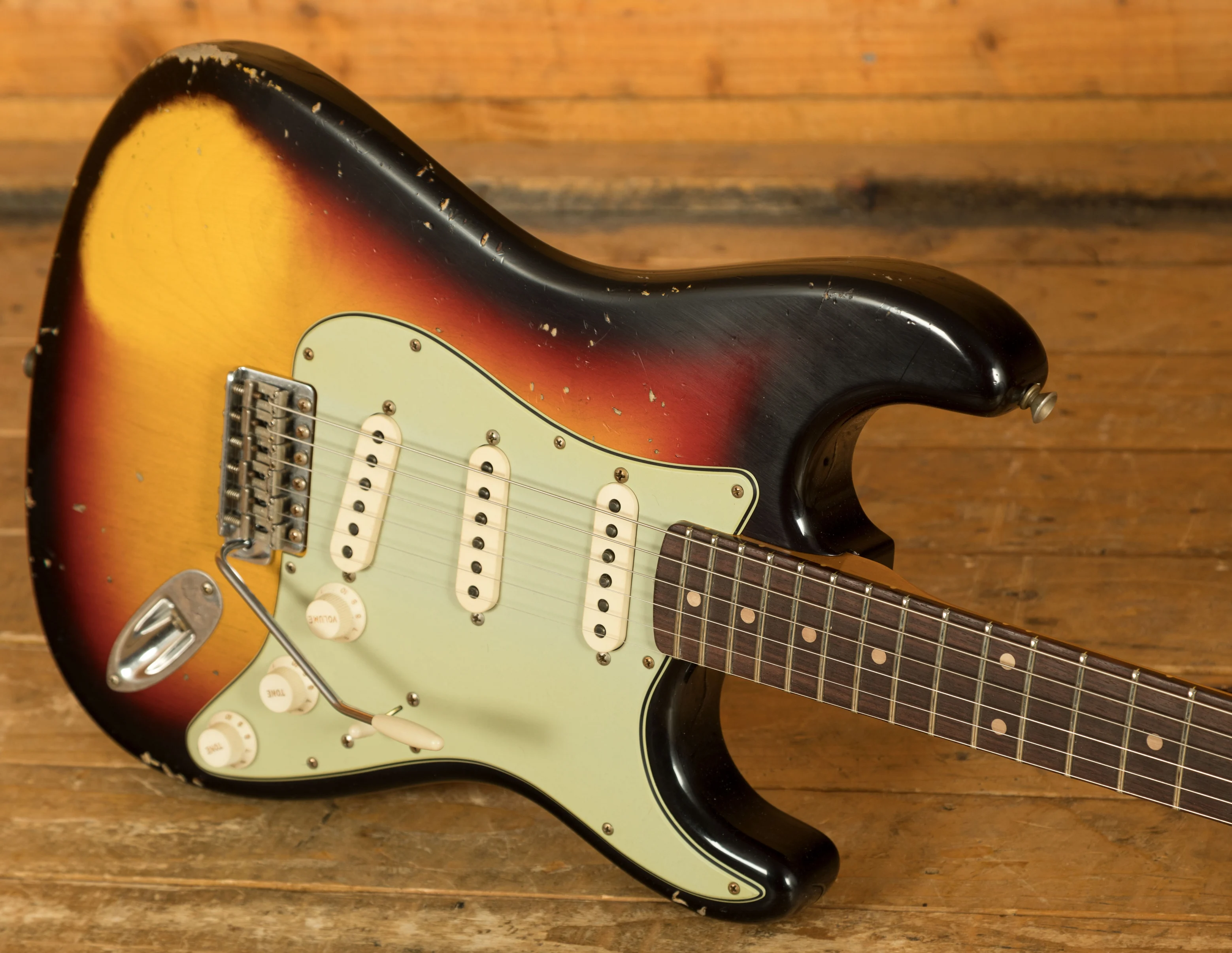 The electronics are a highlight of this instrument. It is equipped with three hand-wound Fat '60s single-coils. These pickups deliver a rich and dynamic tonal range, offering a strong bass response, clear and articulate highs, and a vintage-correct voice that responds sensitively to playing dynamics. This makes the guitar equally capable of handling subtle, expressive passages as well as more powerful, driven tones.