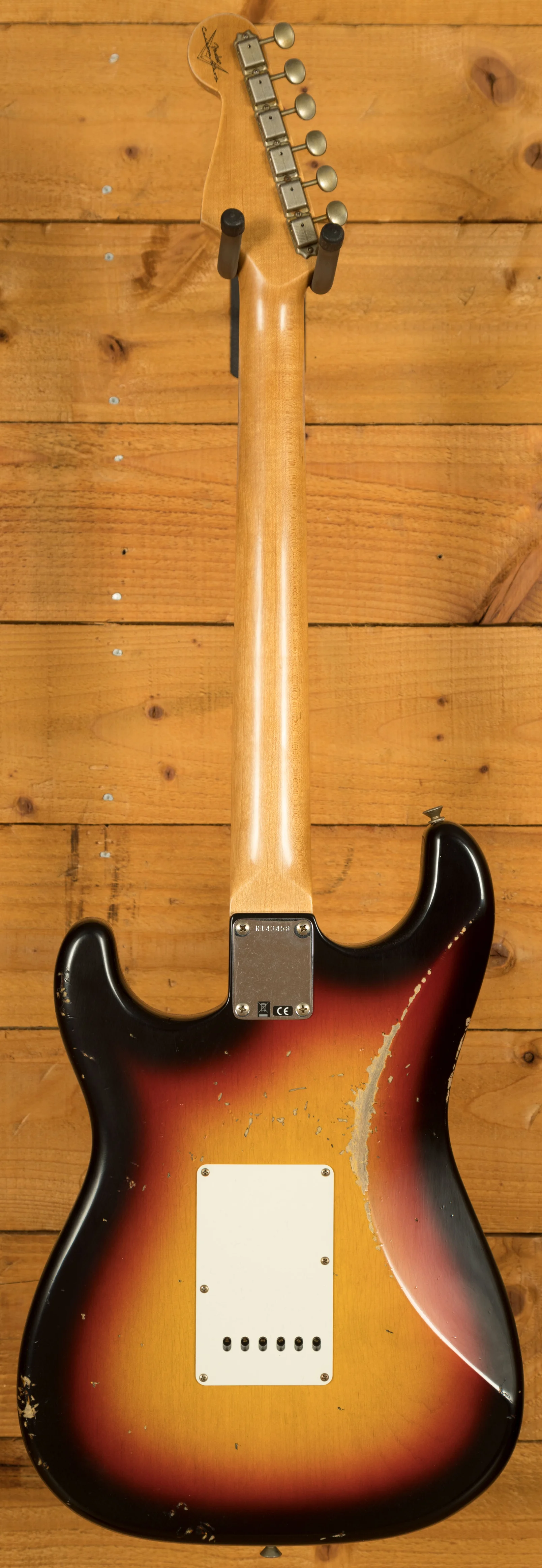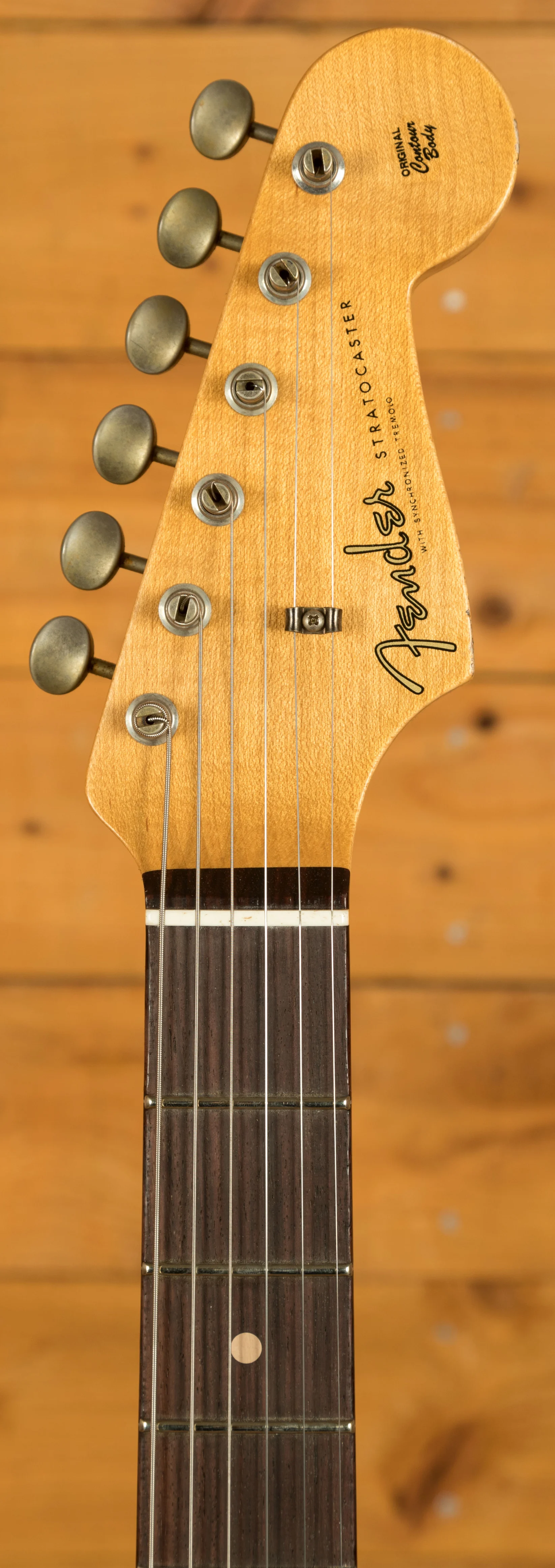 The medium tint riftsawn Maple neck has a smooth nitro finished back and an AAA grade sort-for-dark Rosewood fingerboard. With a 9.5" fingerboard radius and 21 6100 jumbo frets, the '59 Custom Shop Stratocaster can handle anything you throw at it without even breaking a sweat; it's supremely comfortable and well balanced. The 60 Style Oval "C" neck profile is a joy to play and offers a great platform for both rhythm and lead playing - measuring .790" at the 1st fret and .930" at the 12th. With the inclusion of a custom shop vintage Strat bridge and vintage tuners you have brilliant tuning stability and intonation.