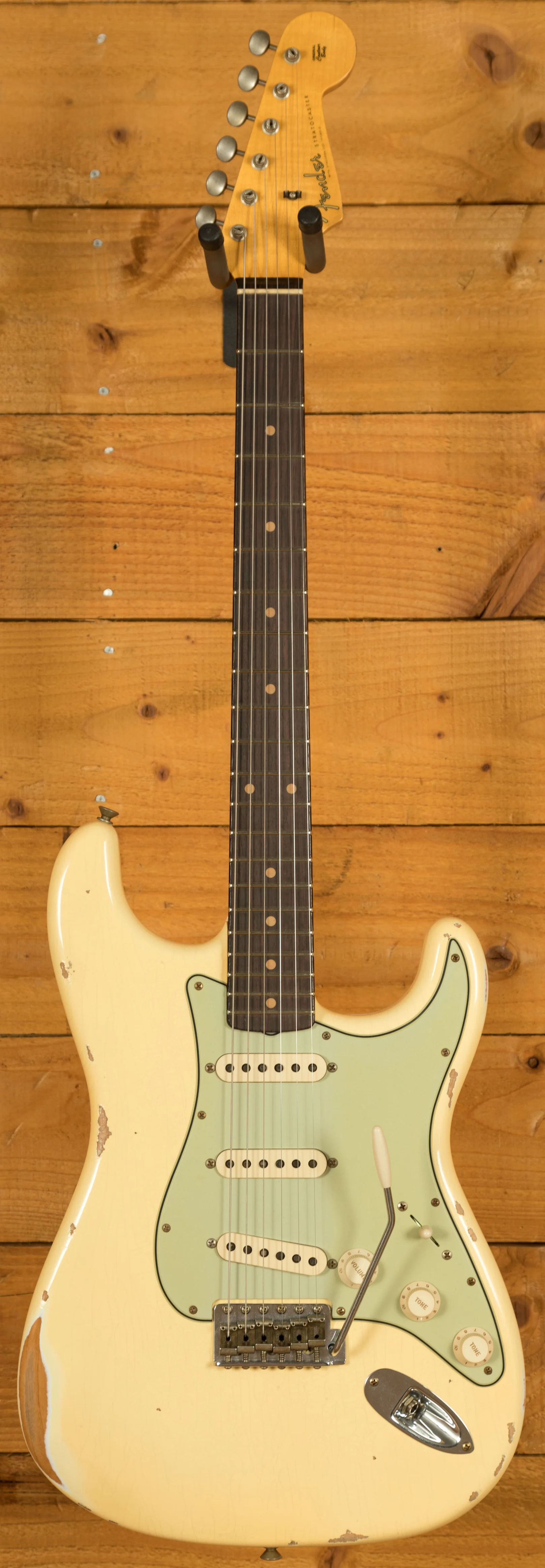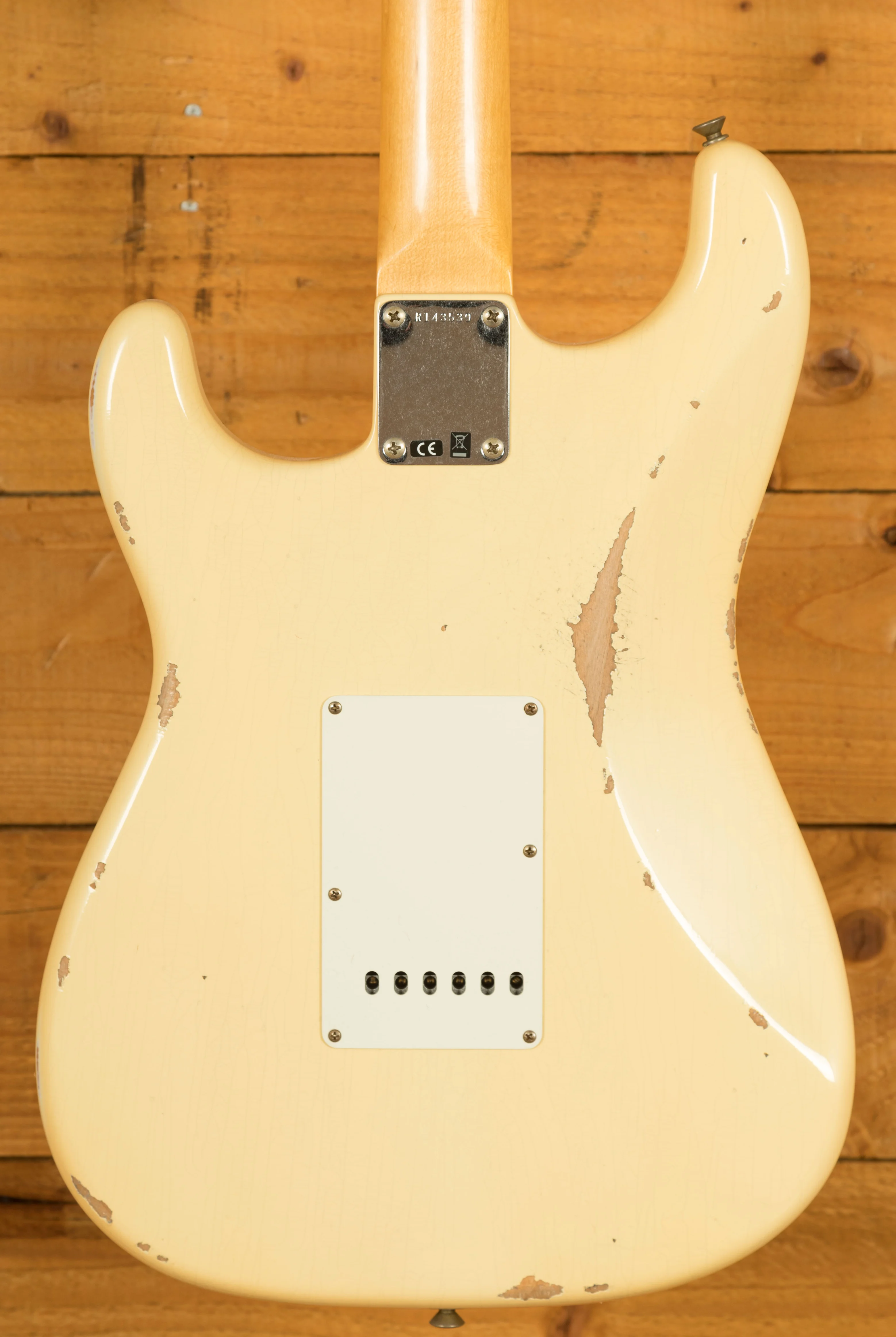 An Alder body is finished in a classic Aged Vintage White, one of Fender's most iconic finishes, it's a real beauty! Authentically aged, this finish will wear beautifully with time and develop its own character even further. The thin nitro finish also allows the natural resonance of the body to sing and sustain much more effectively and with the relicing you also get that road-worn, look without any actual damage to the guitar.