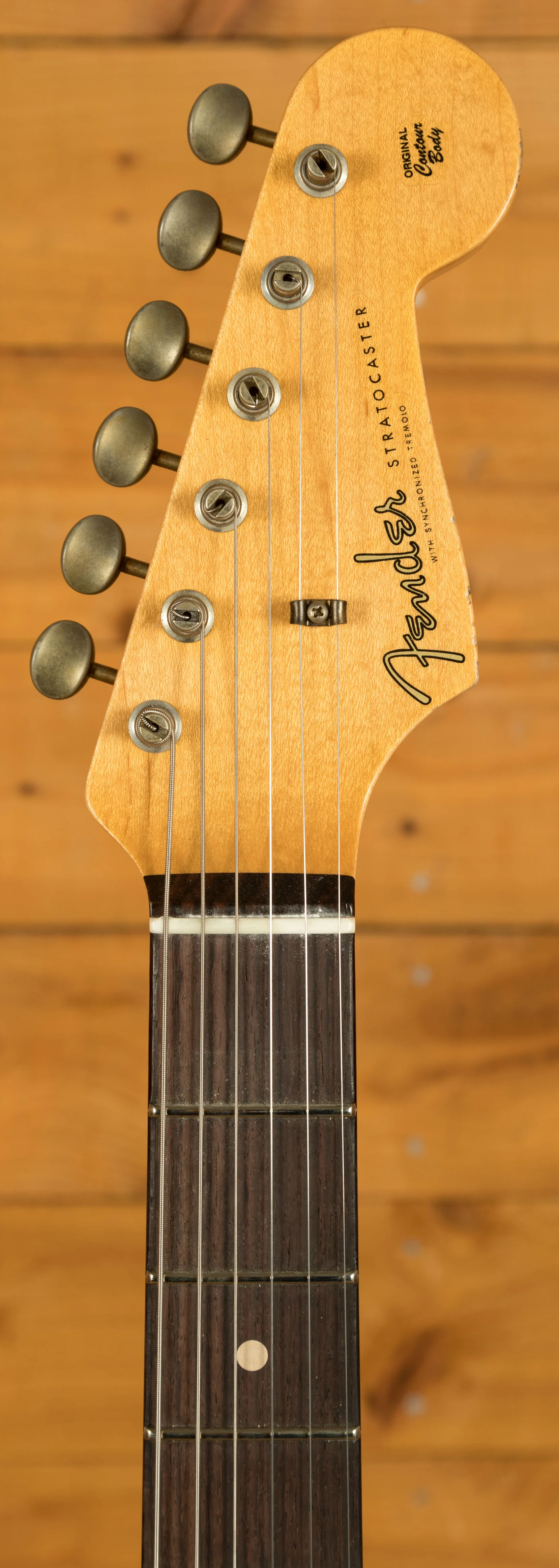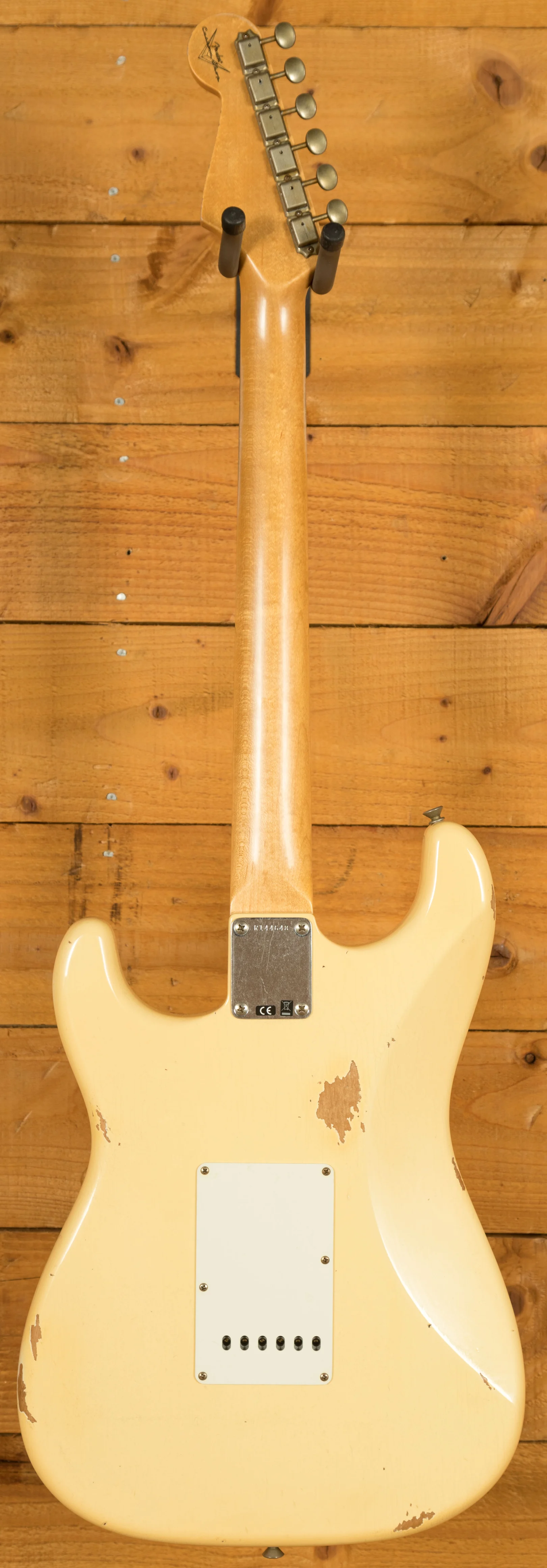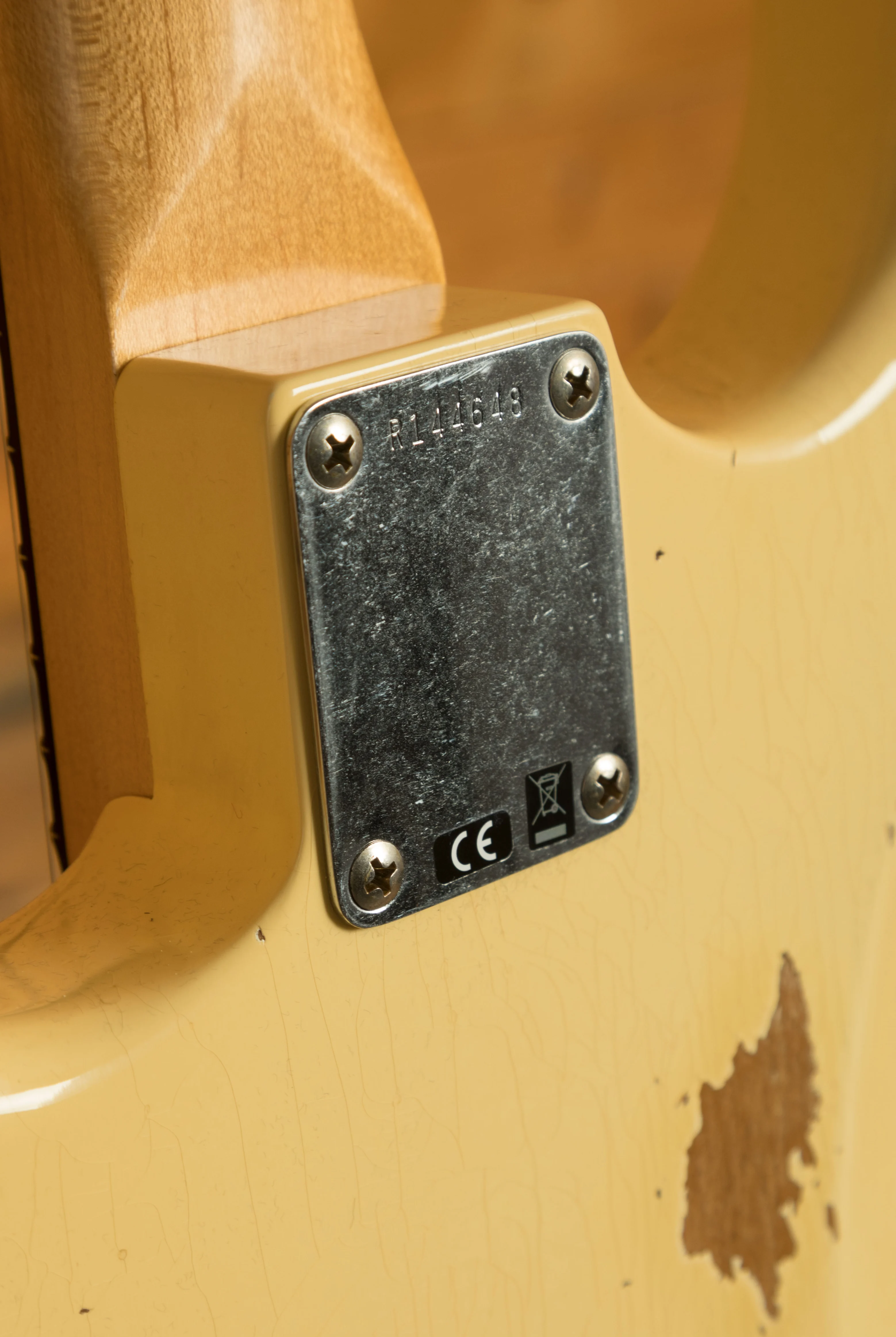 An Alder body is finished in a super cool Aged Vintage White, one of Fender's most iconic finishes, it's a real beauty! Authentically aged, this finish will wear beautifully with time and develop its own character even further. The thin nitro finish also allows the natural resonance of the body to sing and sustain much more effectively and with the relicing you also get that road-worn, look without any actual damage to the guitar.