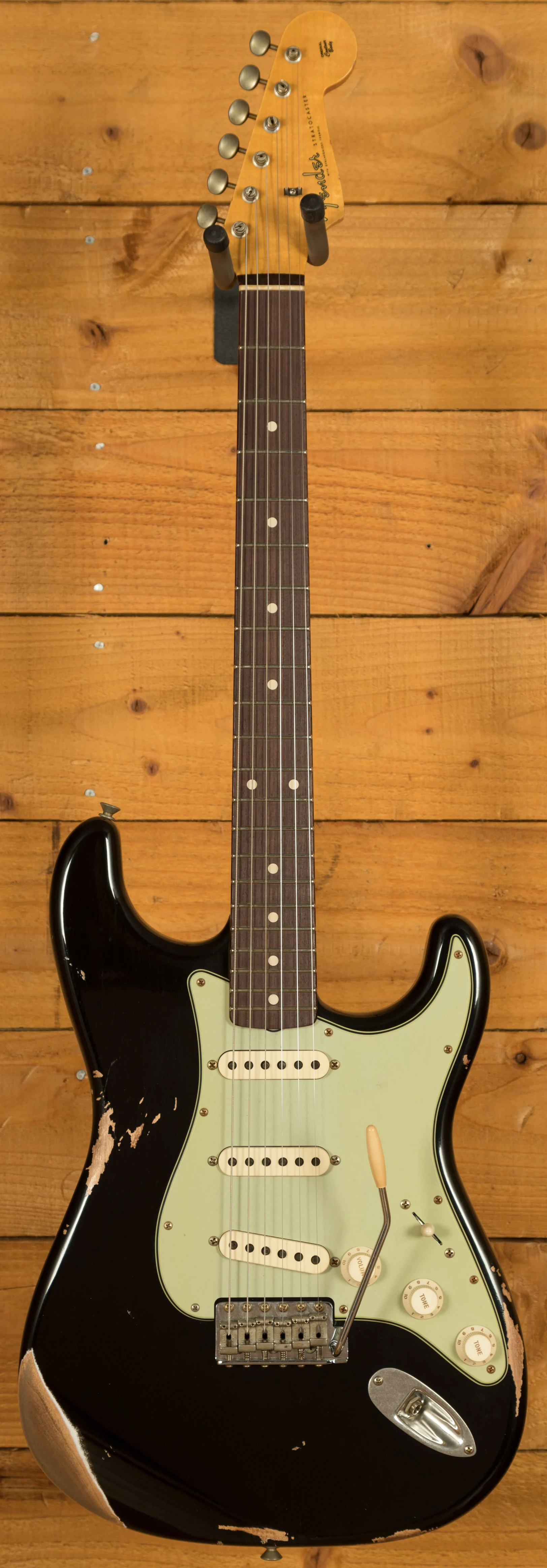 The electronics are a highlight of this instrument. It is equipped with three hand-wound Fat '60s single-coils. These pickups deliver a rich and dynamic tonal range, offering a strong bass response, clear and articulate highs, and a vintage-correct voice that responds sensitively to playing dynamics. This makes the guitar equally capable of handling subtle, expressive passages as well as more powerful, driven tones.
