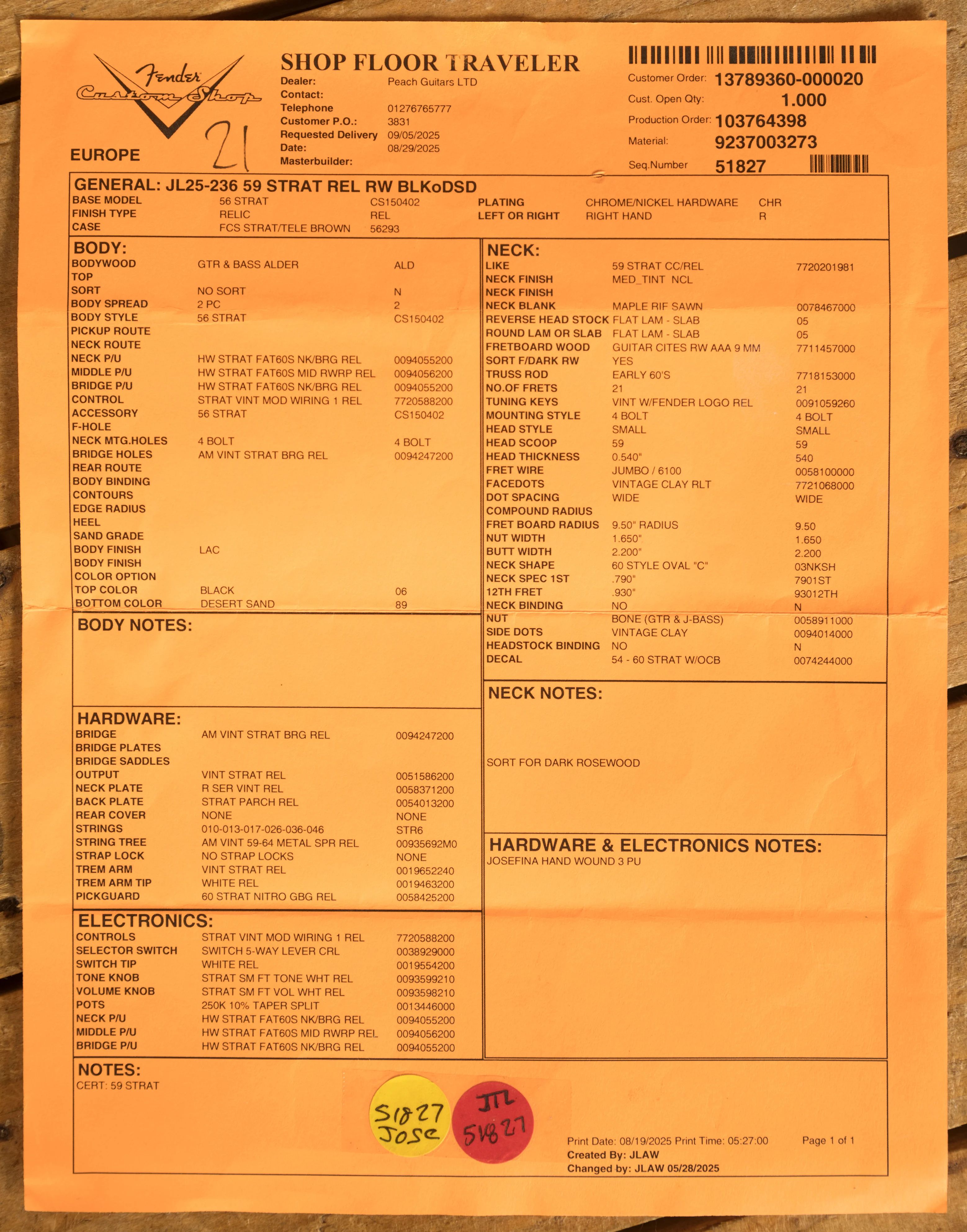 An Alder body is finished in a super cool Black/Desert Sand, one of Fender's most iconic finishes, it's a real beauty! Authentically aged, this finish will wear beautifully with time and develop its own character even further. The thin nitro finish also allows the natural resonance of the body to sing and sustain much more effectively and with the relicing you also get that road-worn, look without any actual damage to the guitar.