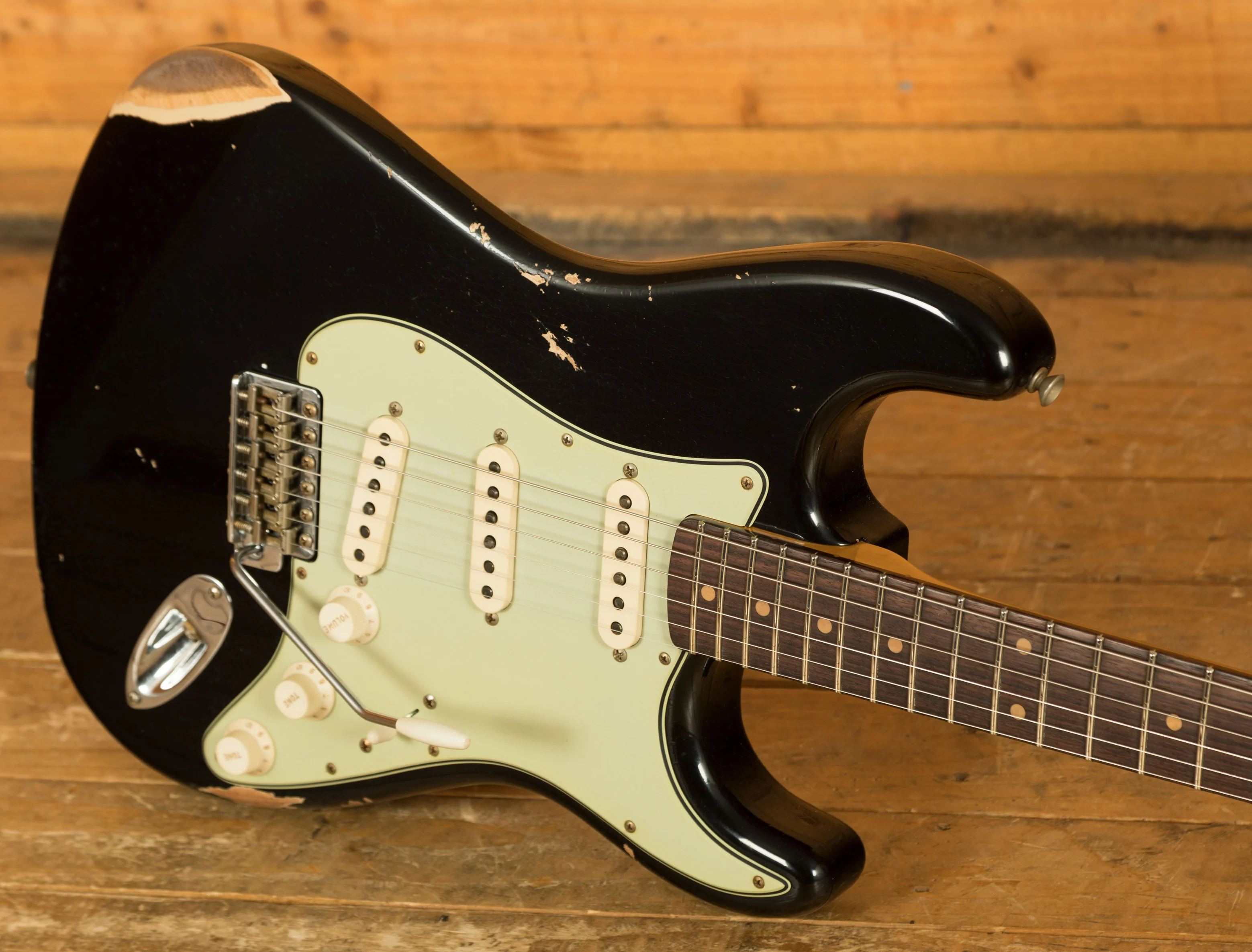 The medium tint riftsawn Maple neck has a smooth nitro finished back and an AAA grade sort-for-dark Rosewood fingerboard. With a 9.5" fingerboard radius and 21 6100 jumbo frets, the '59 Custom Shop Stratocaster can handle anything you throw at it without even breaking a sweat; it's supremely comfortable and well balanced. The 60 Style Oval "C" neck profile is a joy to play and offers a great platform for both rhythm and lead playing - measuring .790" at the 1st fret and .930" at the 12th. With the inclusion of a custom shop vintage Strat bridge and vintage tuners you have brilliant tuning stability and intonation.