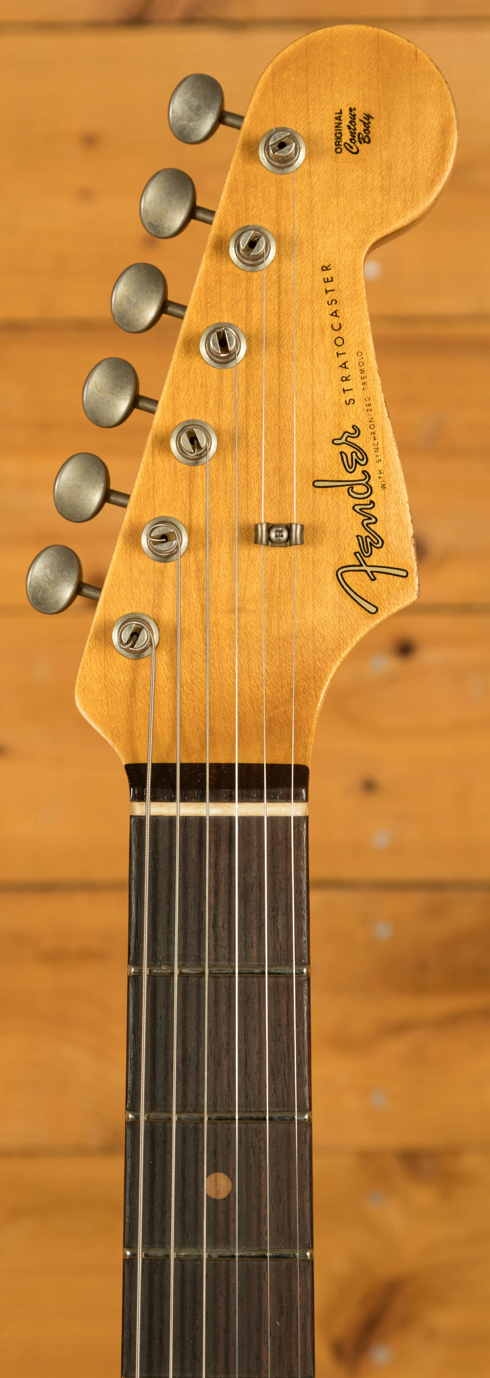 The medium tint riftsawn Maple neck has a smooth nitro finished back and an AAA grade sort-for-dark Rosewood fingerboard. With a 9.5" fingerboard radius and 21 6100 jumbo frets, the '59 Custom Shop Stratocaster can handle anything you throw at it without even breaking a sweat; it's supremely comfortable and well balanced. The 60 Style Oval "C" neck profile is a joy to play and offers a great platform for both rhythm and lead playing - measuring .790" at the 1st fret and .930" at the 12th. With the inclusion of a custom shop vintage Strat bridge and vintage tuners you have brilliant tuning stability and intonation.