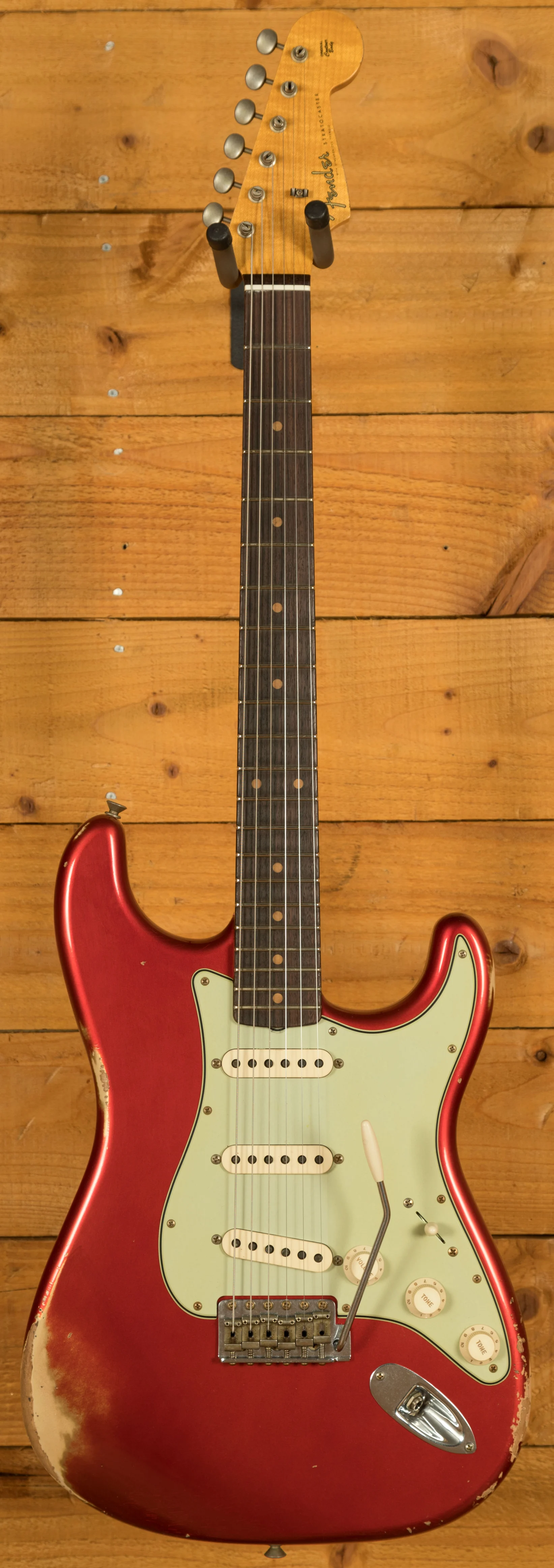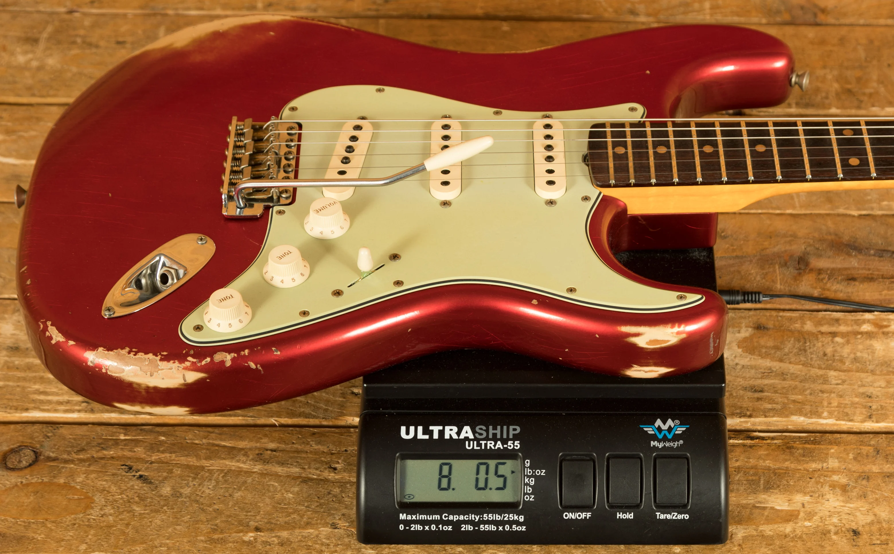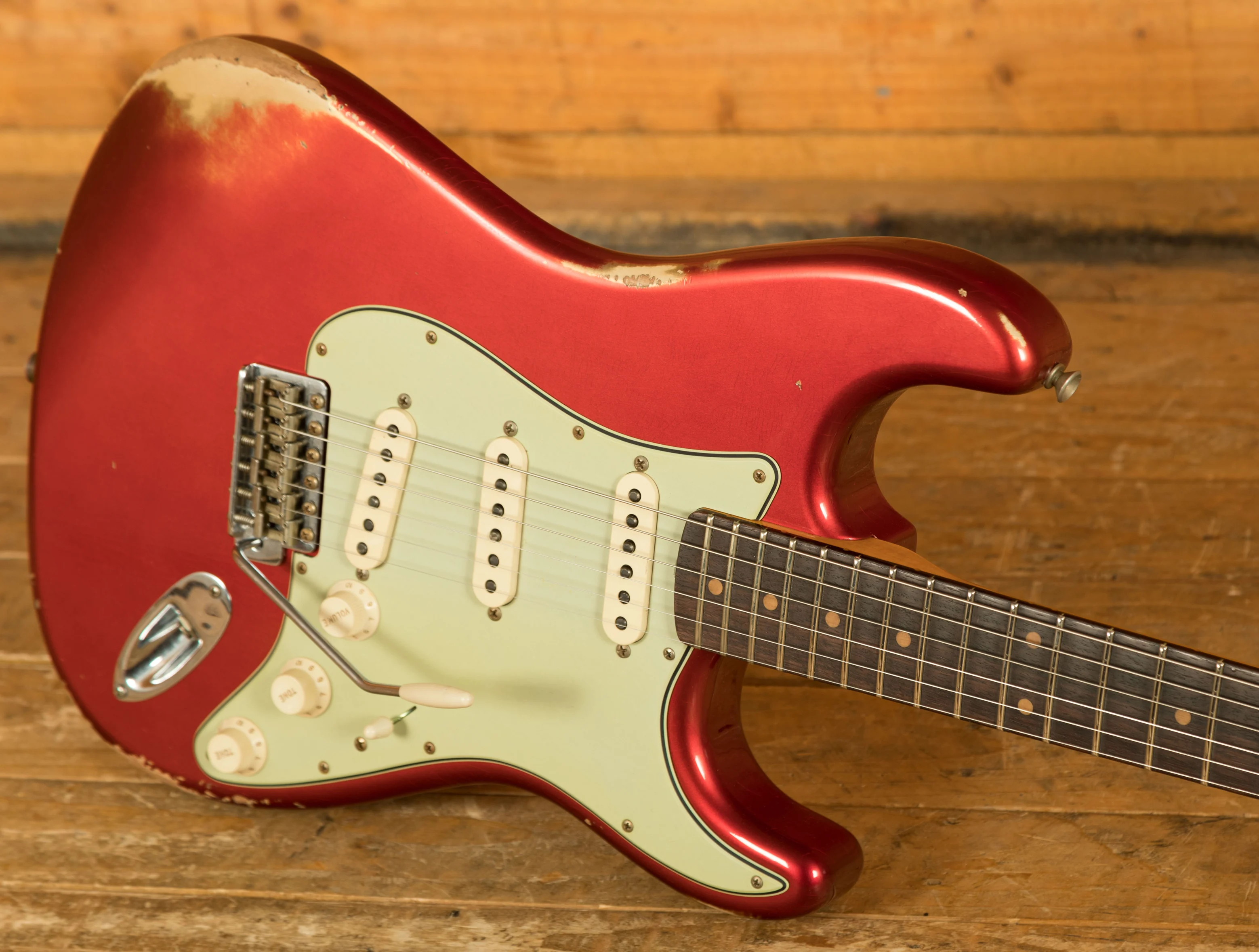 An Alder body is finished in a super cool Candy Apple Red/Desert Sand, one of Fender's most iconic finishes, it's a real beauty! Authentically aged, this finish will wear beautifully with time and develop its own character even further. The thin nitro finish also allows the natural resonance of the body to sing and sustain much more effectively and with the relicing you also get that road-worn, look without any actual damage to the guitar.