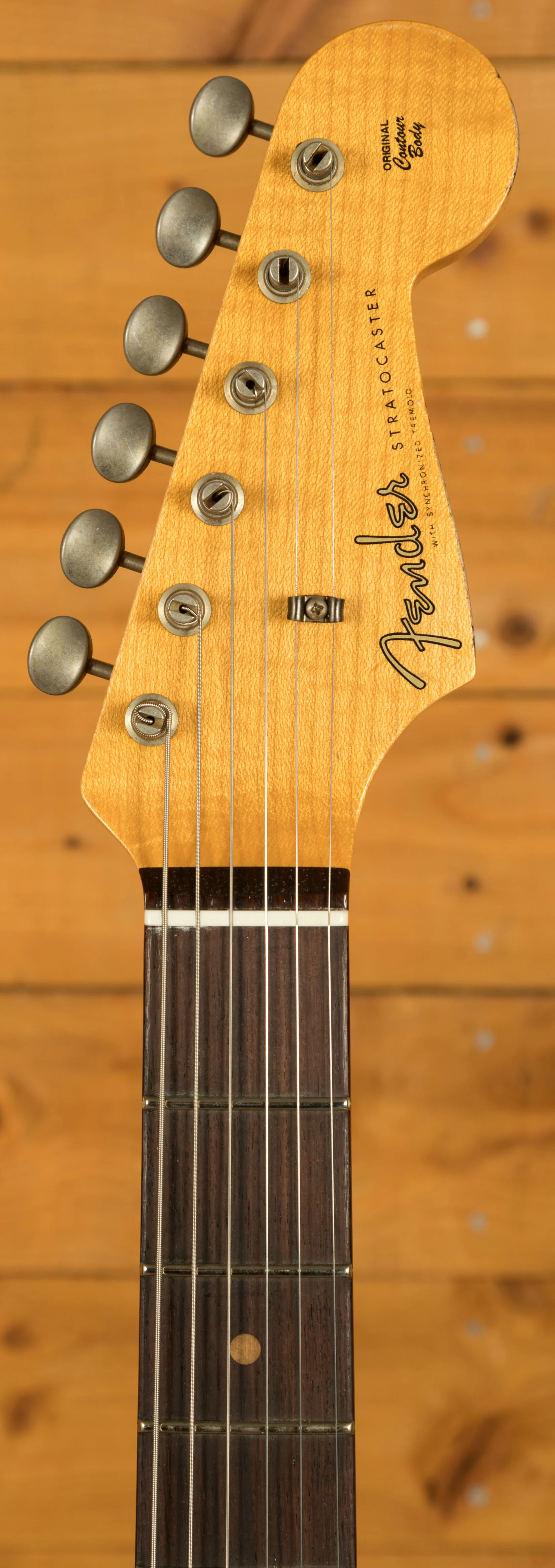 The medium tint riftsawn Maple neck has a smooth nitro finished back and an AAA grade sort-for-dark Rosewood fingerboard. With a 9.5" fingerboard radius and 21 6100 jumbo frets, the '59 Custom Shop Stratocaster can handle anything you throw at it without even breaking a sweat; it's supremely comfortable and well balanced. The 60 Style Oval "C" neck profile is a joy to play and offers a great platform for both rhythm and lead playing - measuring .790" at the 1st fret and .930" at the 12th. With the inclusion of a custom shop vintage Strat bridge and vintage tuners you have brilliant tuning stability and intonation.