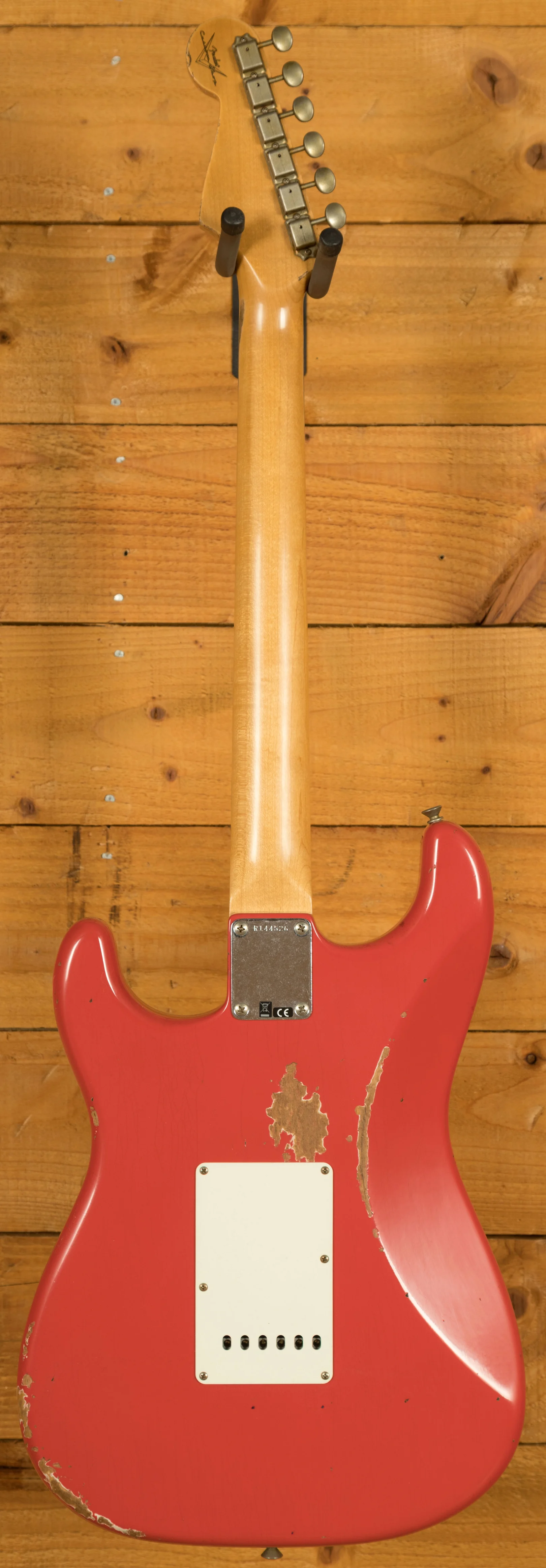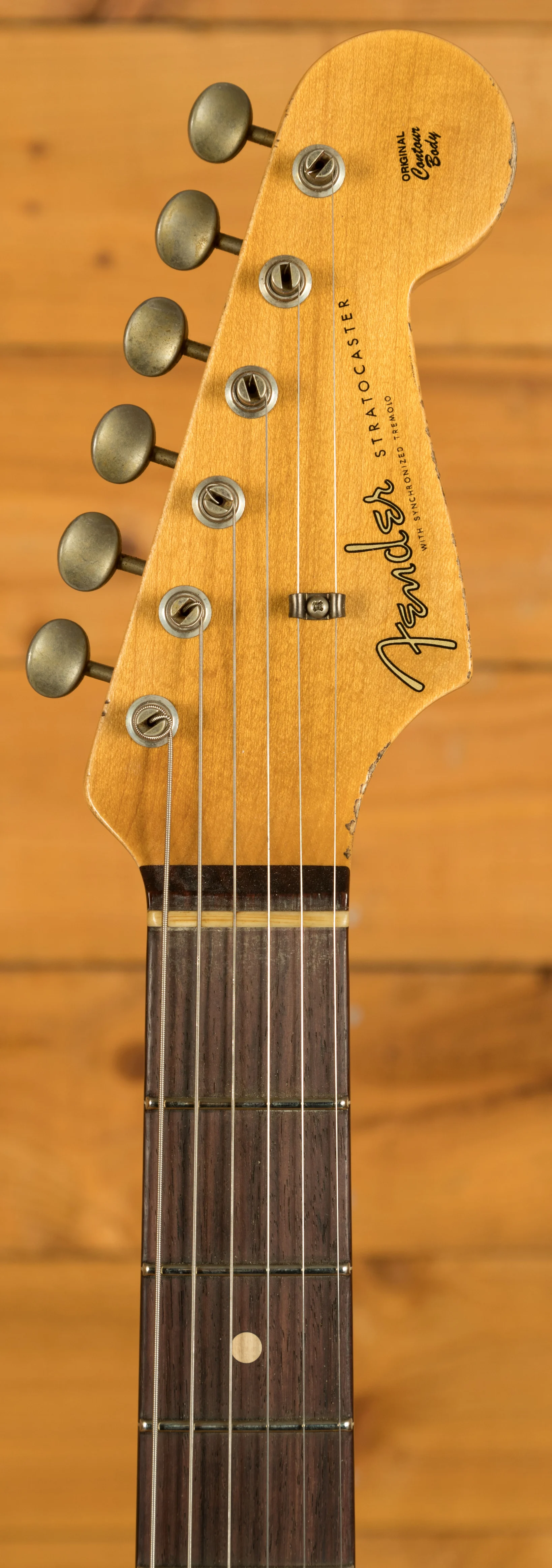 The medium tint rift sawn Maple neck has a smooth nitro finished back and an AAA grade sort-for-dark Rosewood fingerboard. With a 9.5" fingerboard radius and 21 6100 jumbo frets, the '59 Custom Shop Stratocaster can handle anything you throw at it without even breaking a sweat; it's supremely comfortable and well balanced. The 60 Style Oval "C" neck profile is a joy to play and offers a great platform for both rhythm and lead playing - measuring .790" at the 1st fret and .930" at the 12th. With the inclusion of a custom shop vintage Strat bridge and vintage tuners you have brilliant tuning stability and intonation.