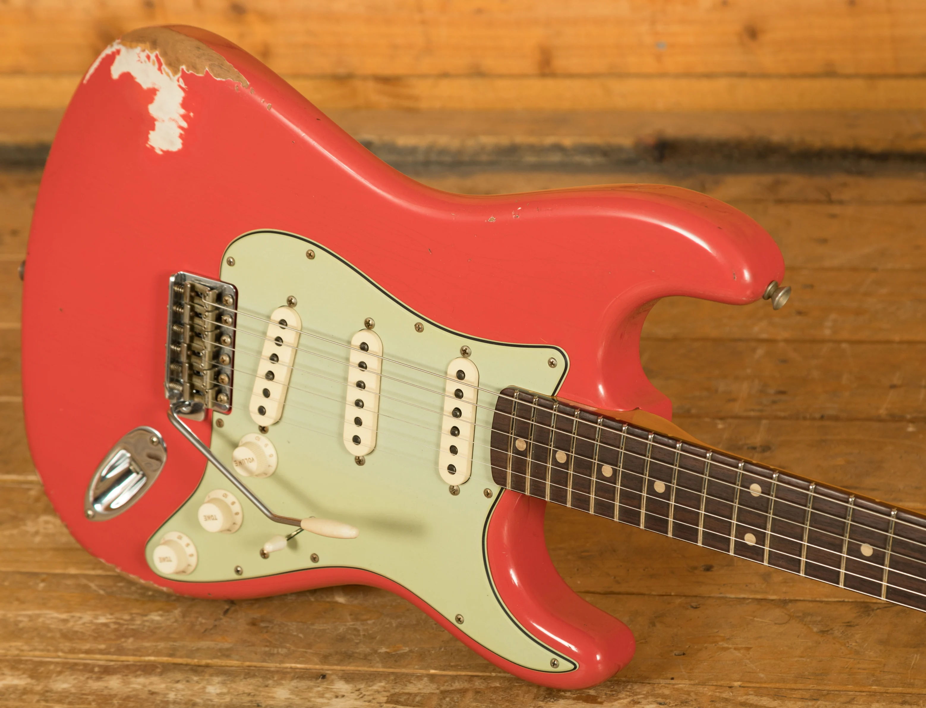 The electronics are a highlight of this instrument. It is equipped with three hand-wound Fat '60s single-coils. These pickups deliver a rich and dynamic tonal range, offering a strong bass response, clear and articulate highs, and a vintage-correct voice that responds sensitively to playing dynamics. This makes the guitar equally capable of handling subtle, expressive passages as well as more powerful, driven tones.
