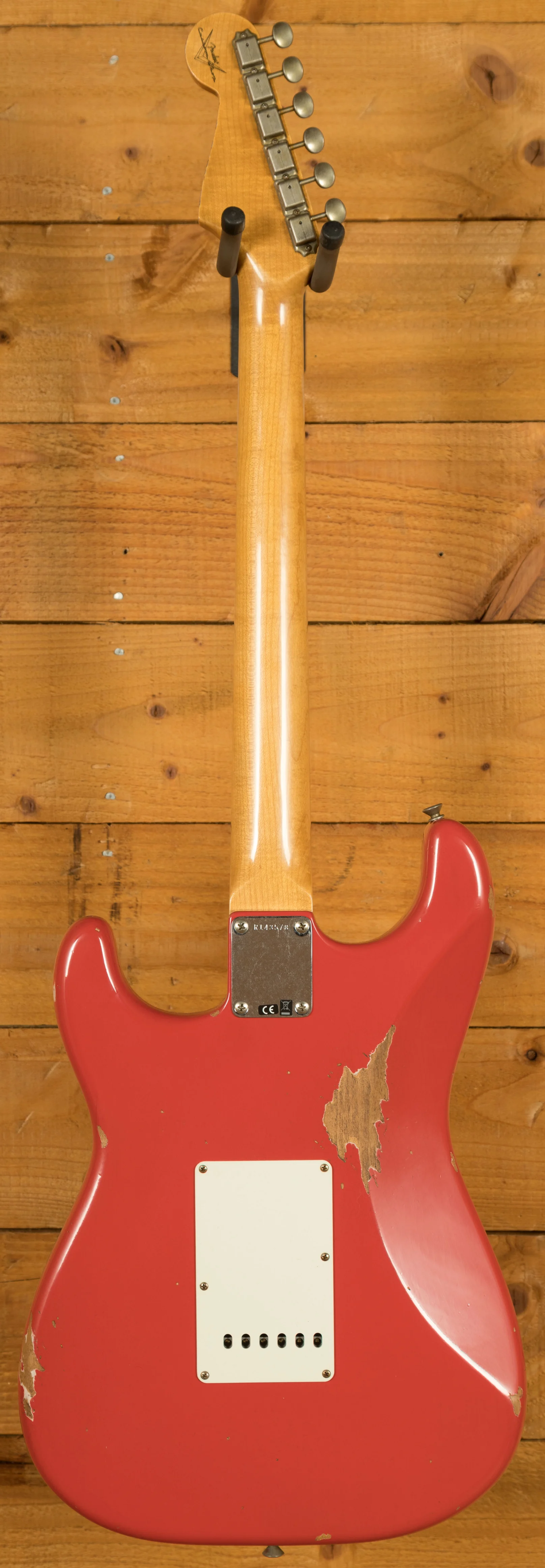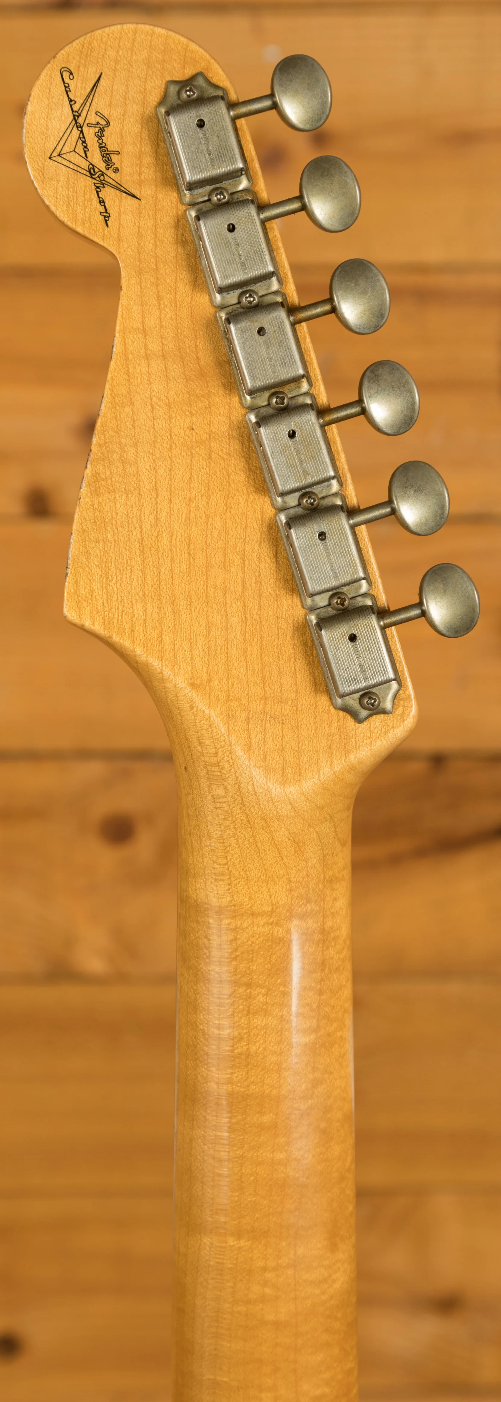 The medium tint riftsawn Maple neck has a smooth nitro finished back and an AAA grade sort-for-dark Rosewood fingerboard. With a 9.5" fingerboard radius and 21 6100 jumbo frets, the '59 Custom Shop Stratocaster can handle anything you throw at it without even breaking a sweat; it's supremely comfortable and well balanced. The 60 Style Oval "C" neck profile is a joy to play and offers a great platform for both rhythm and lead playing - measuring .790" at the 1st fret and .930" at the 12th. With the inclusion of a custom shop vintage Strat bridge and vintage tuners you have brilliant tuning stability and intonation.