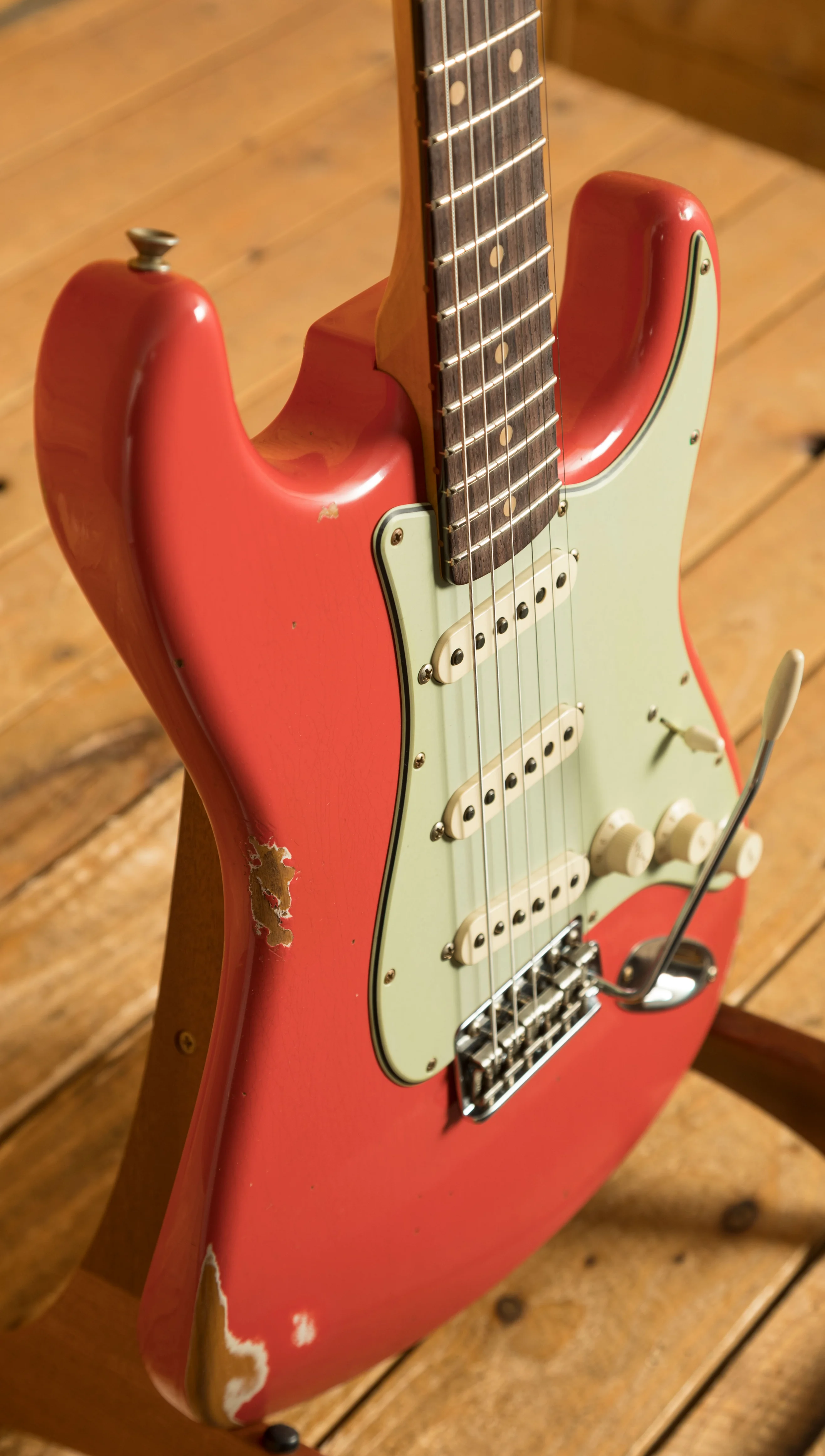 The electronics are a highlight of this instrument. It is equipped with three hand-wound Fat '60s single-coil pickups made by Josefina Campos, Fender's current Master Pickup Winder. Having trained under Abigail Ybarra, Campos has carried forward the legacy of Fender's original pickup designs, handcrafting each coil with meticulous care. These pickups deliver a rich and dynamic tonal range, offering a strong bass response, clear and articulate highs, and a vintage-correct voice that responds sensitively to playing dynamics. This makes the guitar equally capable of handling subtle, expressive passages as well as more powerful, driven tones.