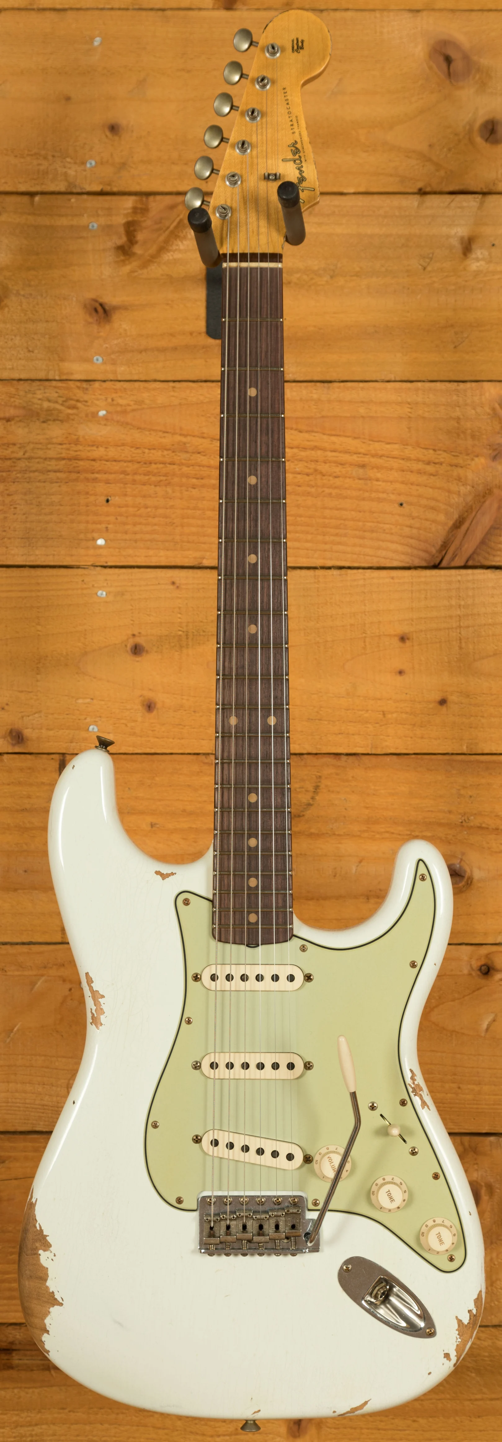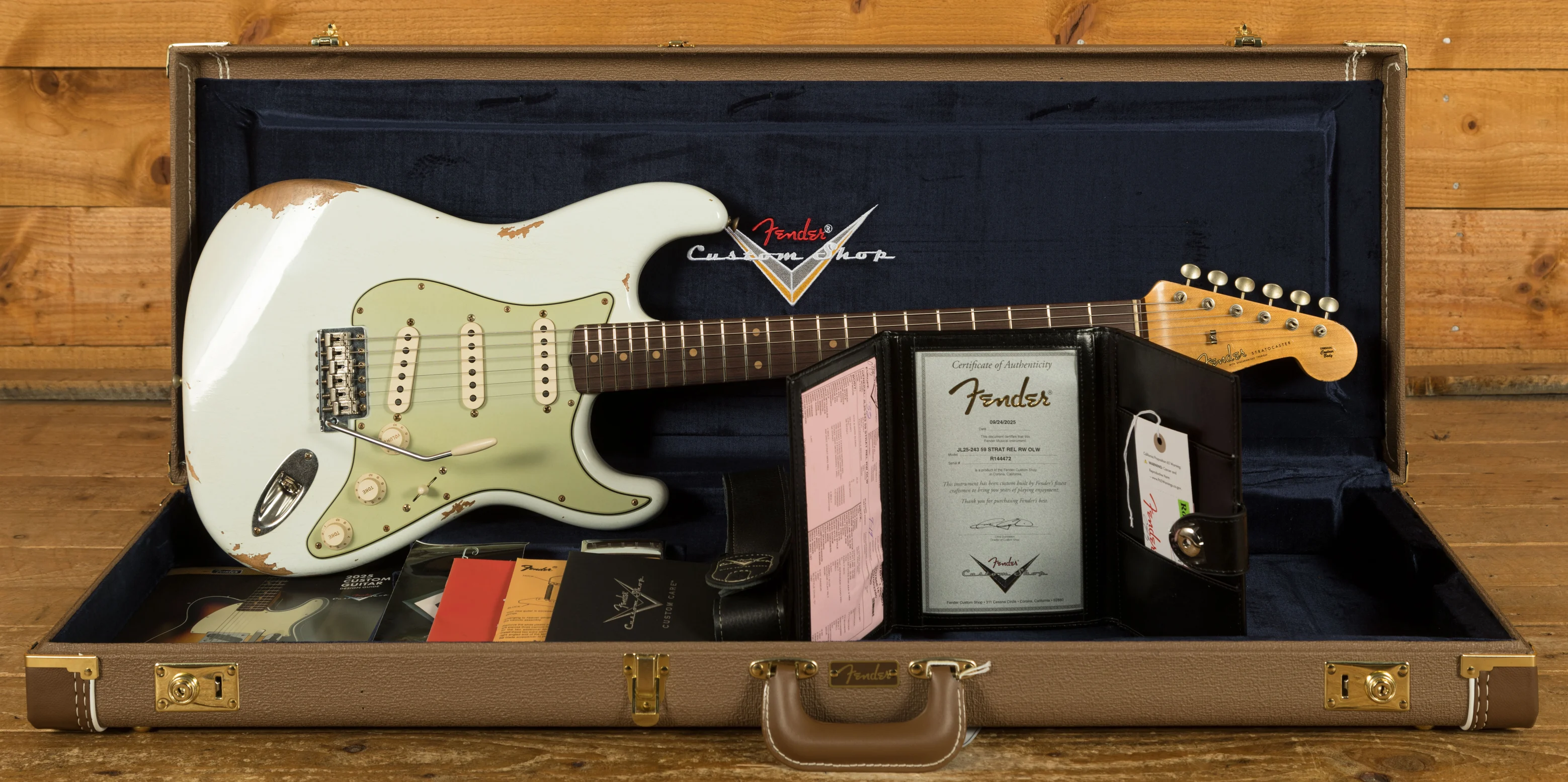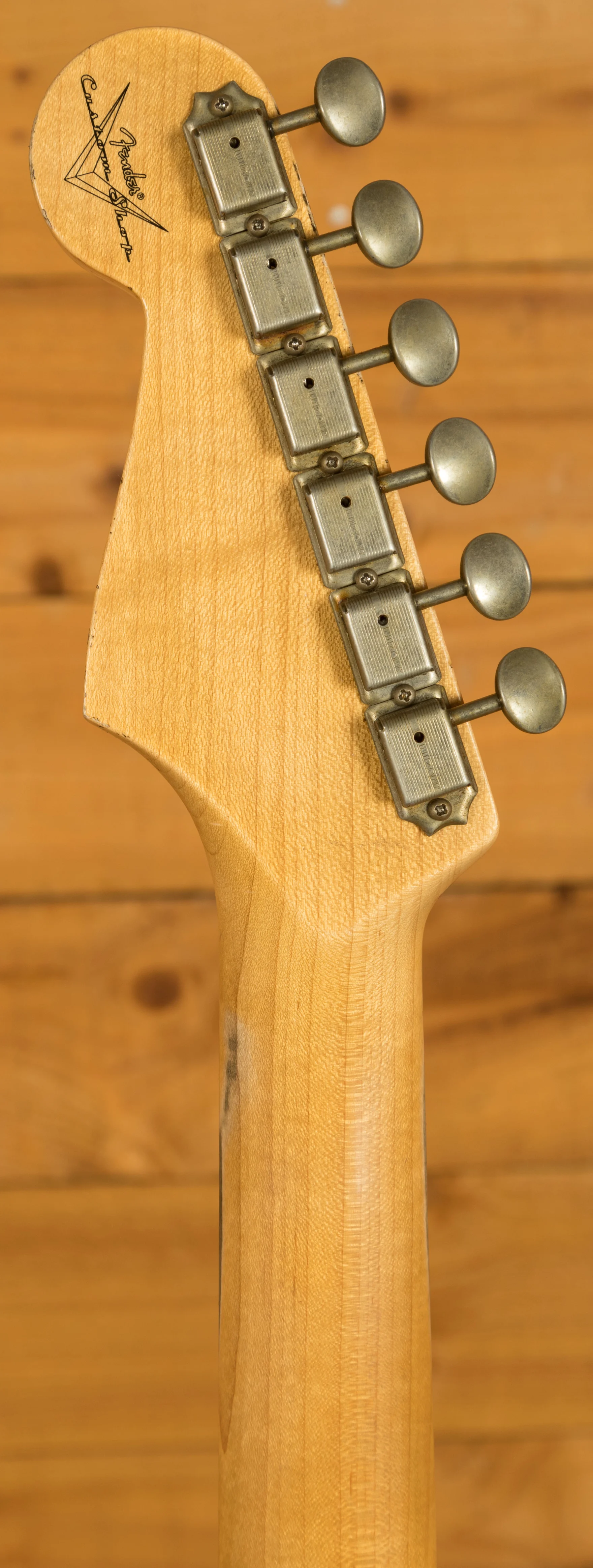 The medium tint riftsawn Maple neck has a smooth nitro finished back and an AAA grade sort-for-dark Rosewood fingerboard. With a 9.5" fingerboard radius and 21 6100 jumbo frets, the '59 Custom Shop Stratocaster can handle anything you throw at it without even breaking a sweat; it's supremely comfortable and well balanced. The 60 Style Oval "C" neck profile is a joy to play and offers a great platform for both rhythm and lead playing - measuring .790" at the 1st fret and .930" at the 12th. With the inclusion of a custom shop vintage Strat bridge and vintage tuners you have brilliant tuning stability and intonation.
