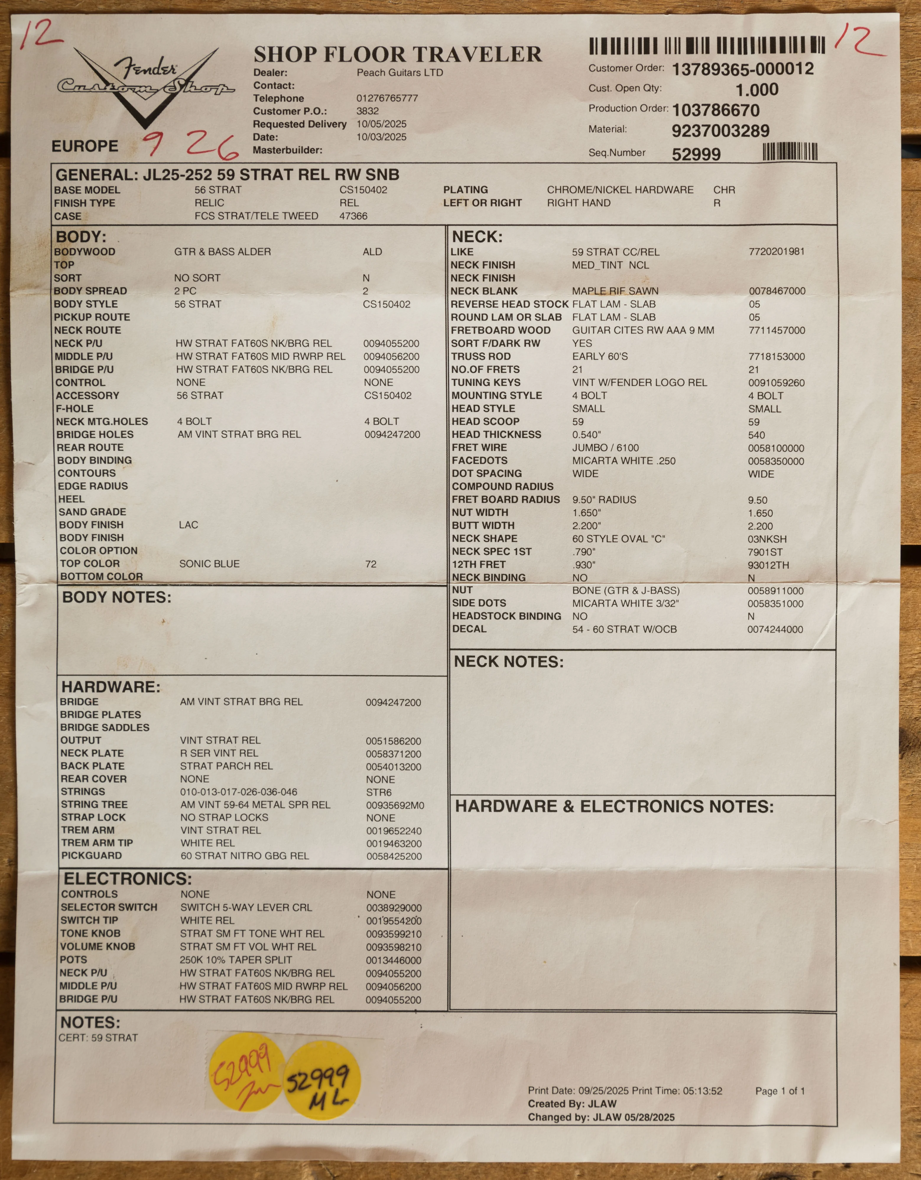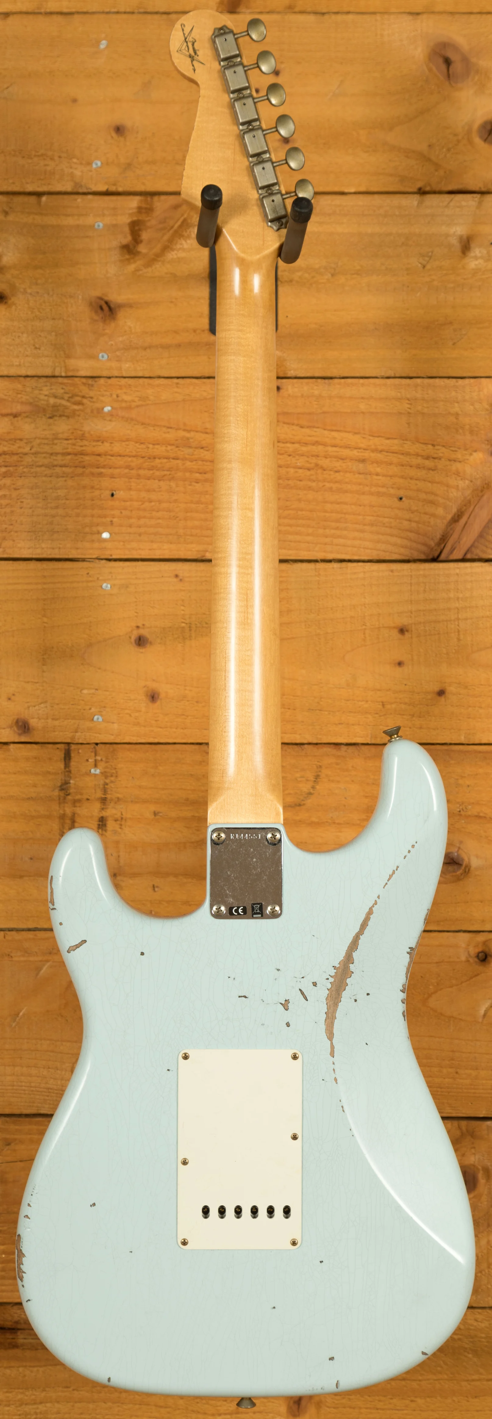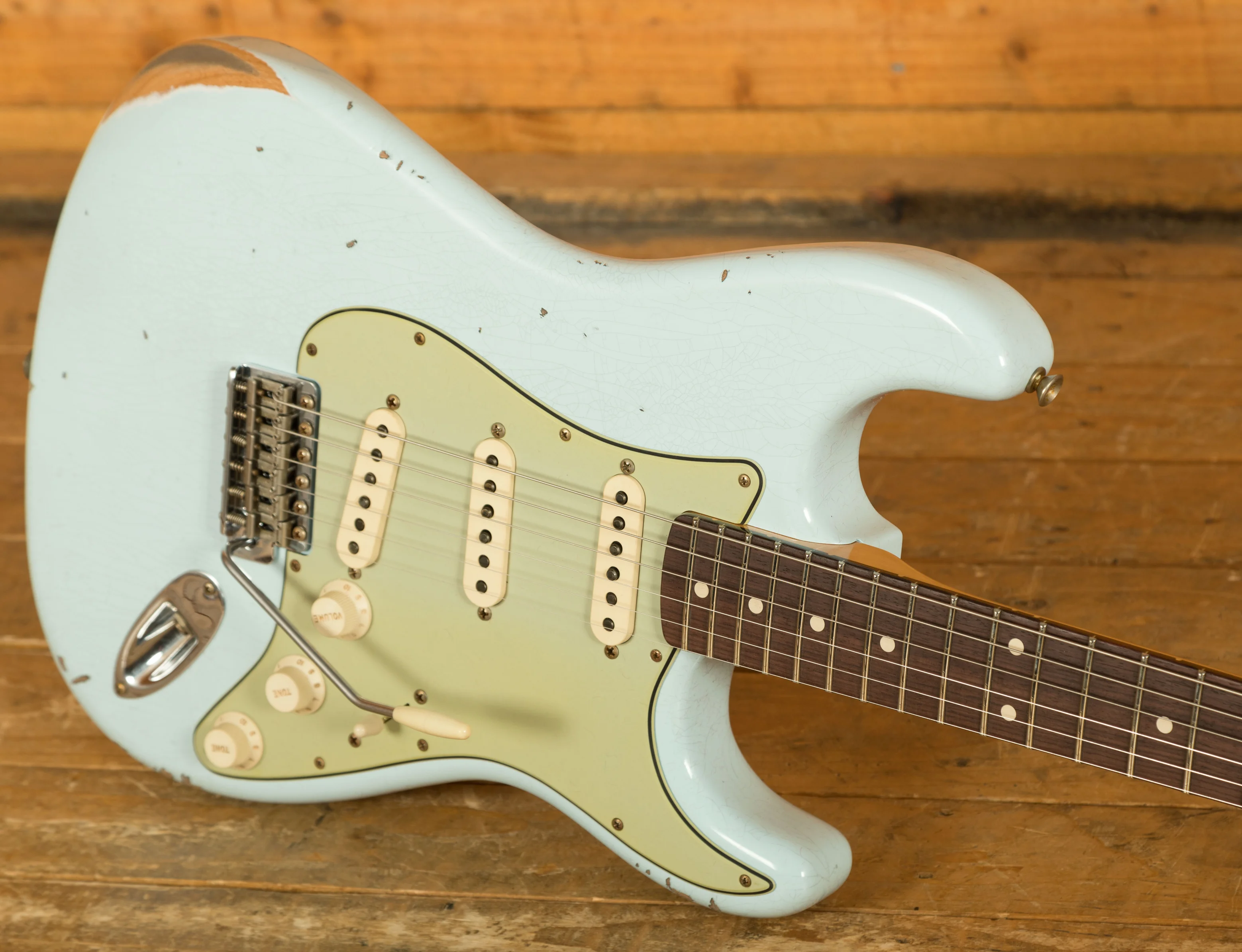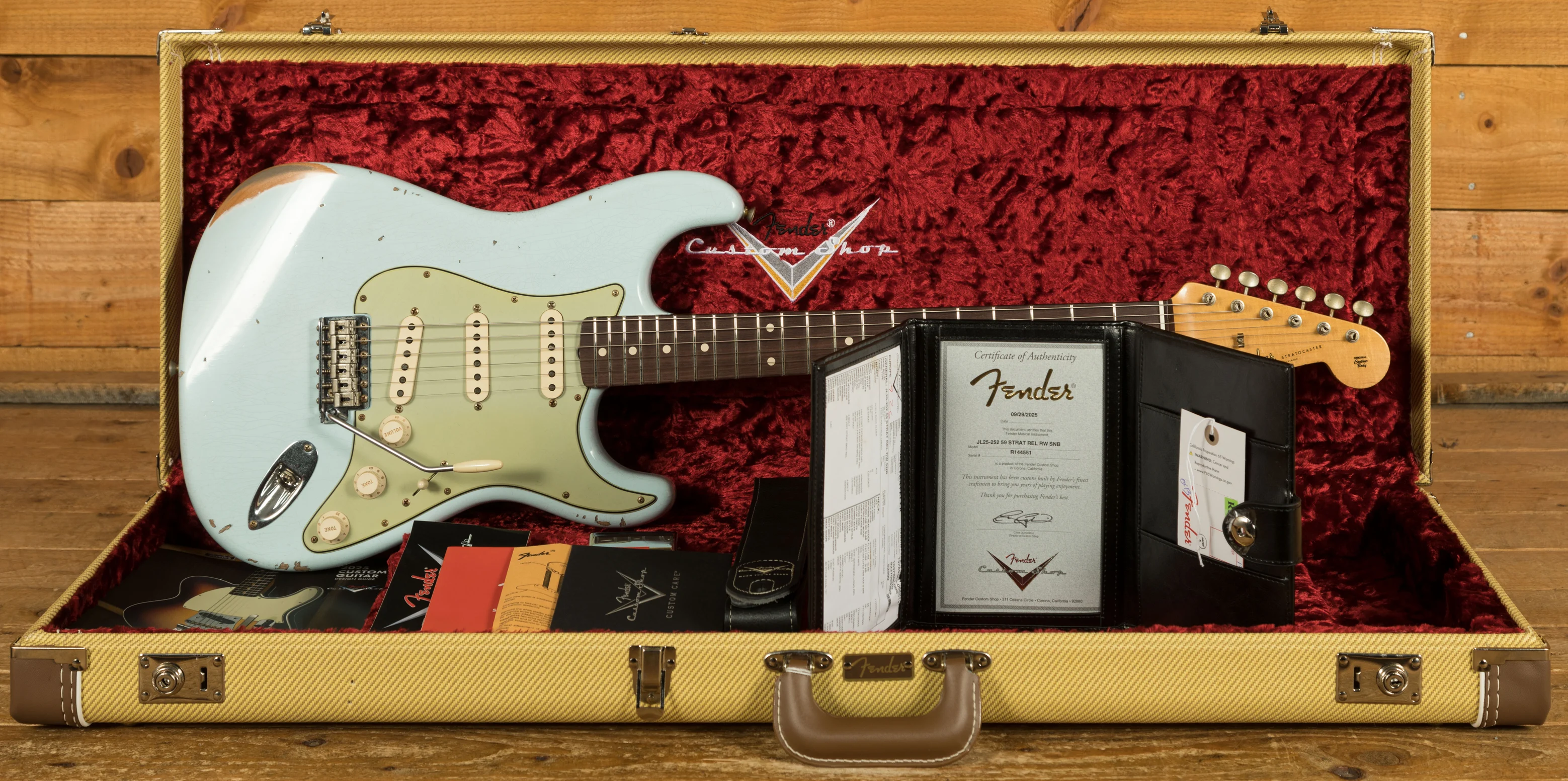 The medium tint riftsawn Maple neck has a smooth nitro finished back and an AAA grade sort-for-dark Rosewood fingerboard. With a 9.5" fingerboard radius and 21 6100 jumbo frets, the '59 Custom Shop Stratocaster can handle anything you throw at it without even breaking a sweat; it's supremely comfortable and well balanced. The 60 Style Oval "C" neck profile is a joy to play and offers a great platform for both rhythm and lead playing - measuring .790" at the 1st fret and .930" at the 12th. With the inclusion of a custom shop vintage Strat bridge and vintage tuners you have brilliant tuning stability and intonation.