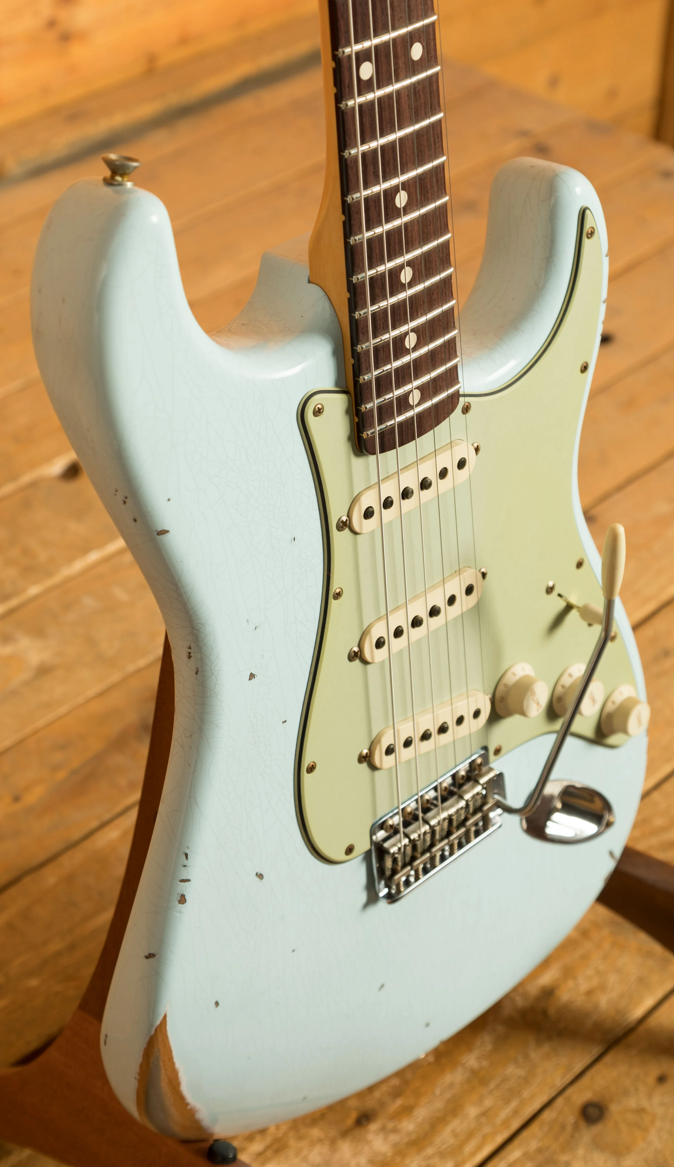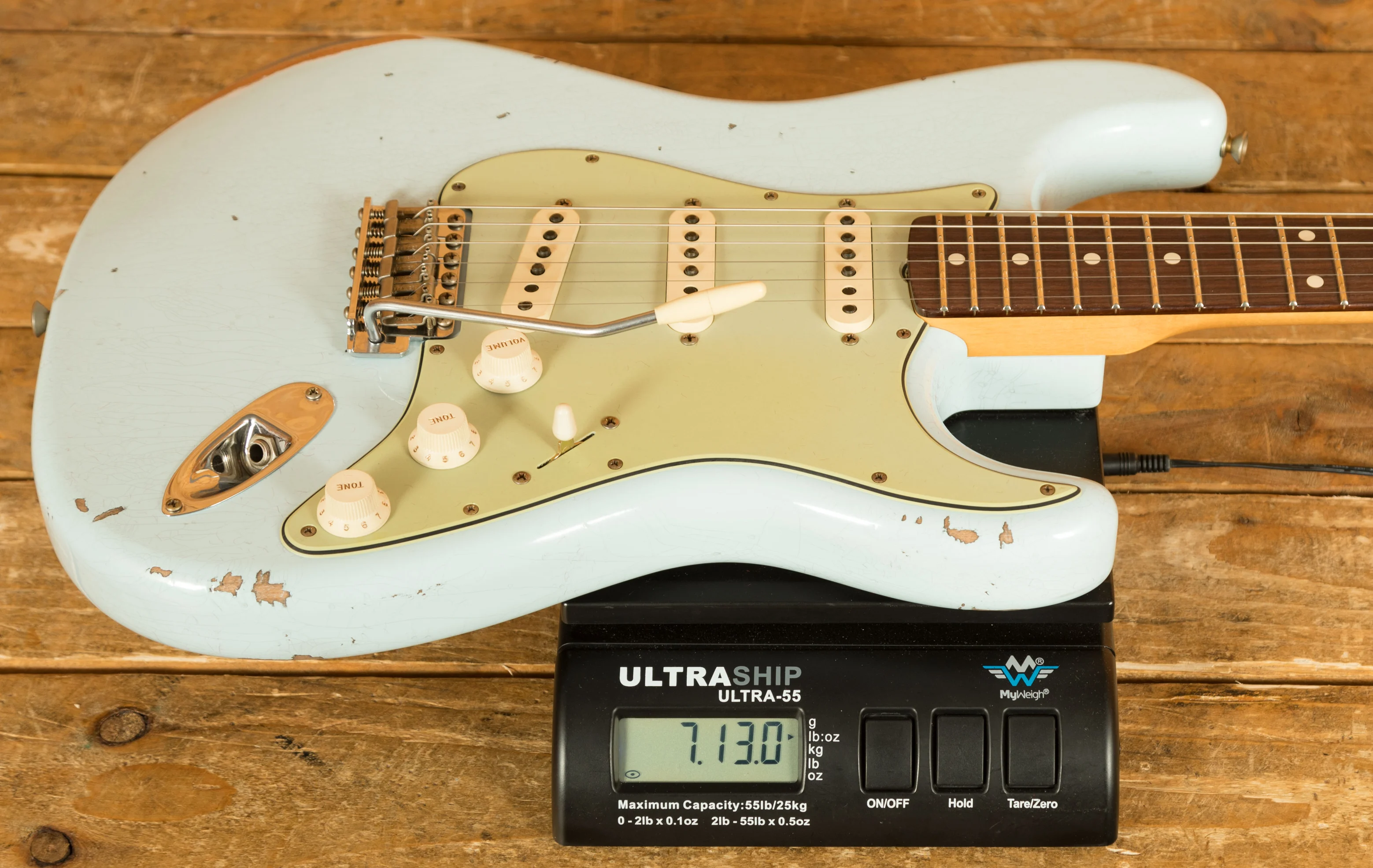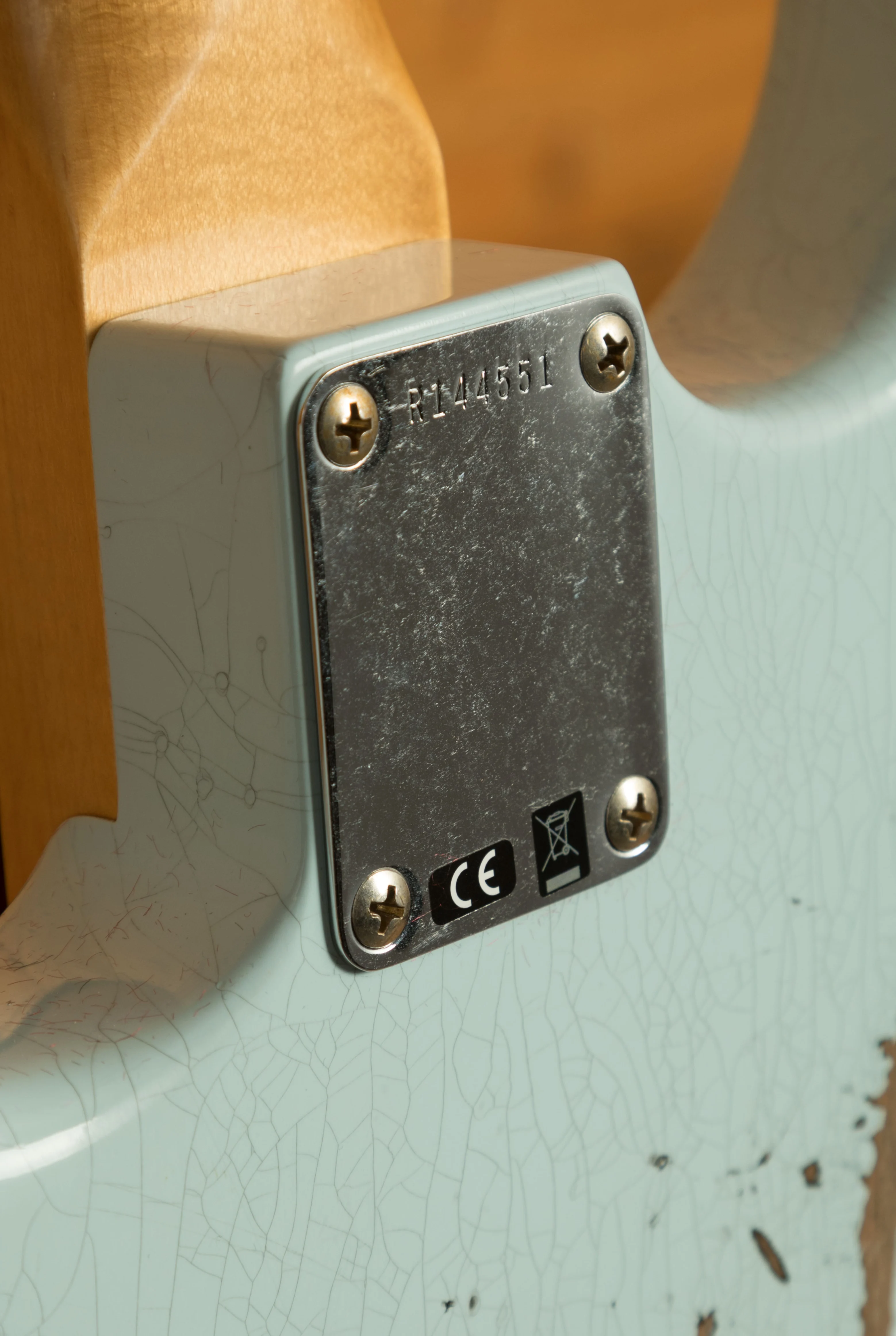An Alder body is finished in a super cool Sonic Blue, one of Fender's most iconic finishes, it's a real beauty! Authentically aged, this finish will wear beautifully with time and develop its own character even further. The thin nitro finish also allows the natural resonance of the body to sing and sustain much more effectively and with the relicing you also get that road-worn, look without any actual damage to the guitar.