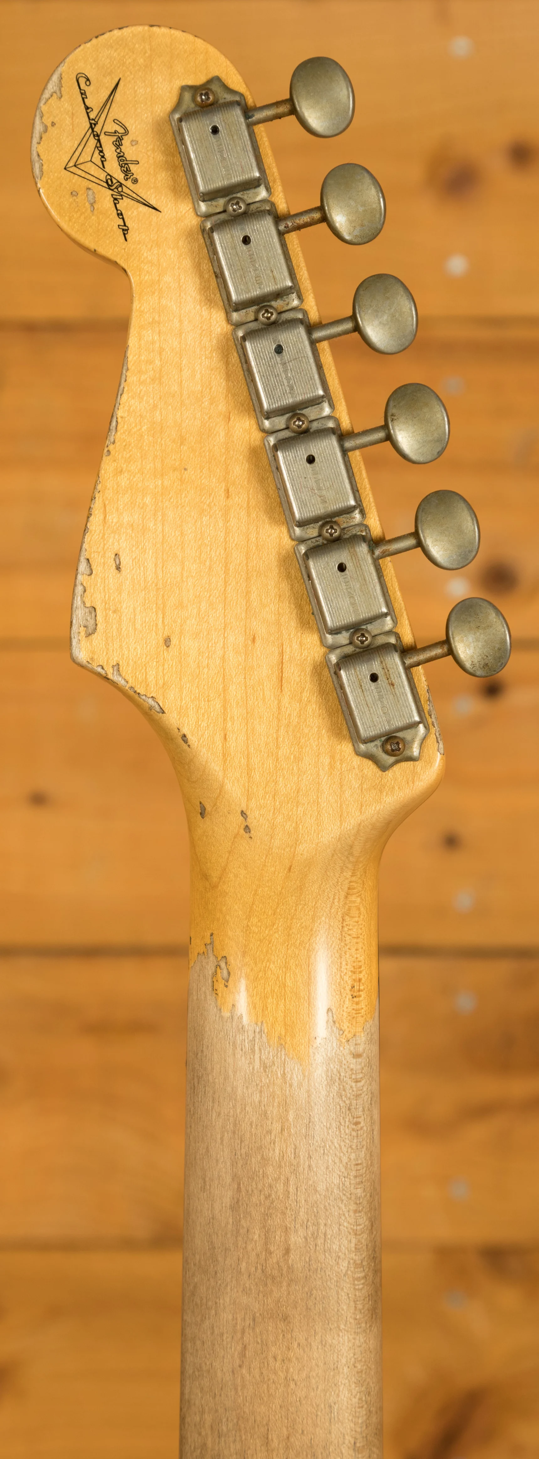 The medium tint riftsawn Maple neck has a smooth nitro finished back and an AAA grade sort-for-dark Rosewood fingerboard. With a 9.5" fingerboard radius and 21 6100 jumbo frets, the '59 Custom Shop Stratocaster can handle anything you throw at it without even breaking a sweat; it's supremely comfortable and well balanced. The 59 Esquire "C" neck profile is a joy to play and offers a great platform for both rhythm and lead playing - measuring .790" at the 1st fret and .970" at the 12th. With the inclusion of an American vintage Strat bridge and vintage tuners you have brilliant tuning stability and intonation.
