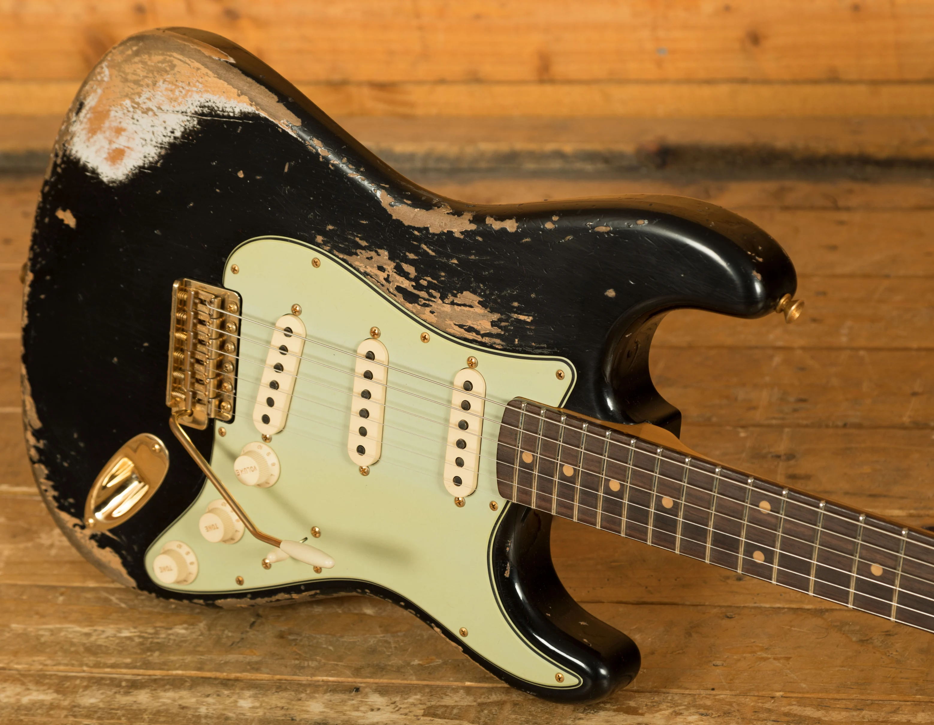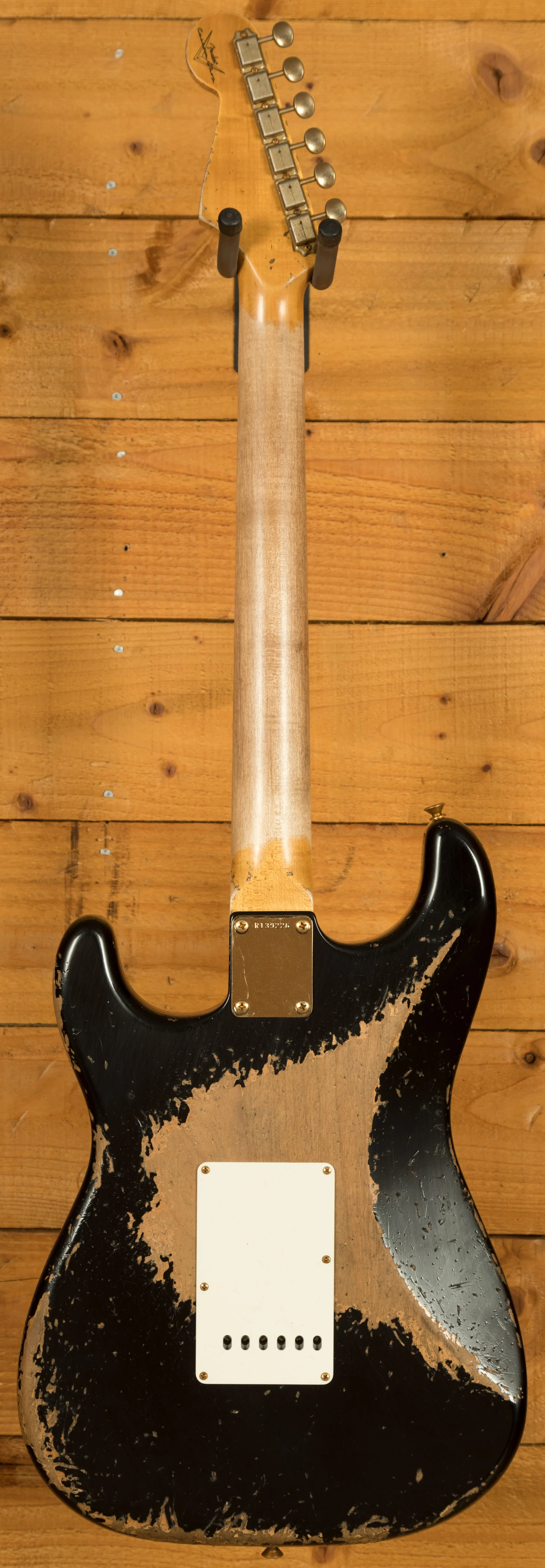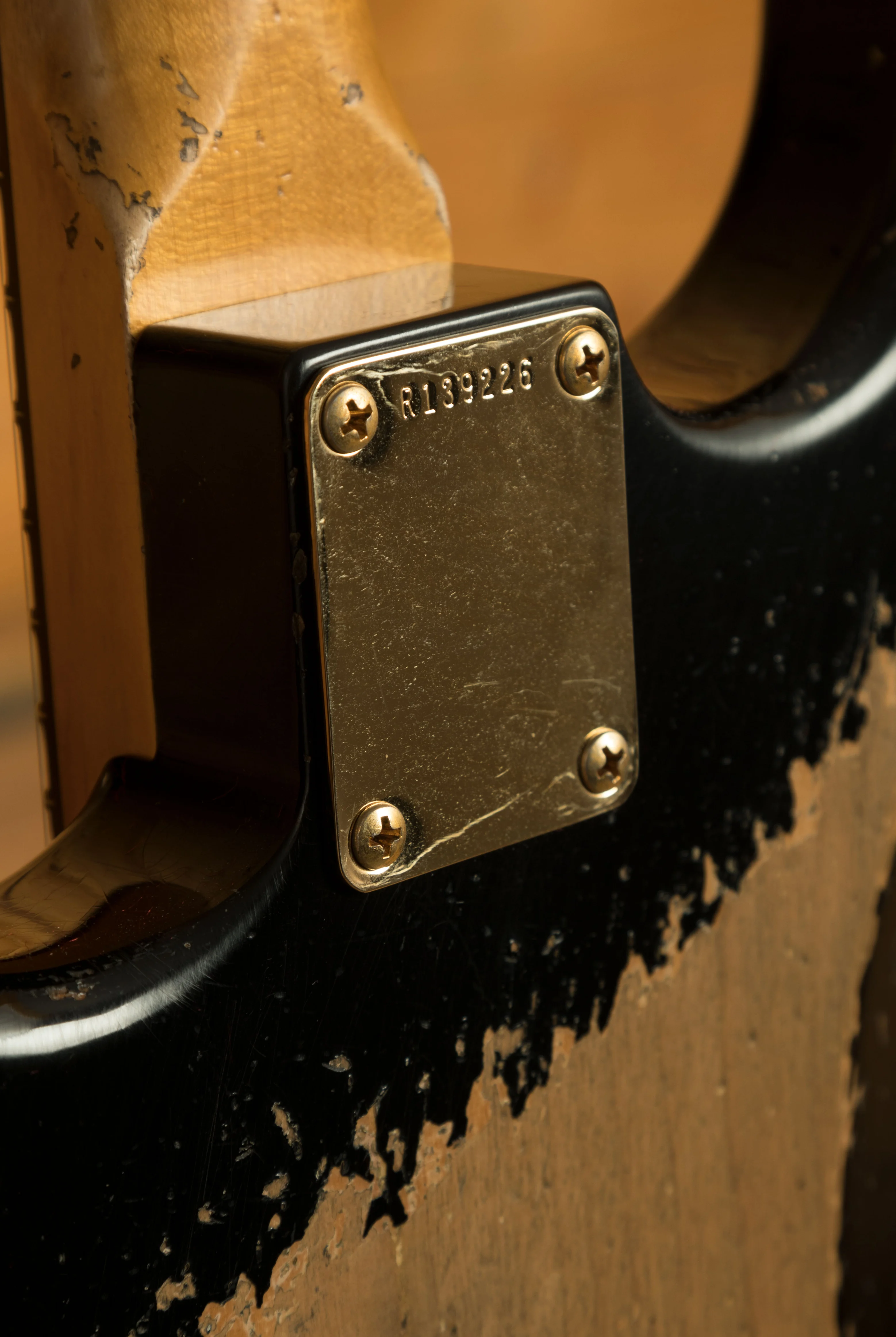 An Alder body is finished in a classic Black, one of Fender's timeless finishes, it's a real beauty! Authentically aged, this finish will wear beautifully with time and develop its own character even further. The thin nitro finish also allows the natural resonance of the body to sing and sustain much more effectively and with the super heavy relicing you also get that extreme road-worn, look without any actual damage to the guitar.