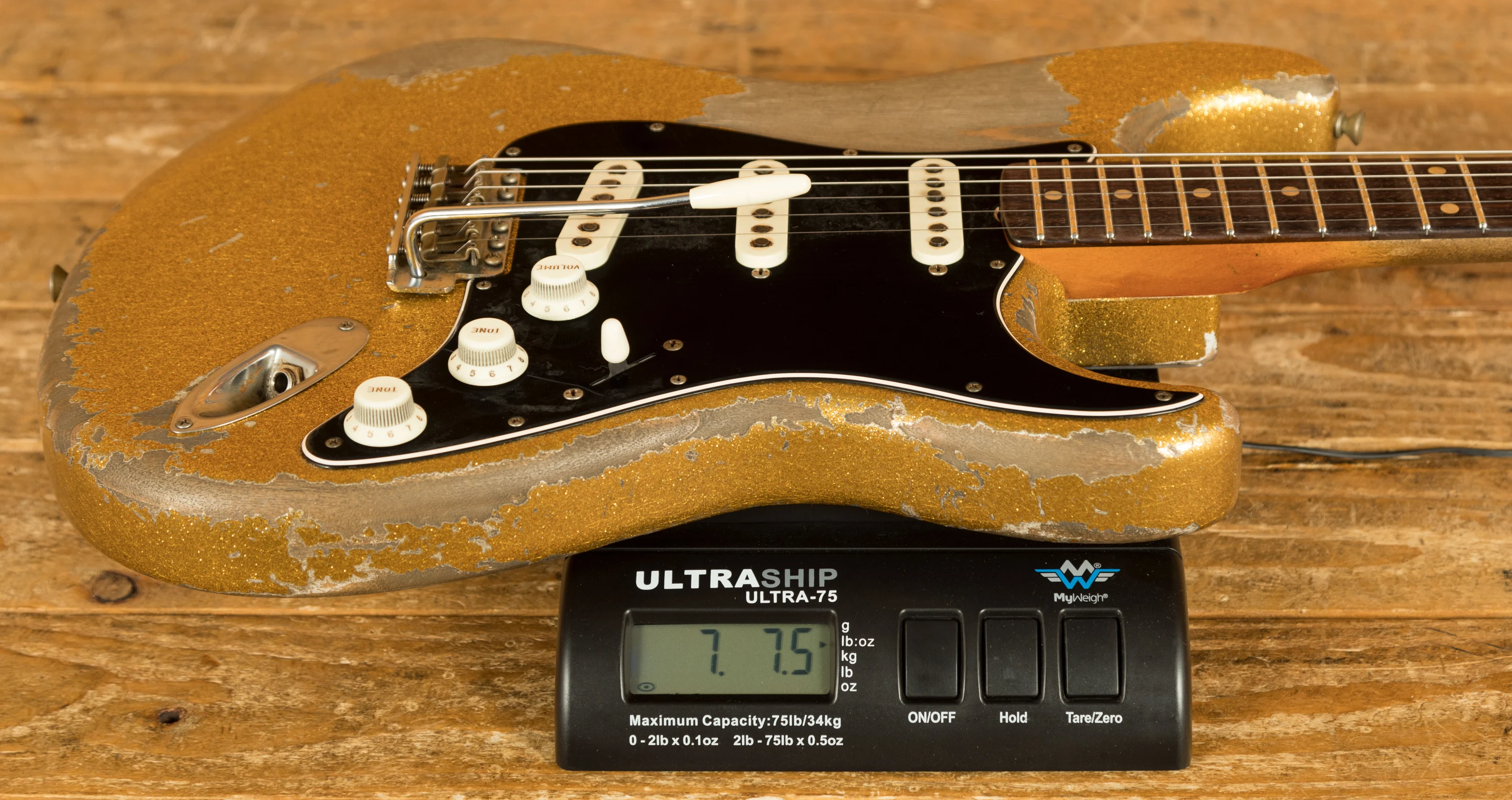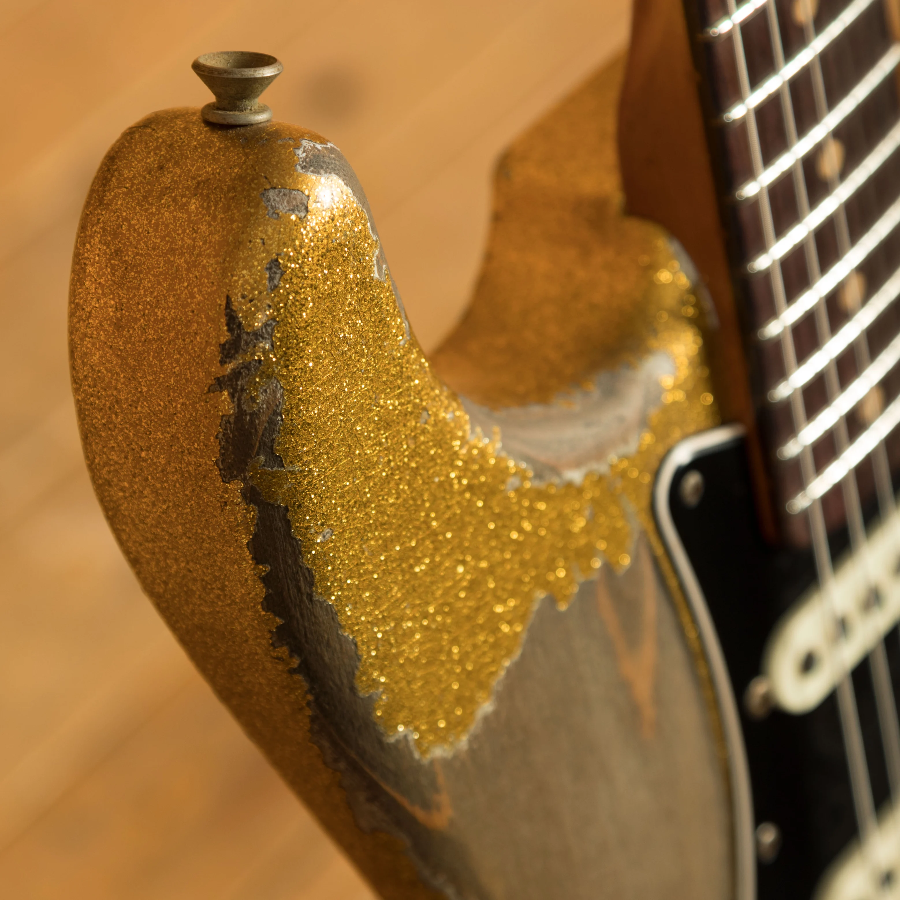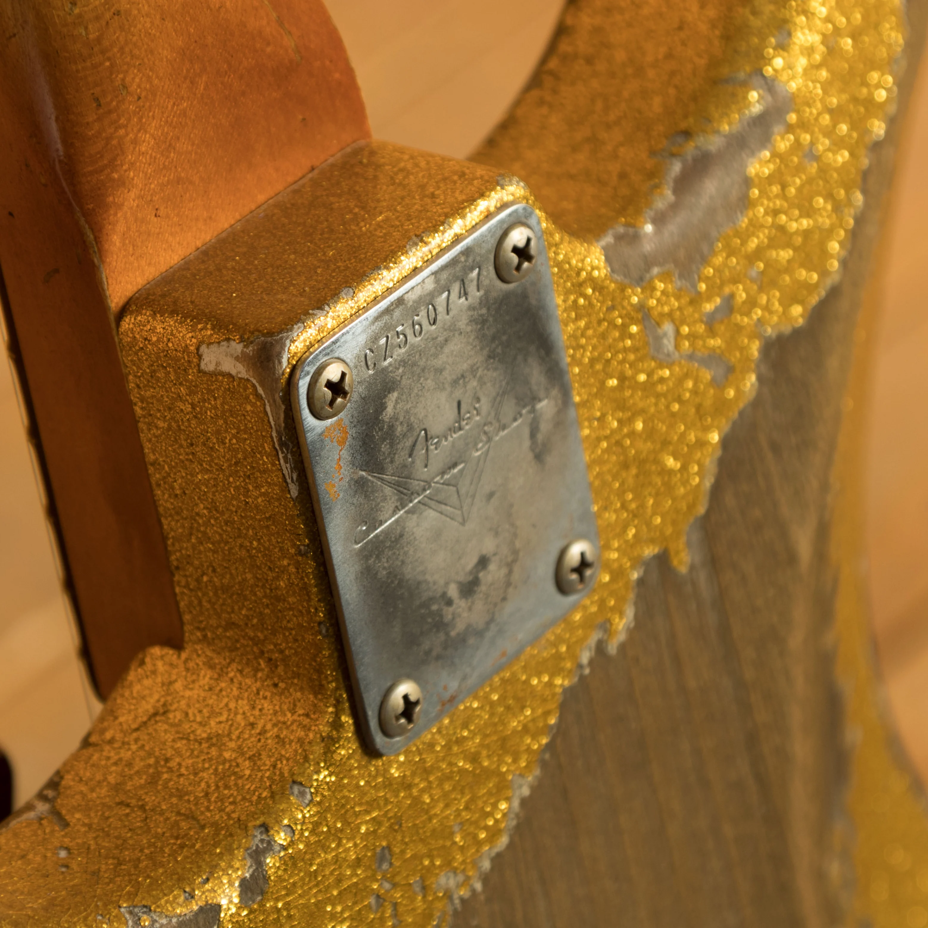 A sort for lightweight Alder body is finished in a Gold Sparkle Heavy Relic, it's a real beauty! Authentically aged, this finish will wear beautifully with time and develop its own character even further. The thin nitro finish also allows the natural resonance of the body to sing and sustain much more effectively. Dale is the King of relic work at the custom shop and this certainly doesn't disappoint though!