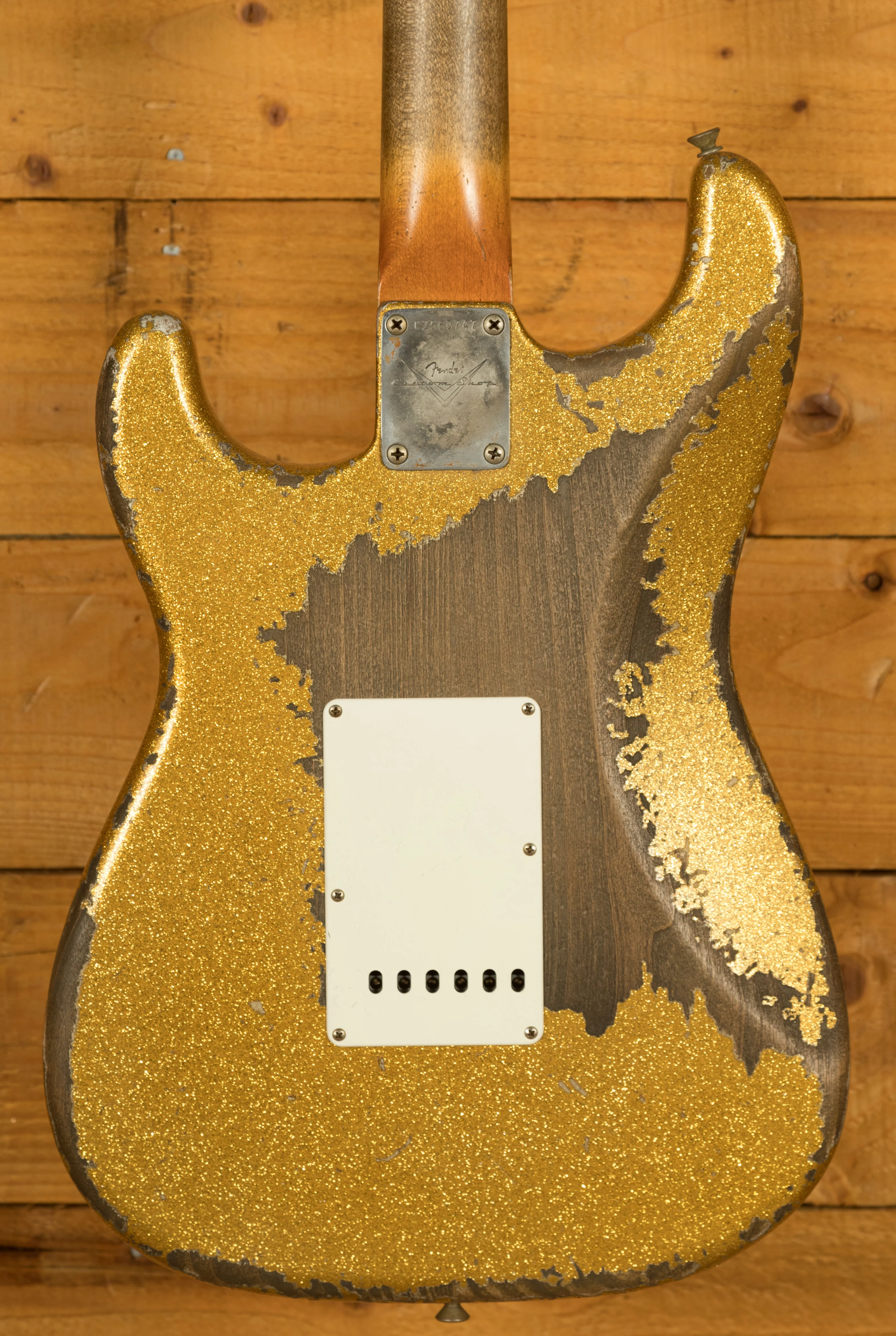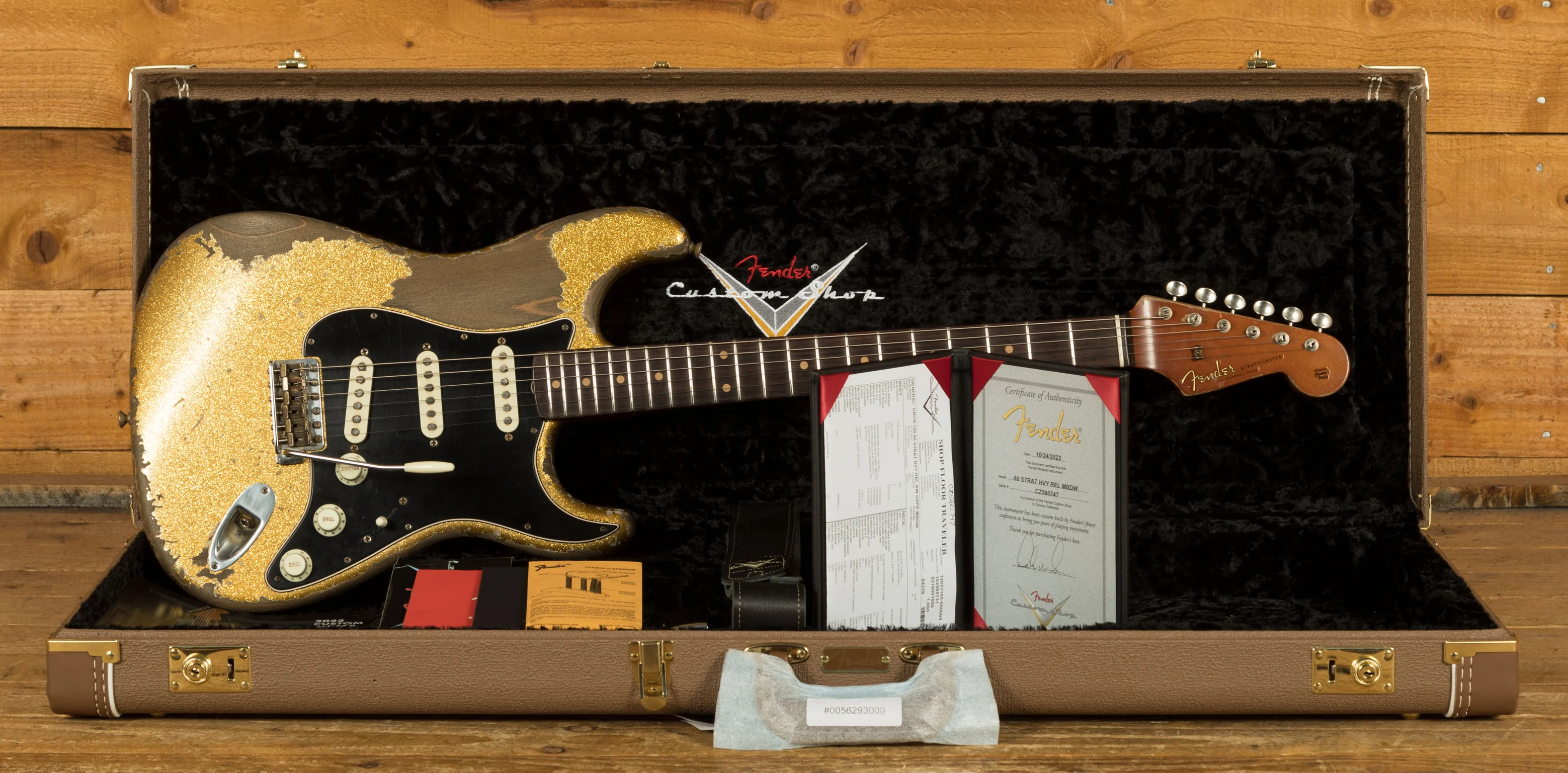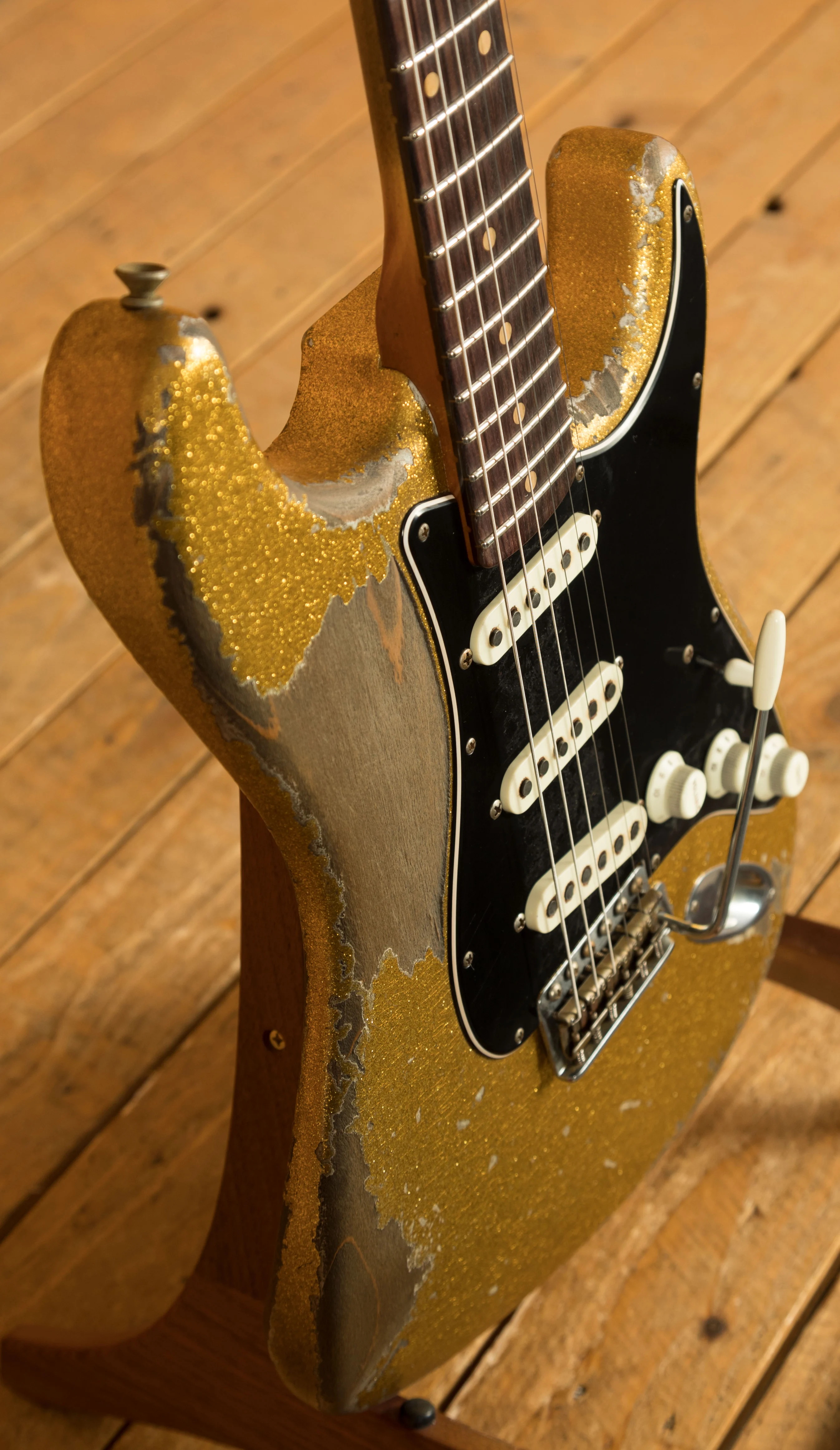 A sort for lightweight Alder body is finished in a Gold Sparkle Heavy Relic, it's a real beauty! Authentically aged, this finish will wear beautifully with time and develop its own character even further. The thin nitro finish also allows the natural resonance of the body to sing and sustain much more effectively. Dale is the King of relic work at the custom shop and this certainly doesn't disappoint though!