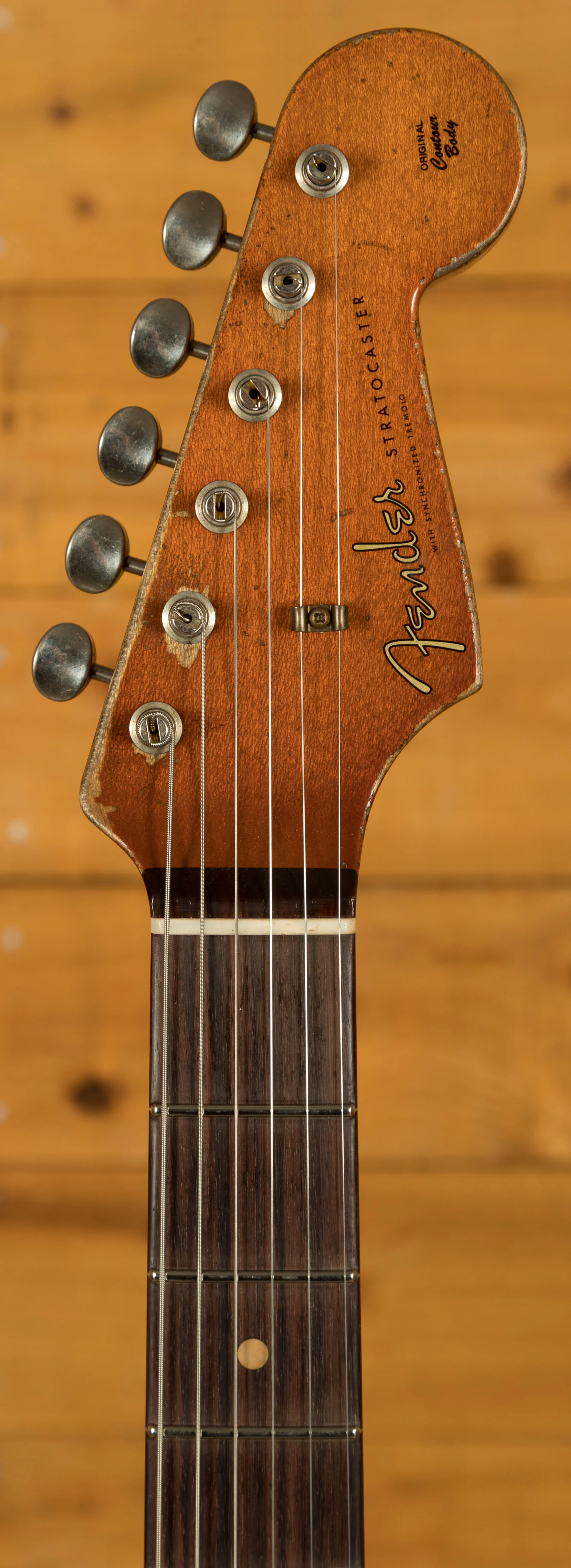 The Riff Sawn Maple neck has a worn in finish and a medium tint on the back. With a 9.5" radius and 21 Jumbo frets, the '60 Custom Shop Stratocaster can handle anything you throw at it without even breaking a sweat; it's supremely comfortable and well balanced. The 65 Strat “C” profile is a joy to play and offers a great platform for both rhythm and lead playing.