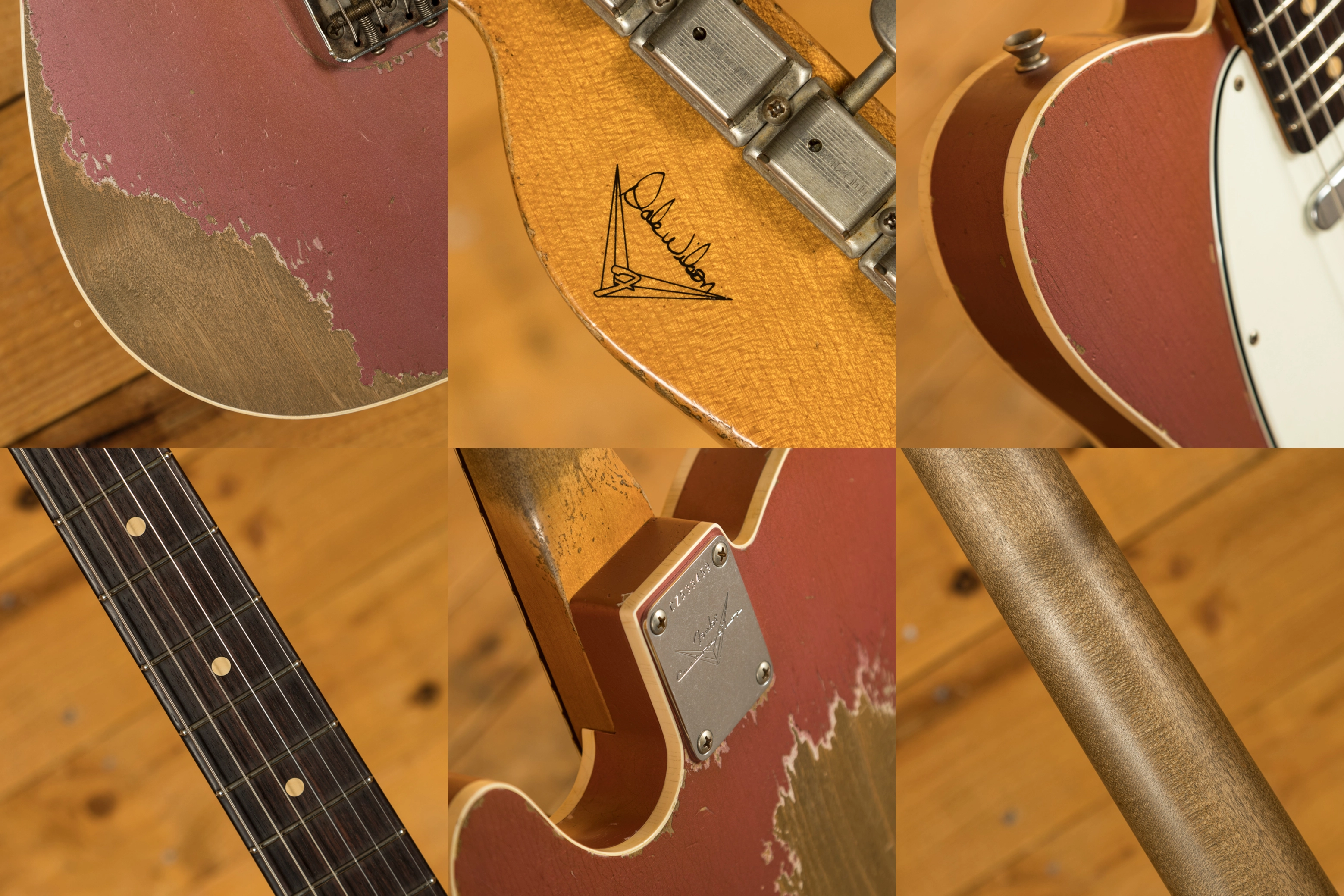 The Alder body is finished in a really authentically aged Burgundy Mist Metallic. This finish will wear beautifully with time and develop its own character even further, it also allows the natural resonance of the body to sing and sustain much more effectively. The wear patterns are incredible, so genuine and authentic, Dale Wilson is considered the King of relic work at the Custom Shop and its definitely on display here!