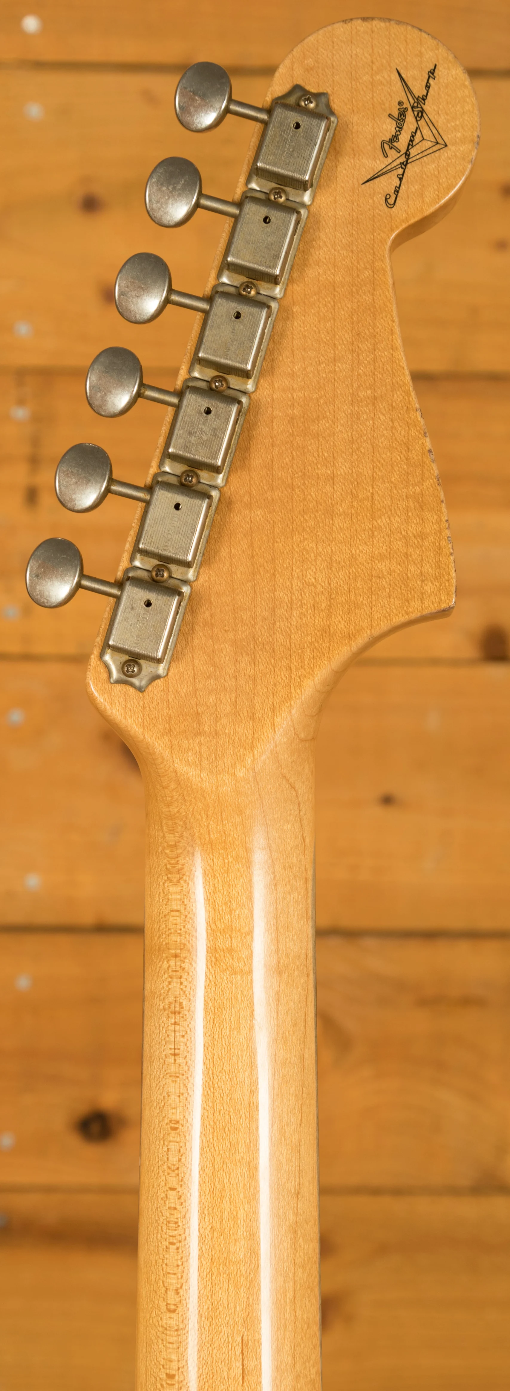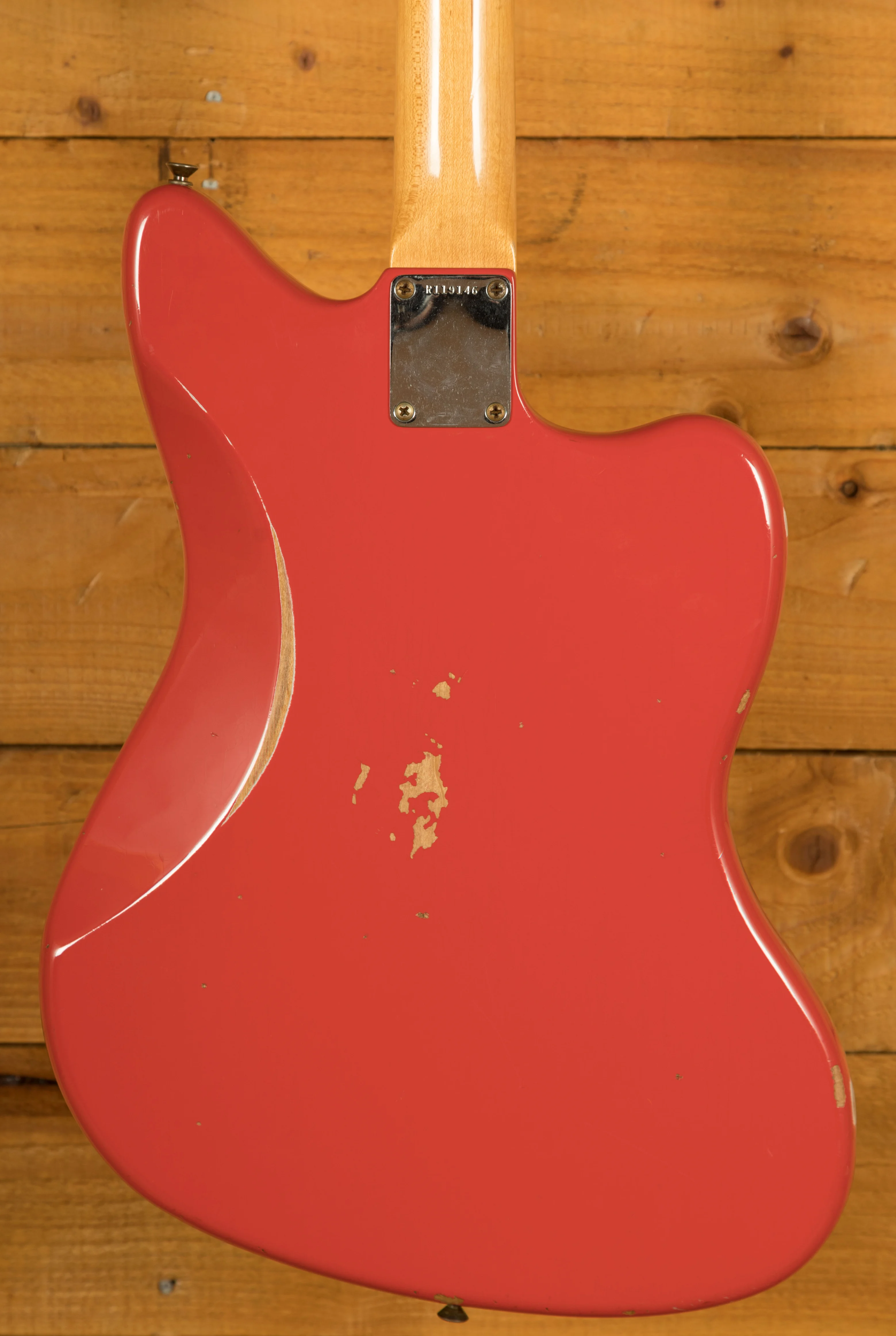 This guitar has some serious mojo! The 2-piece Alder body is finished in a relic Fiesta Red nitro lacquer, period correct. Authentically aged, this finish will wear beautifully with time and develop its own character even further. It also allows the natural resonance of the body to sing and sustain much more effectively compared with other more modern finishes.