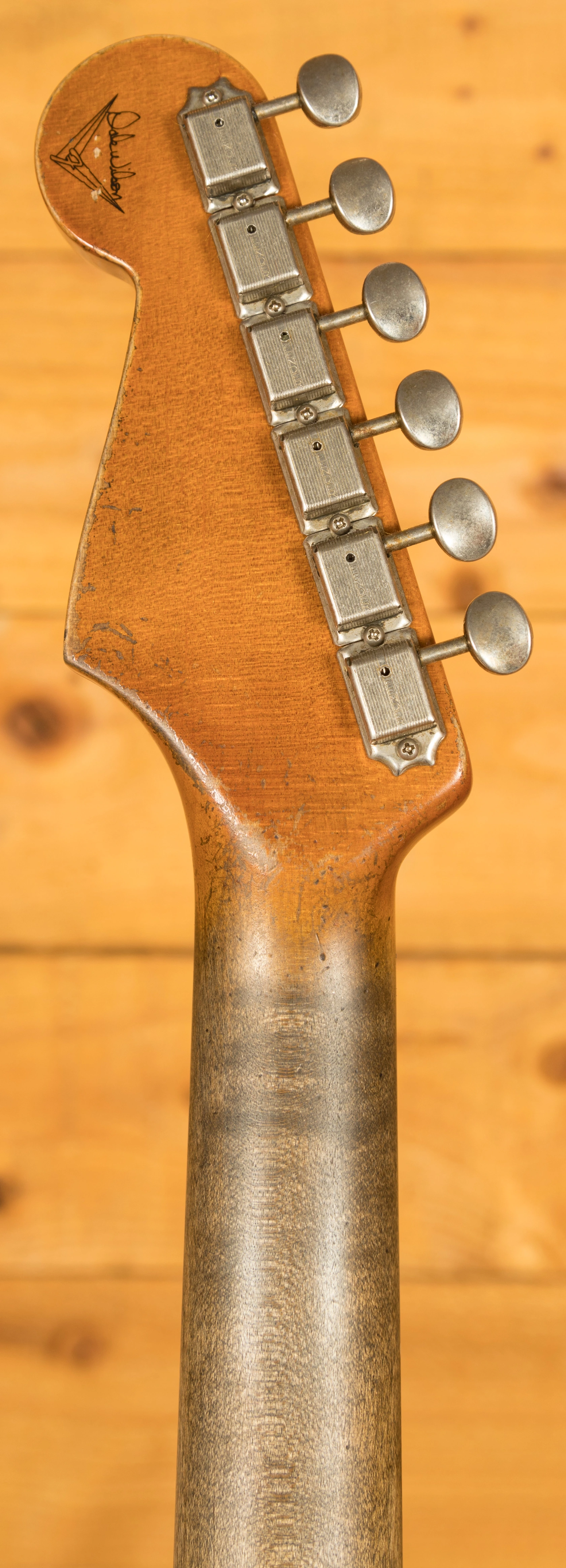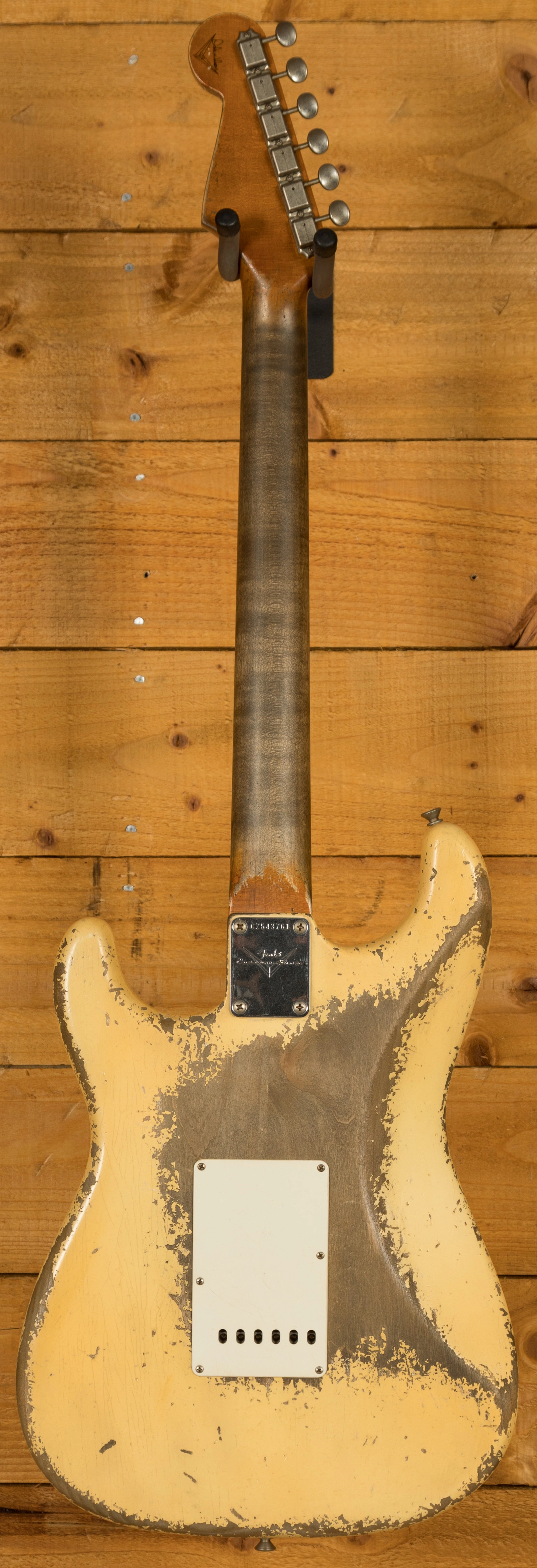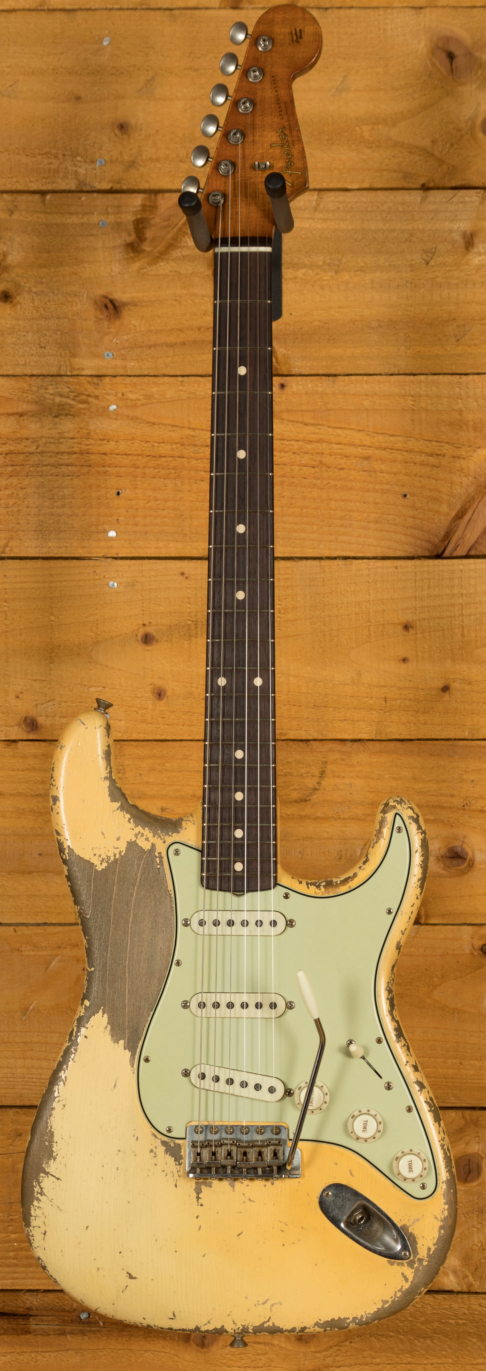 An Alder body is finished in the classic Vintage White, one of Fender's most popular finishes, it's a real beauty! Authentically aged, this finish will wear beautifully with time and develop its own character even further. The thin nitro finish also allows the natural resonance of the body to sing and sustain much more effectively. Dale is the King of relic work at the custom shop and this certainly doesn't disappoint though! The aged hardware on this guitar really complements the relic finish, it's a real looker.