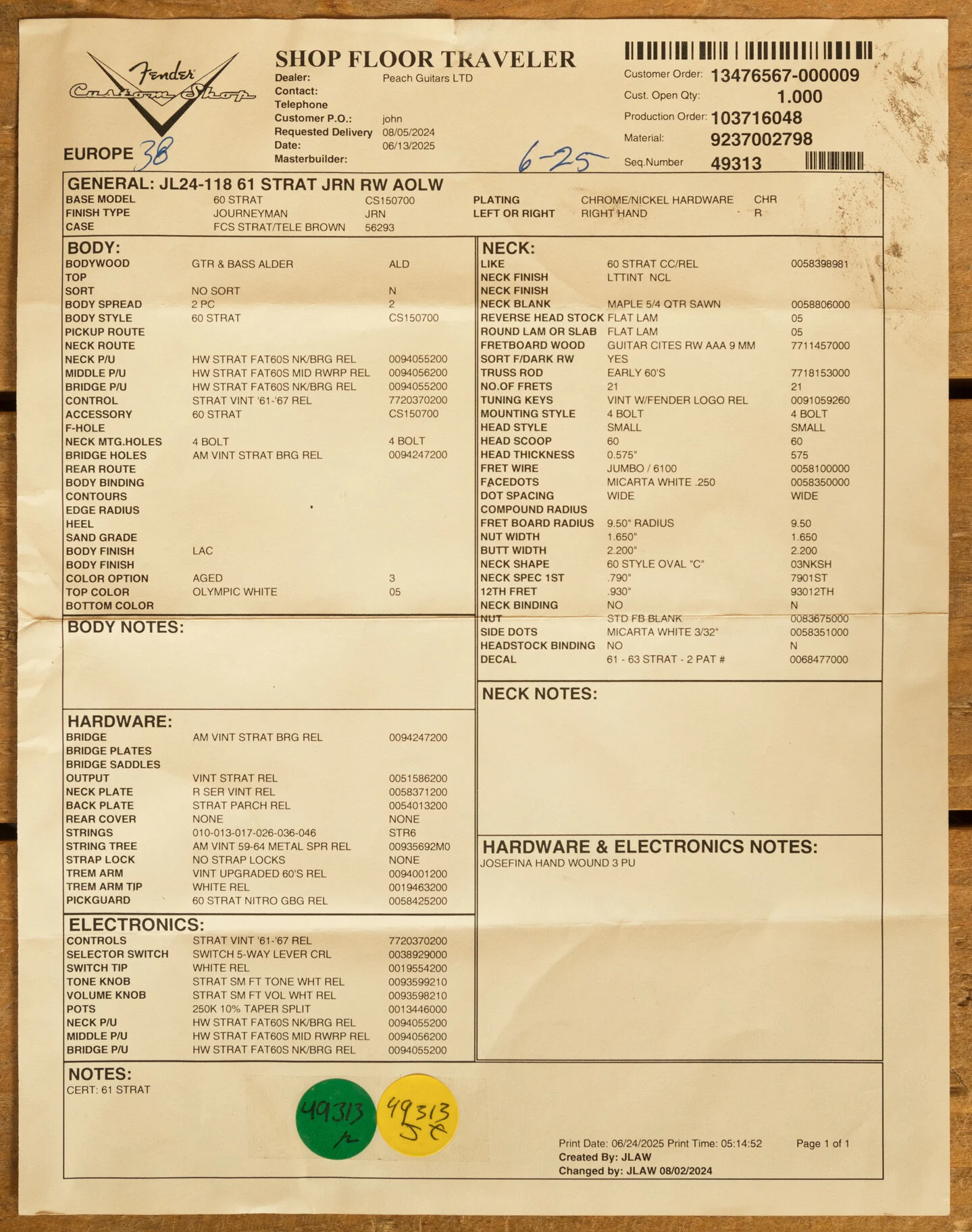 Josefina absorbed every detail of Ybarra's technique, eventually taking over her role and becoming the Custom Shop's lead pickup winder. Her pickups are revered for their vintage-correct voicing, and touch-sensitive articulation, and they carry a legacy that stretches back to the very origins of Fender. Each coil is wound by hand, with care and precision that reflects decades of tradition and a deep personal connection to the craft.
