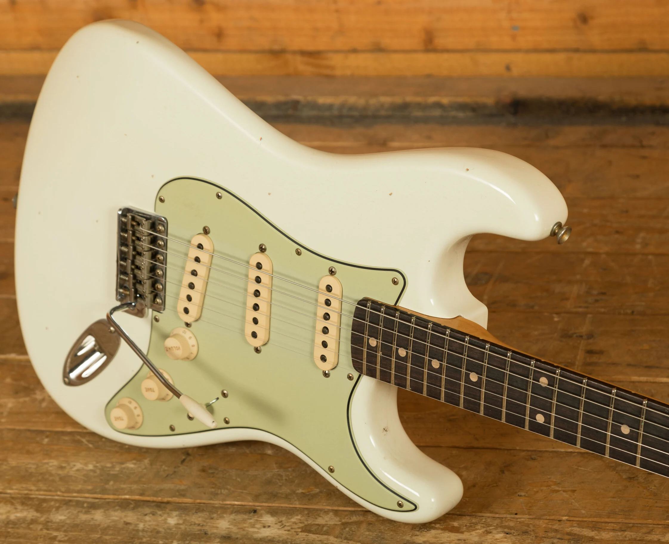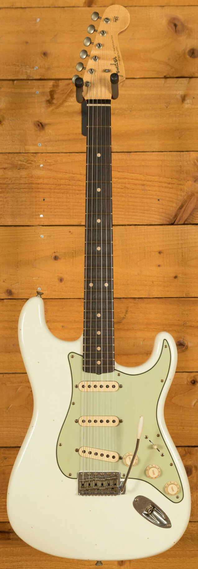 This Fender Custom Shop '61 Stratocaster Journeyman Relic in Aged Olympic White is a masterfully crafted tribute to the golden era of Strat design, blending vintage aesthetics with Custom Shop precision. Built with a 2-piece alder body, finished in thin nitrocellulose lacquer, and aged with Fender's Journeyman Relic treatment, it offers the look and feel of a well-loved vintage instrument but without the fragility.
