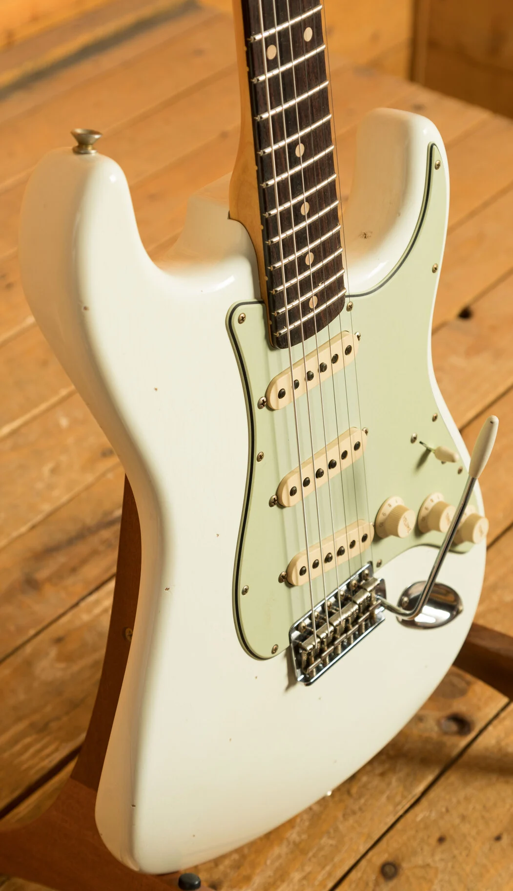 The quarter-sawn maple neck is carved to a comfortable '60s-style oval "C" profile, paired with a AAA rosewood fretboard specially sorted for darkness and visual depth. A 9.5" radius and 6100 jumbo frets provide modern playability with vintage flair, making bends and faster runs effortless across the board.