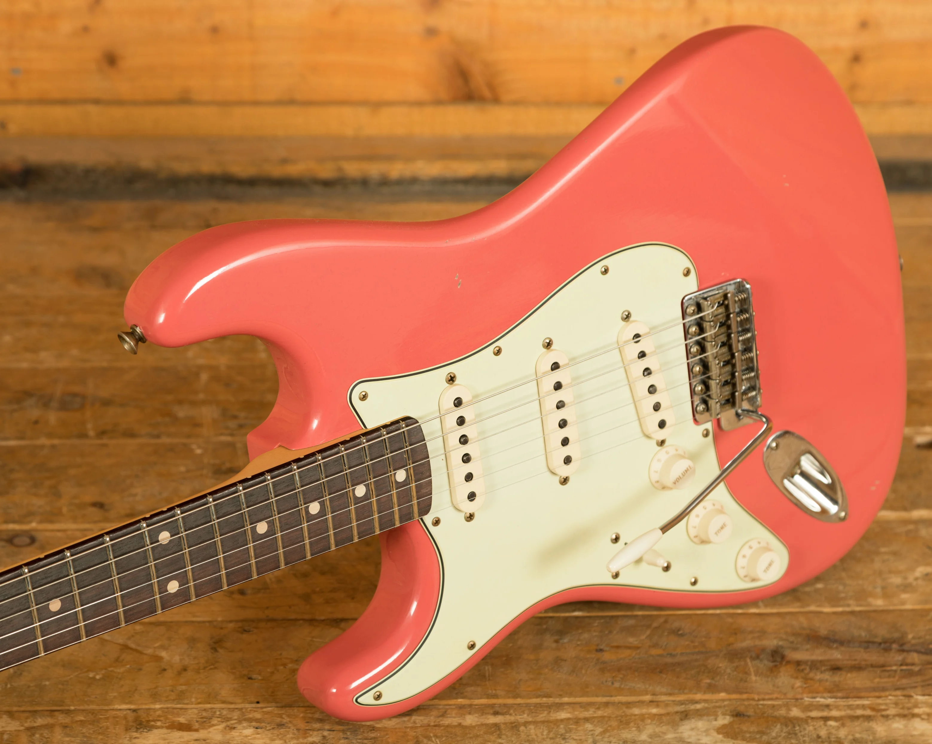 The 5/4 quartersawn Maple neck has a smooth finish and a AAA-grade sort for dark Rosewood fingerboard. With a 9.5" radius and 21 6100 jumbo frets, the '61 Custom Shop Stratocaster also features a '60 Style Oval "C" neck shape that measures .790" at the 1st fret and .930" at the 12th. It's supremely comfortable and well balanced.