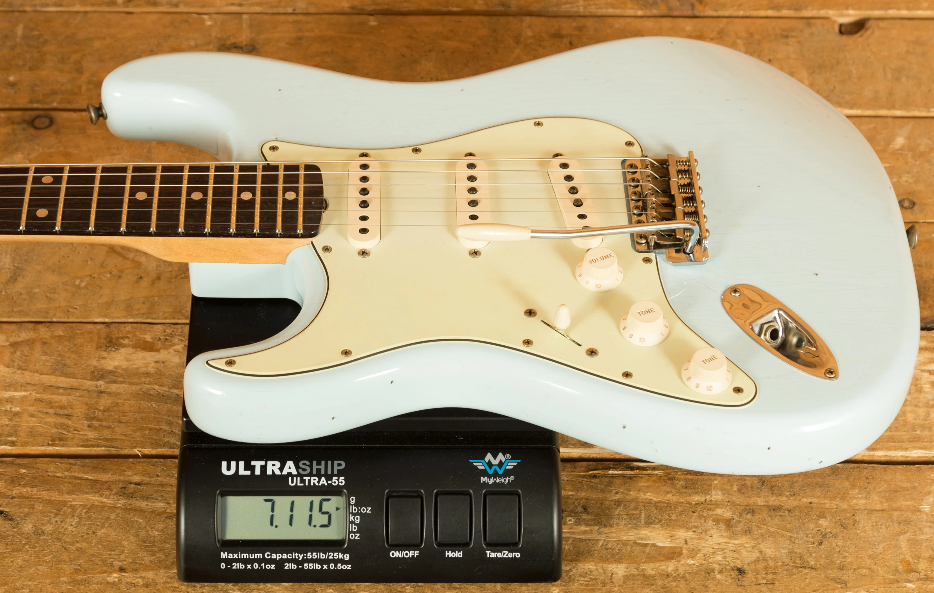 The Alder body is finished in a classic Sonic Blue nitro lacquer. Period correct and authentically aged, this finish will wear beautifully with time and develop its own character even further. It also allows the natural resonance of the body to sing and sustain much more effectively compared with other more modern finishes.