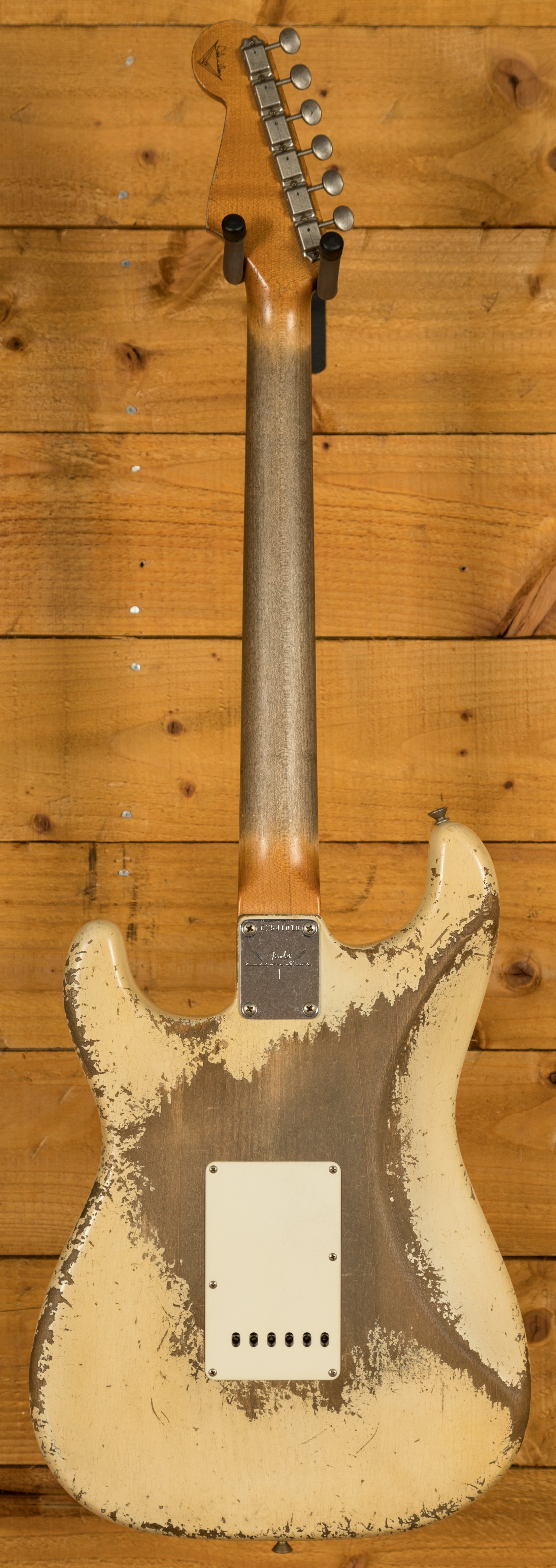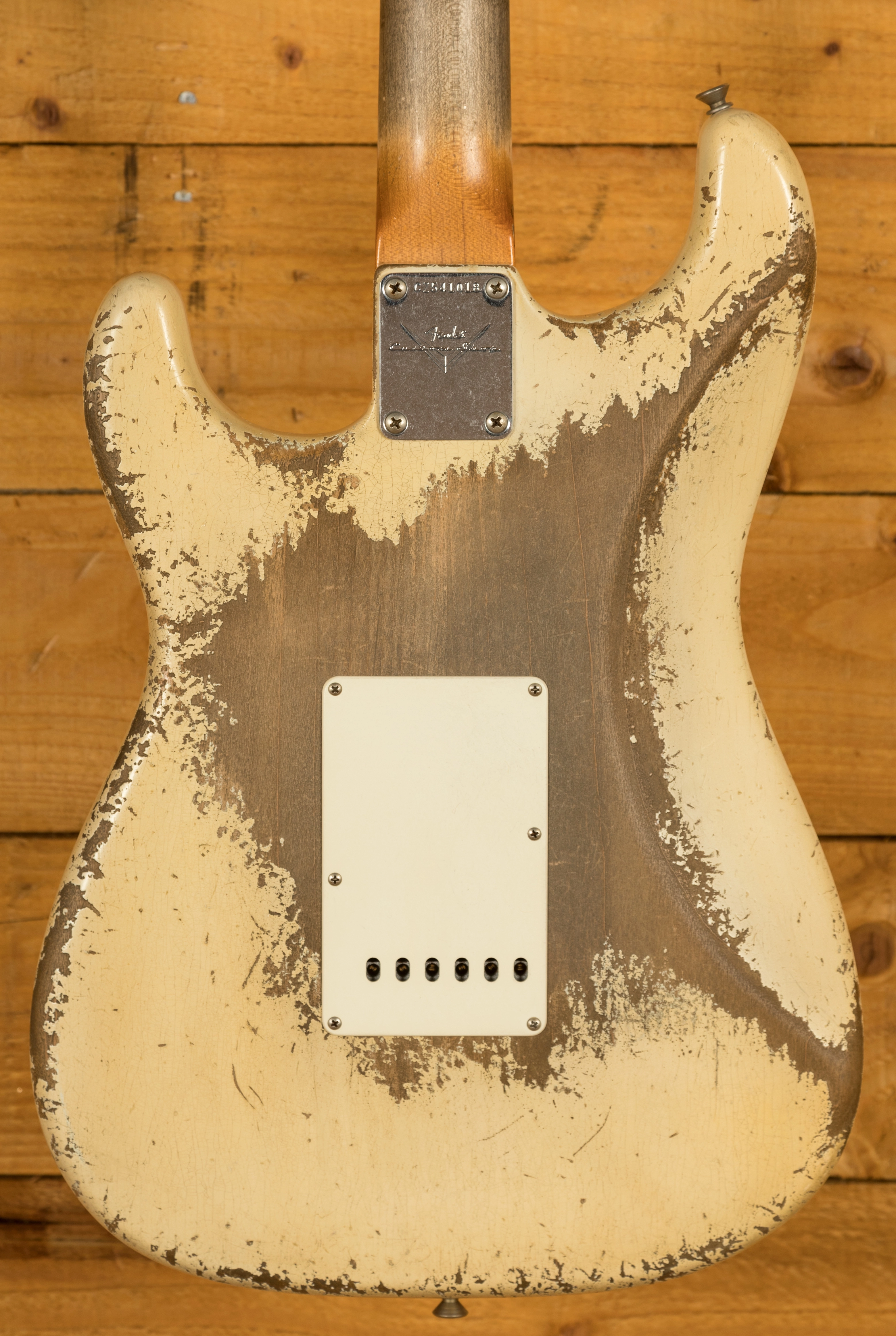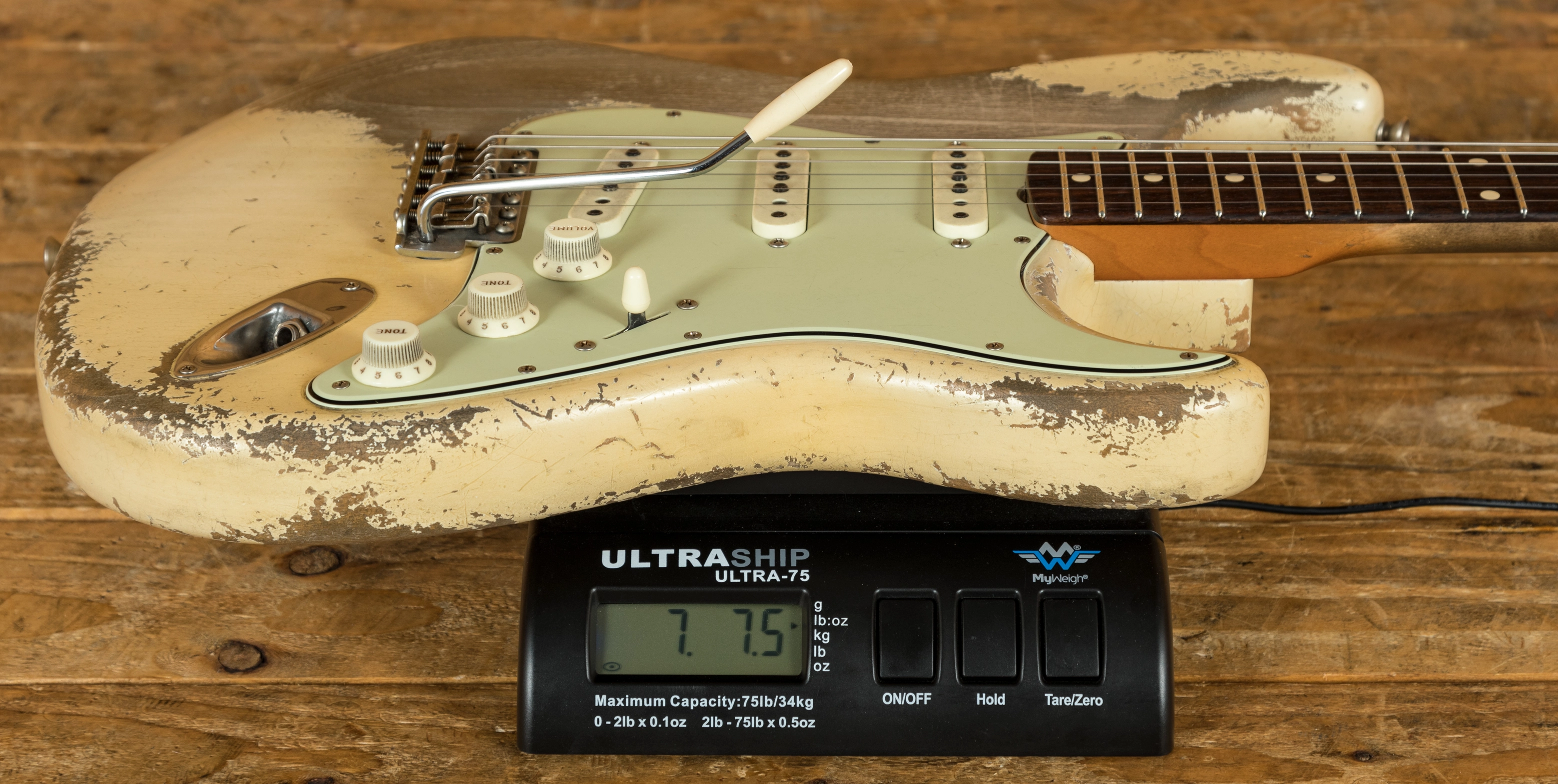 An Alder body is finished in the classic Ultra Relic Aged Olympic White, one of Fender's most popular finishes, it's a real beauty! Authentically aged, this finish will wear beautifully with time and develop its own character even further. The thin nitro finish also allows the natural resonance of the body to sing and sustain much more effectively. Dale is the King of relic work at the custom shop and this certainly doesn't disappoint though!