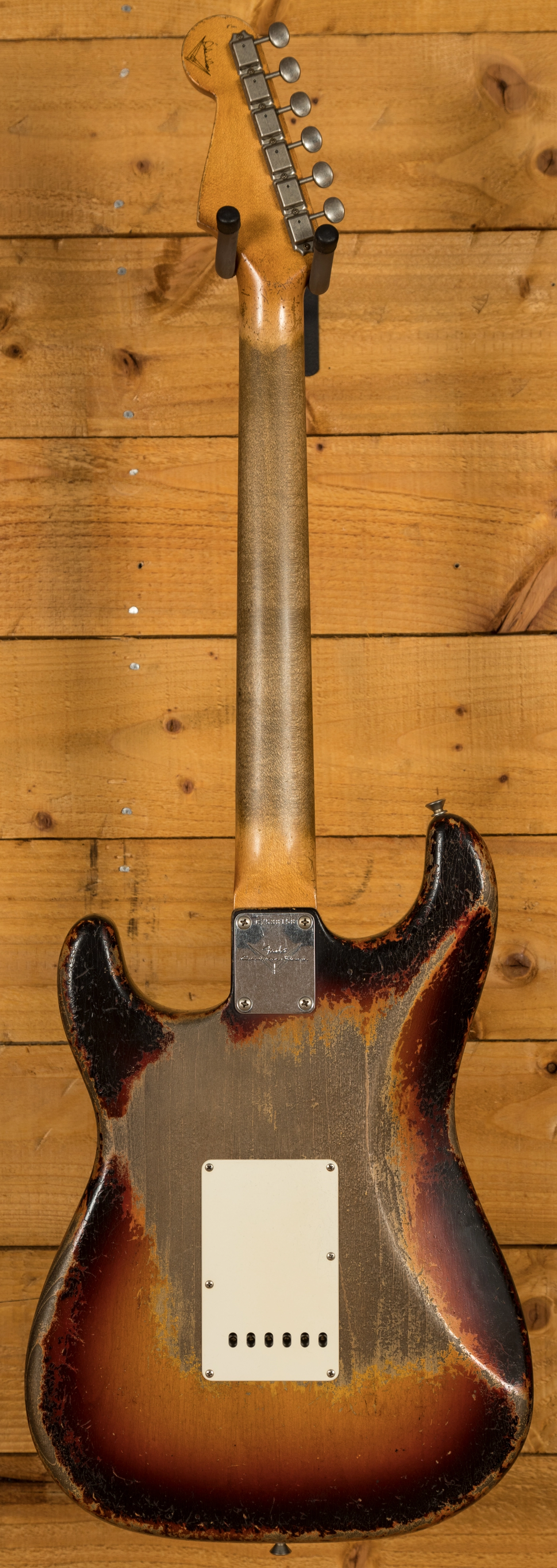 A traditional Alder body is finished in Ultra Heavy Relic 3-Tone Sunburst with a Mint Green pickguard, one of Fender's most popular combinations, it's a real beauty! Authentically aged, this finish will wear beautifully with time and develop its own character even further. The thin nitro finish also allows the natural resonance of the body to sing and sustain much more effectively. Dale is the King of relic work at the custom shop and this certainly doesn't disappoint though!