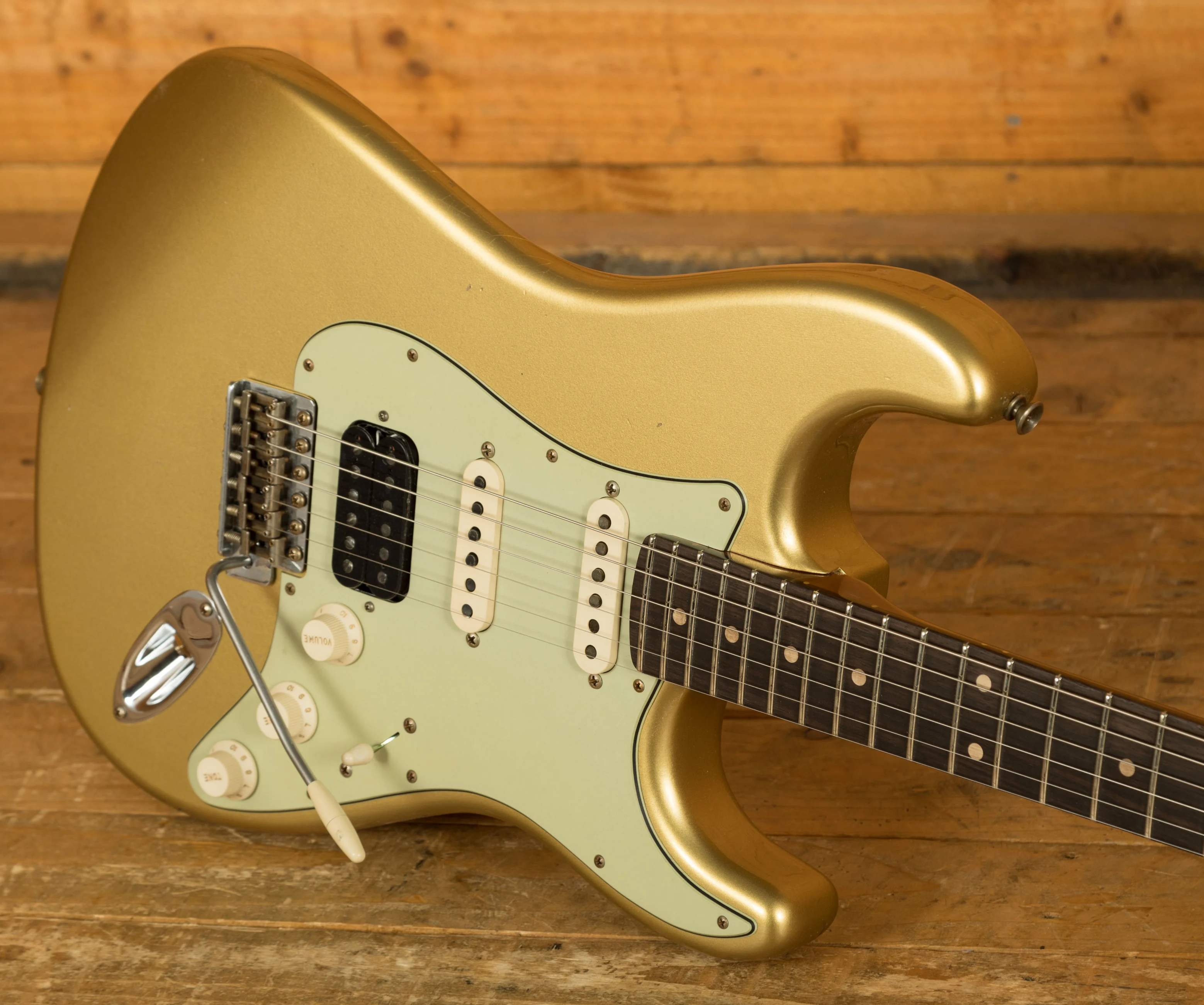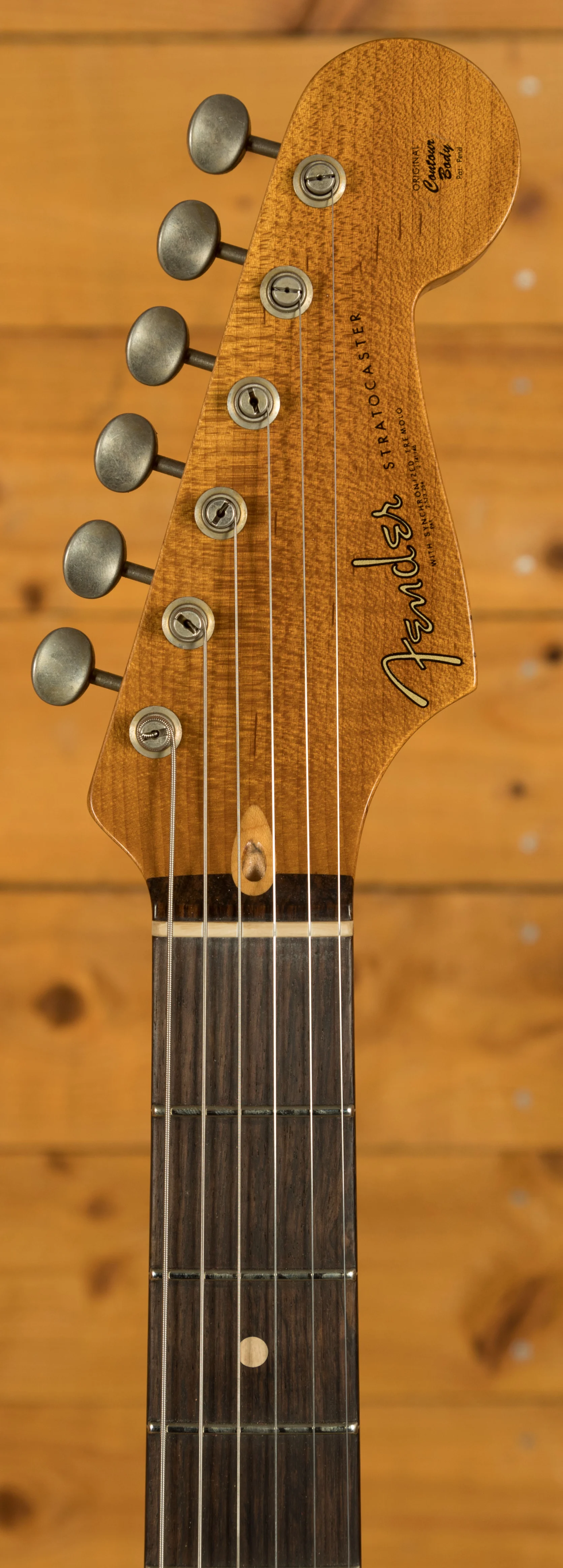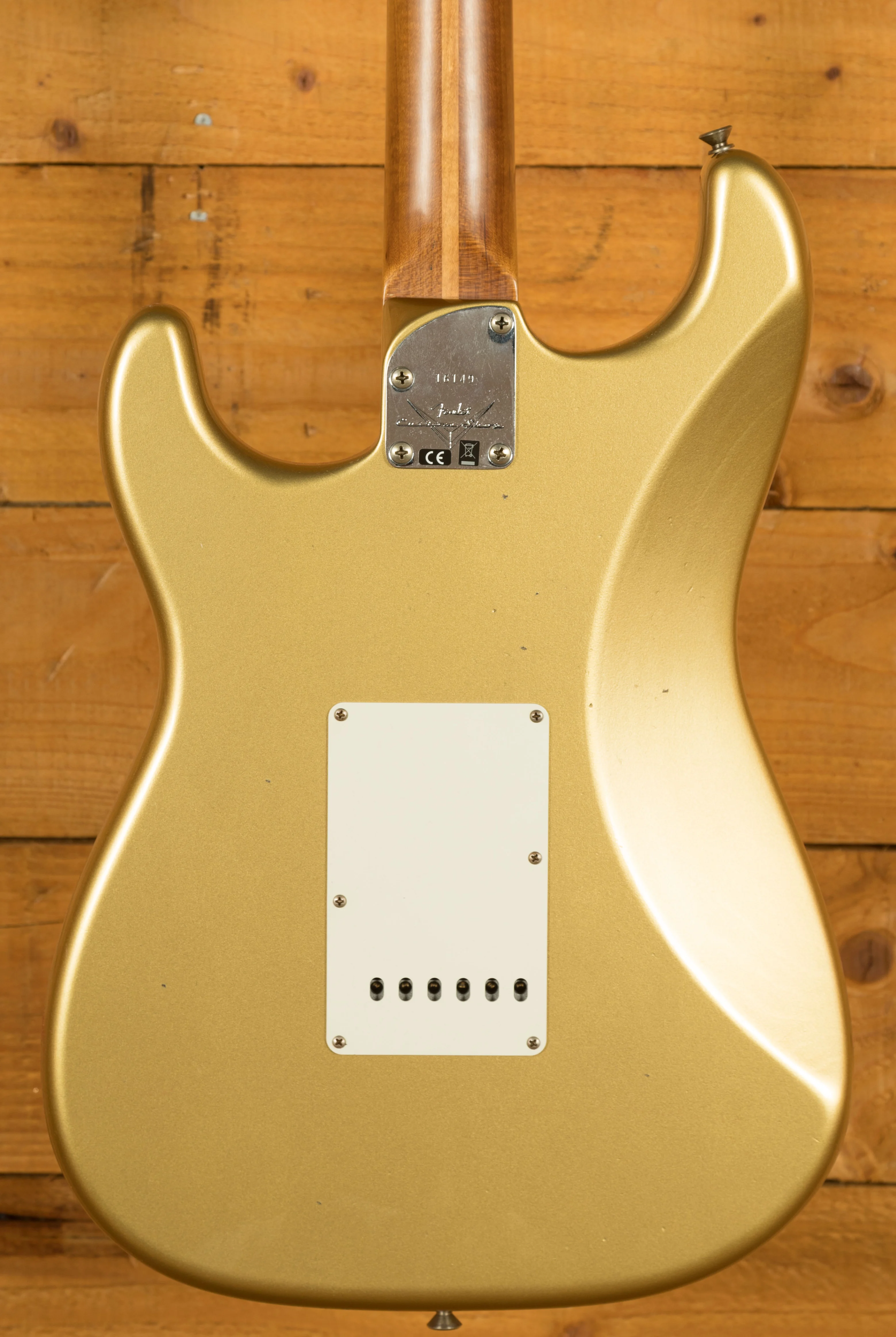 The Alder body is finished in a classic Aztec Gold nitro lacquer, period correct, this finish will wear beautifully with time and develop its own character even further. It also allows the natural resonance of the body to sing and sustain much more effectively compared with other finishes. The Journeyman finish is unbelievable; the attention to detail here is meticulous and super authentic.