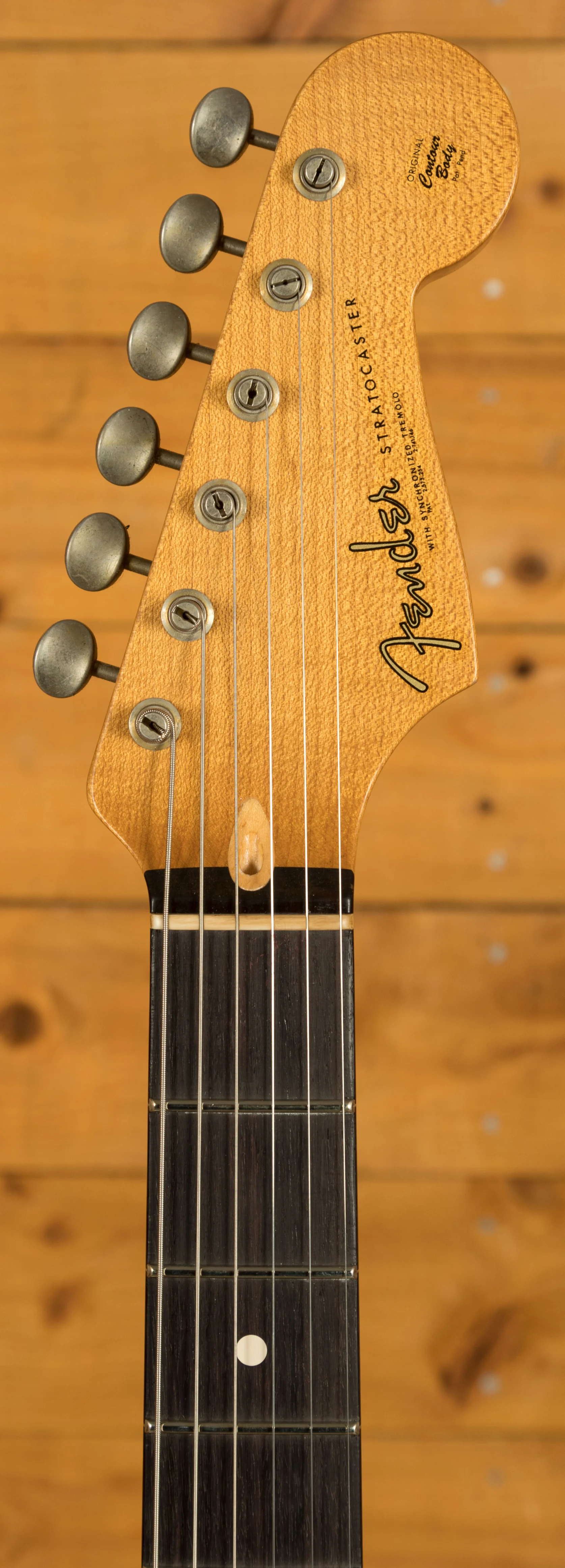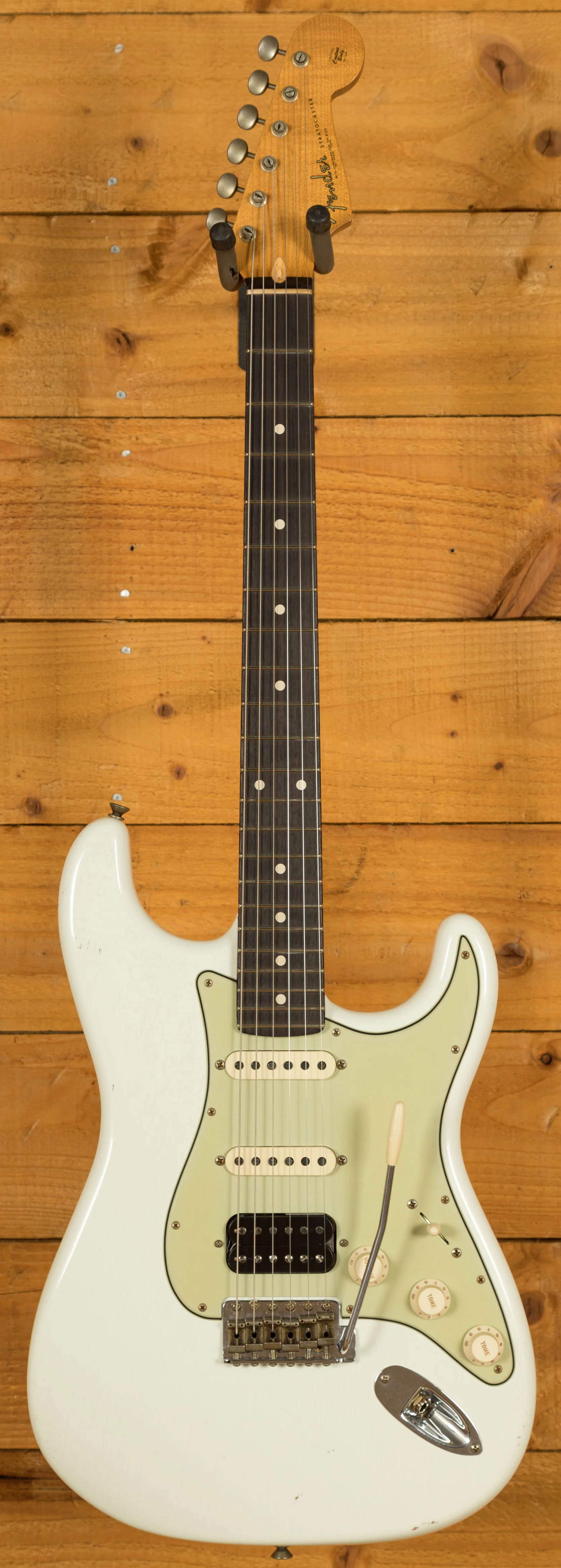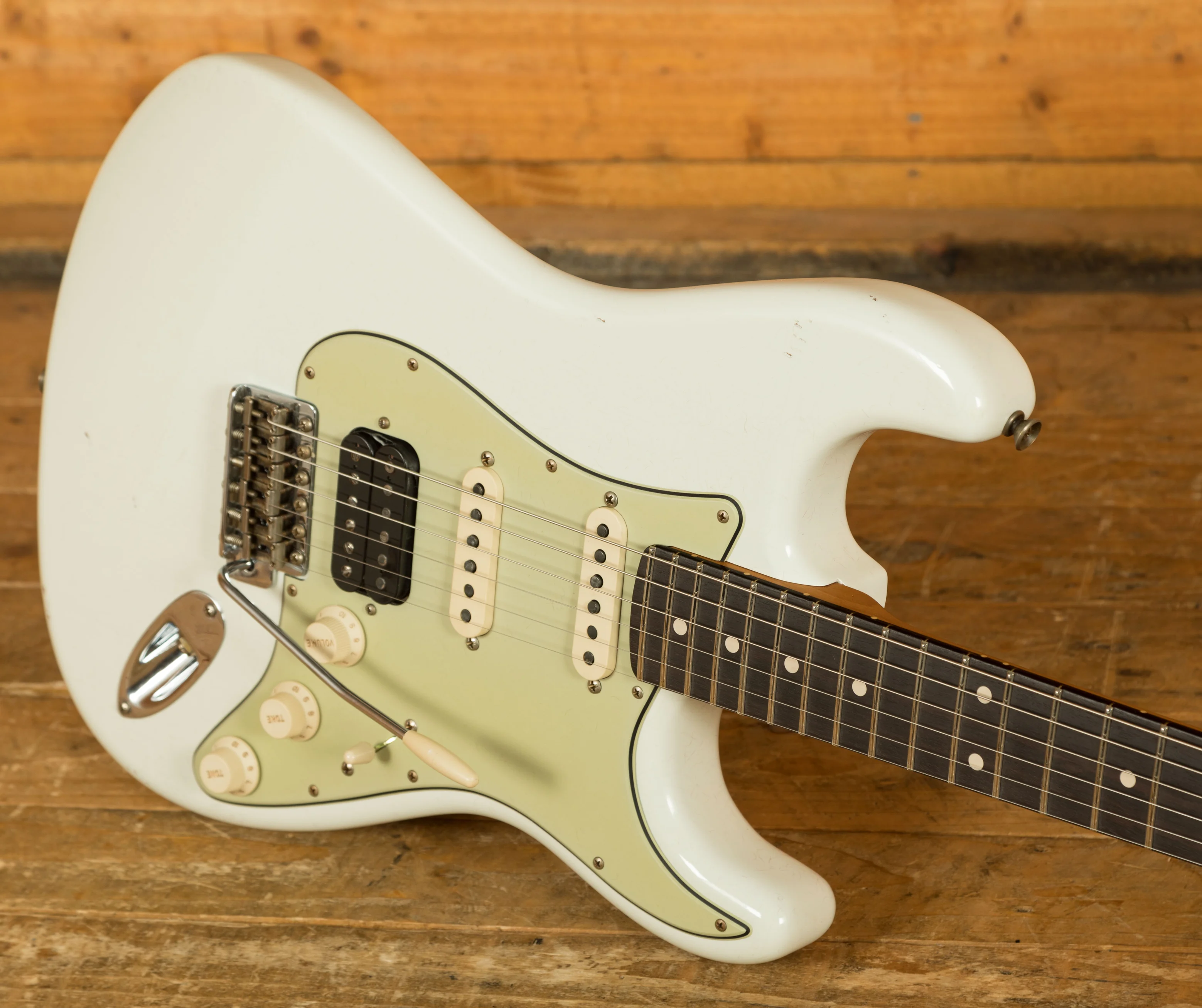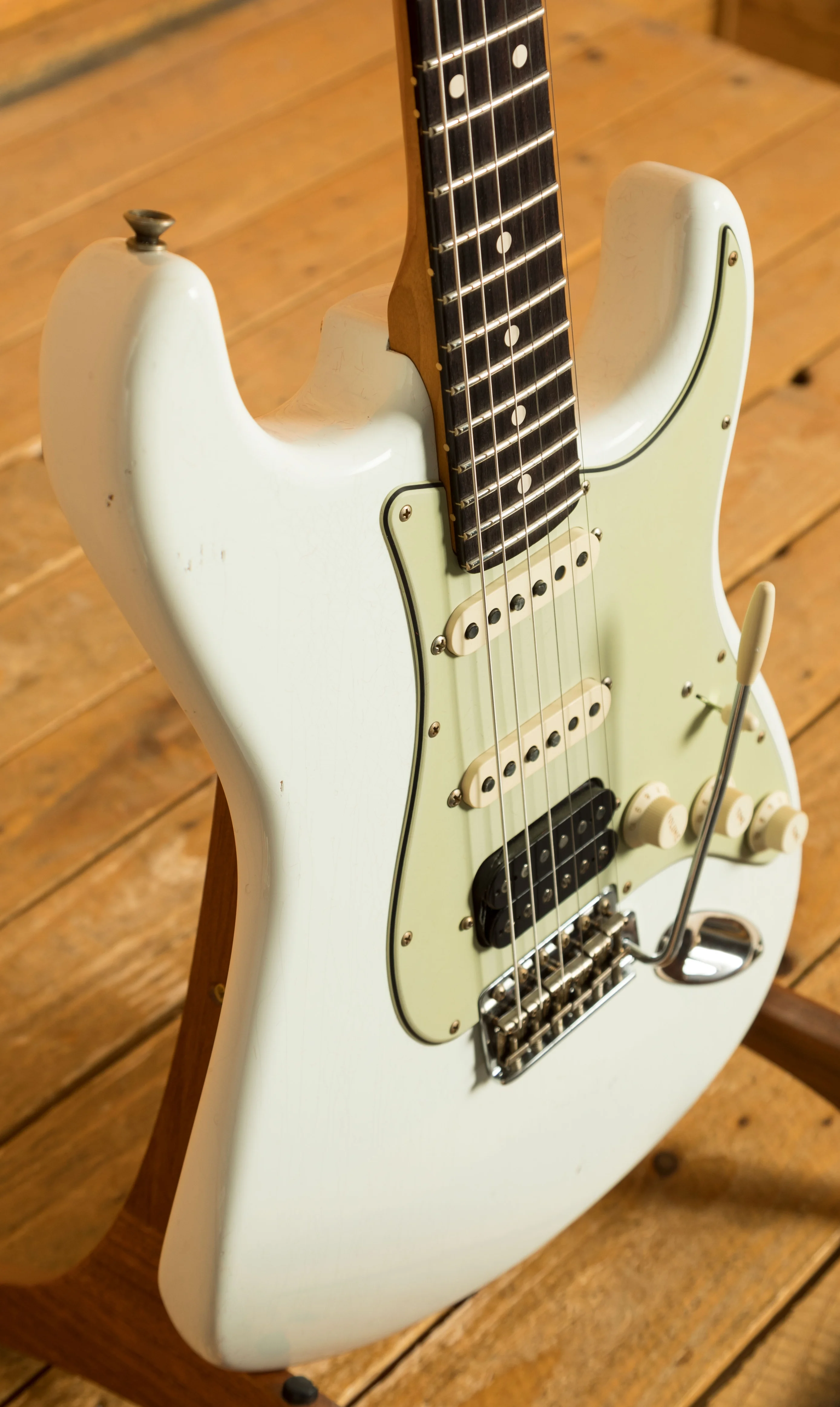 The Alder body is finished in a classic Olympic White nitro lacquer, period correct, this finish will wear beautifully with time and develop its own character even further. It also allows the natural resonance of the body to sing and sustain much more effectively compared with other finishes. The Journeyman finish is unbelievable; the attention to detail here is meticulous and super authentic.