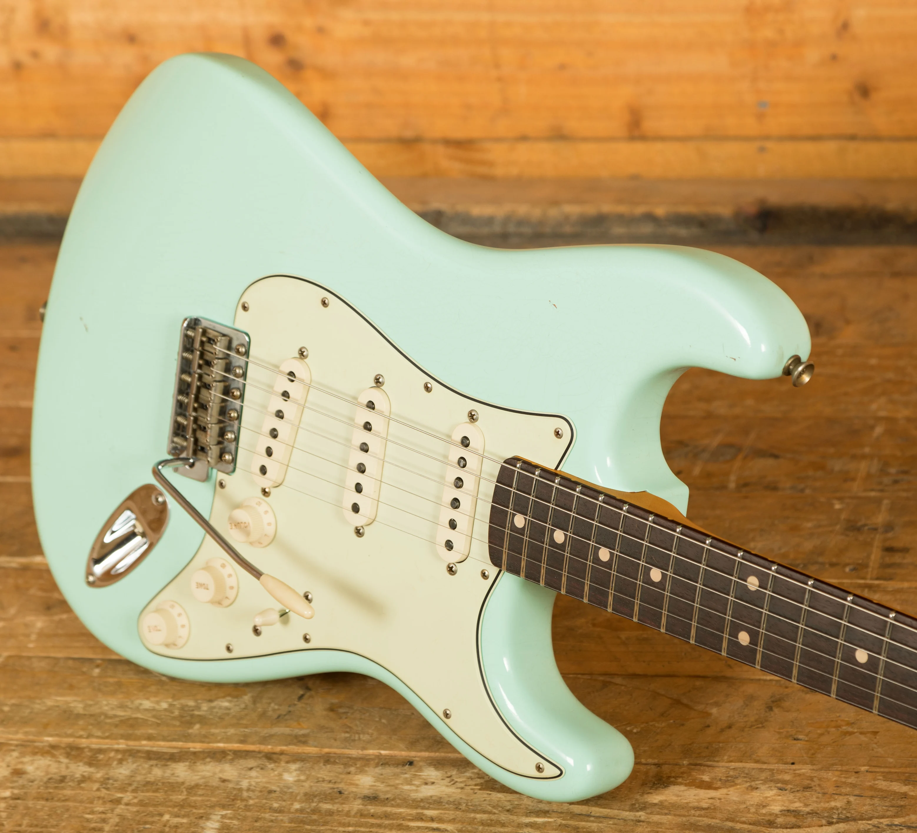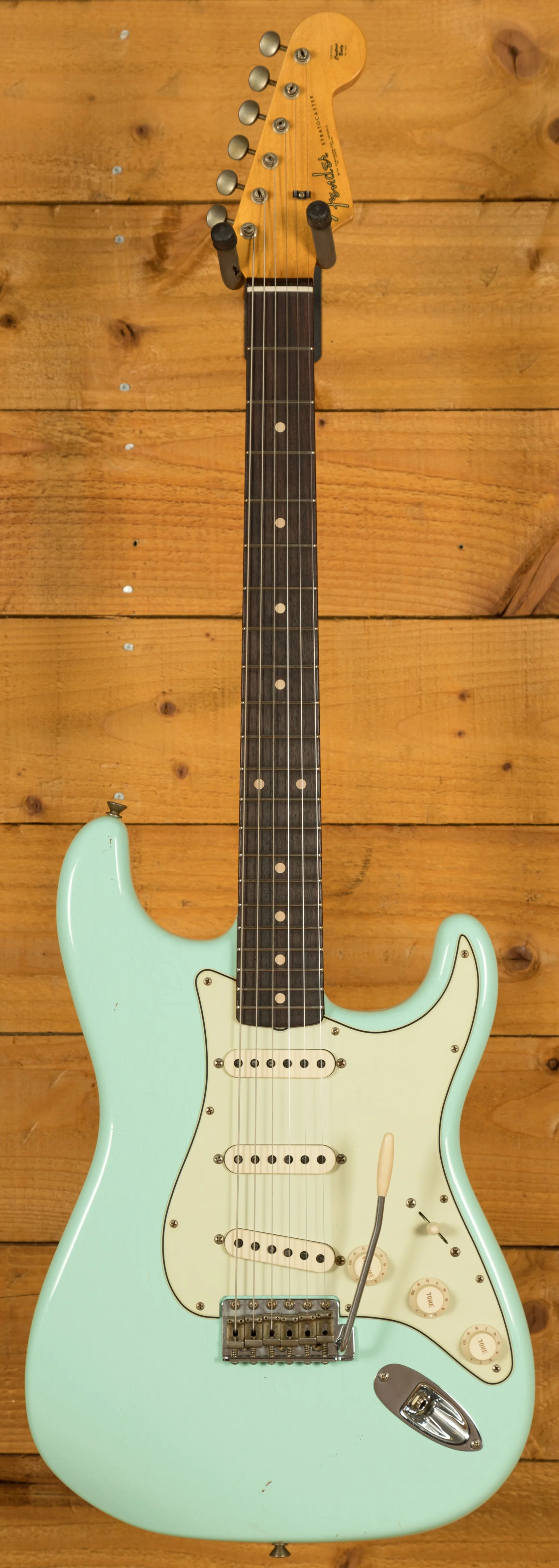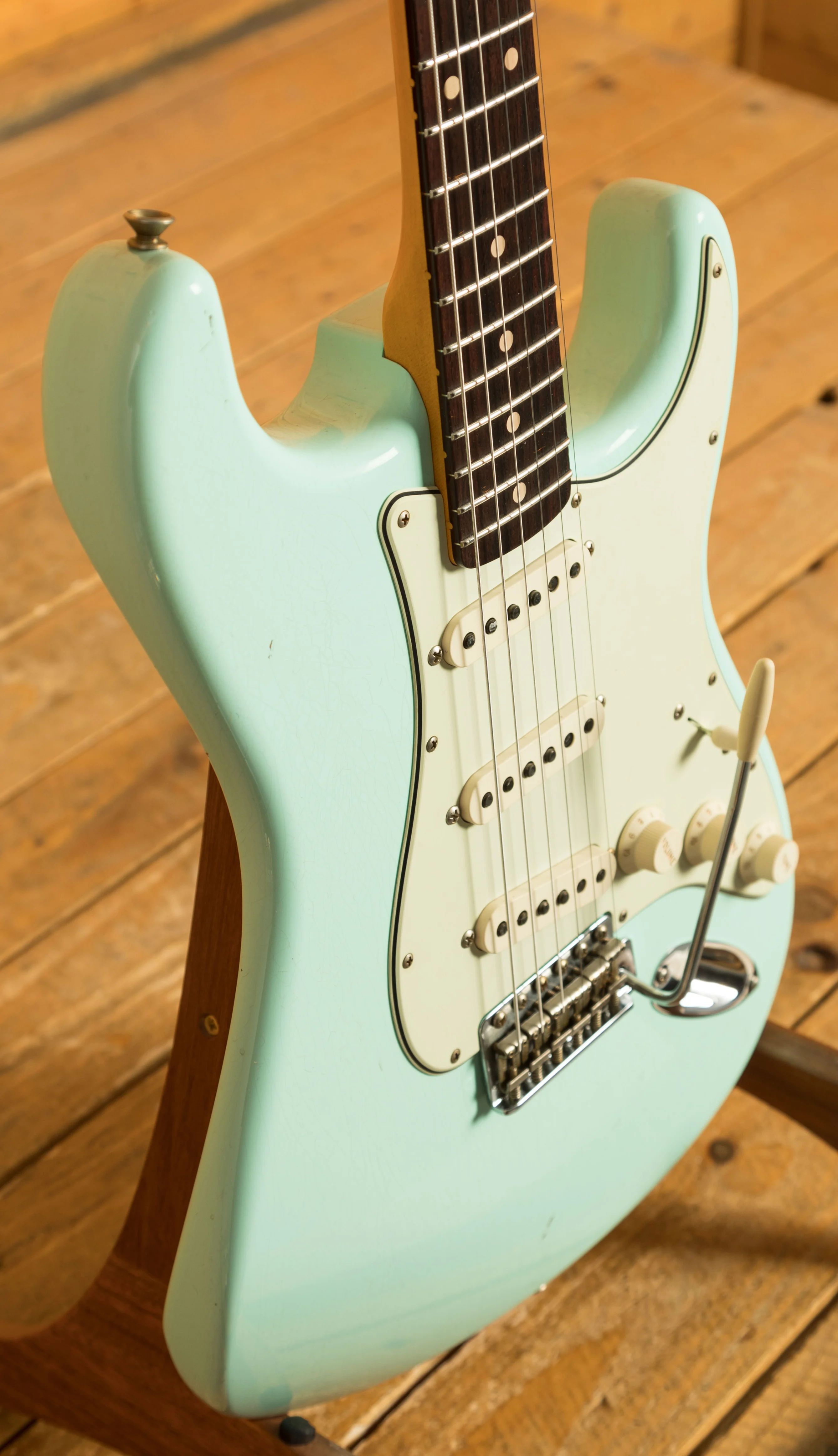 The Alder body is finished in a classic Sonic Blue nitro lacquer, period correct, this finish will wear beautifully with time and develop its own character even further. It also allows the natural resonance of the body to sing and sustain much more effectively compared with other finishes. The Journeyman finish is unbelievable; the attention to detail here is meticulous and super authentic.
