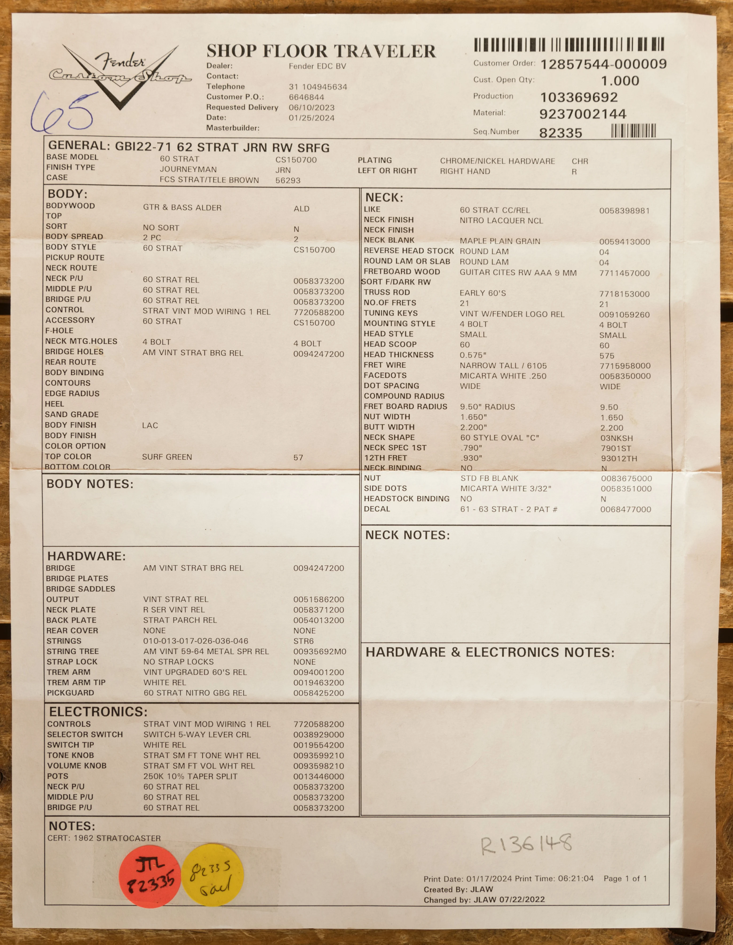 It also features a '60 Style Oval "C" neck shape which measures .790" at the 1st fret and .930" at the 12th fret. It's supremely comfortable and well balanced.